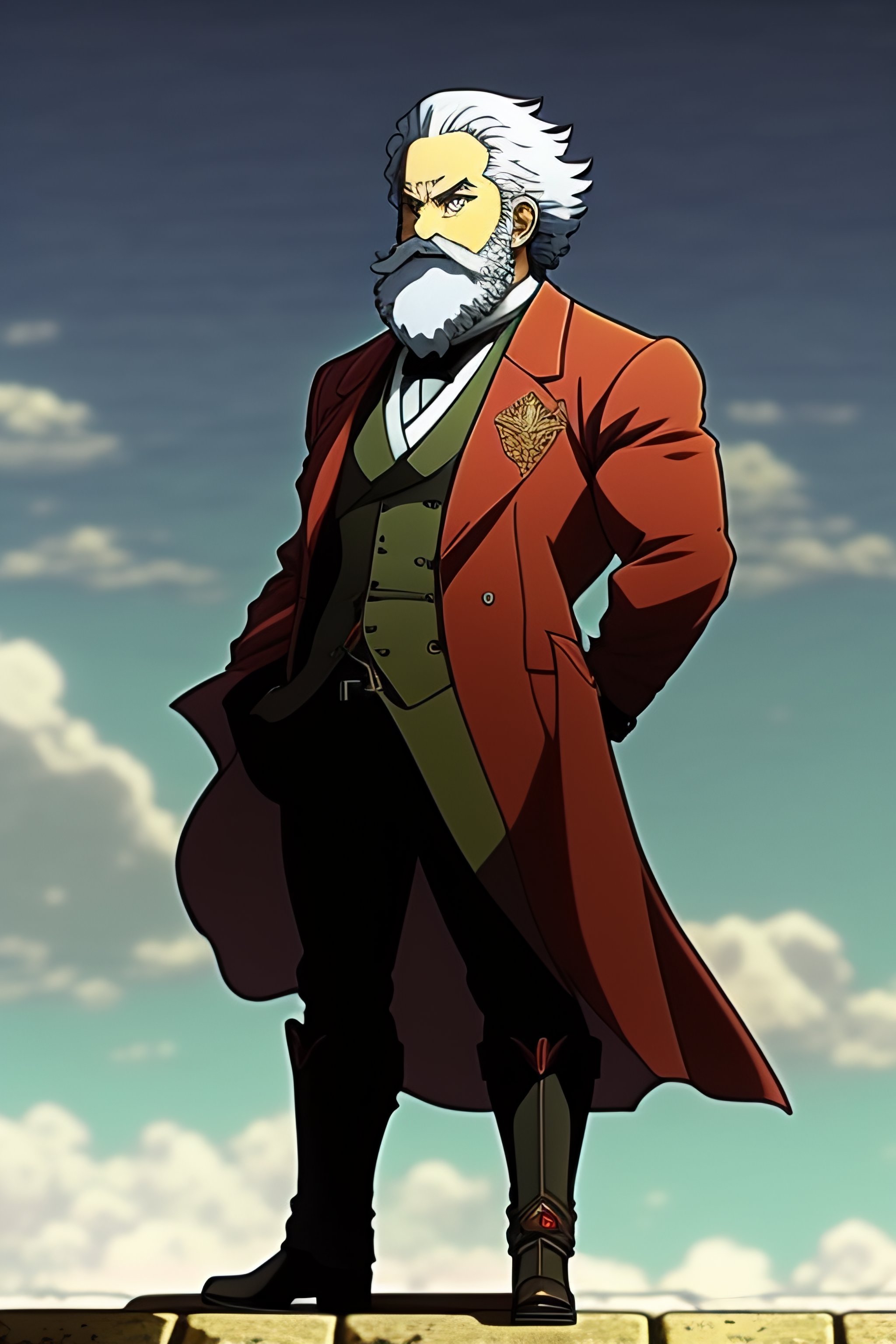 Karl marx as a titan from attack on titan anime, full body view in the style of attack on titan anime