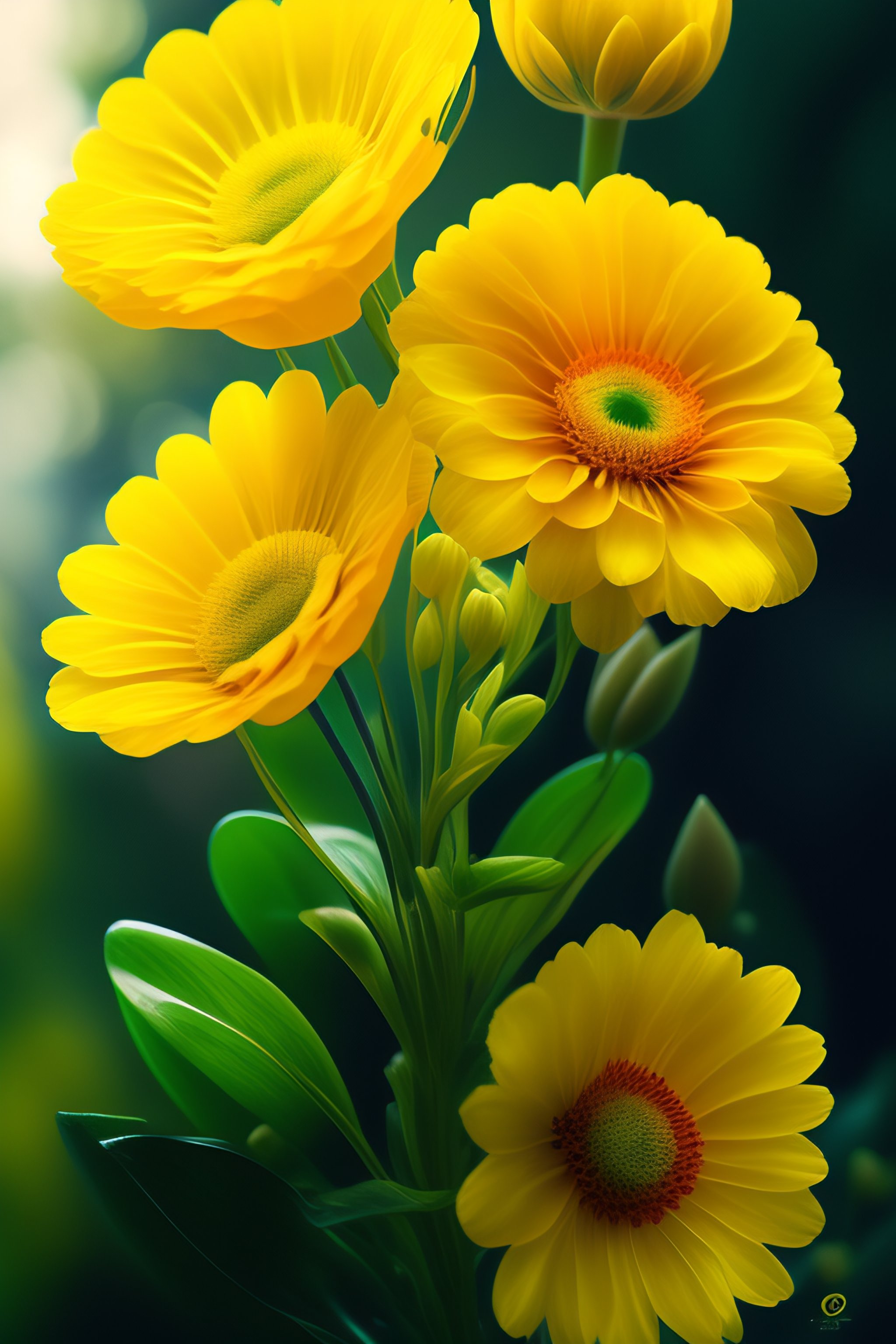 Cellophane flowers of yellow and green towering over your head