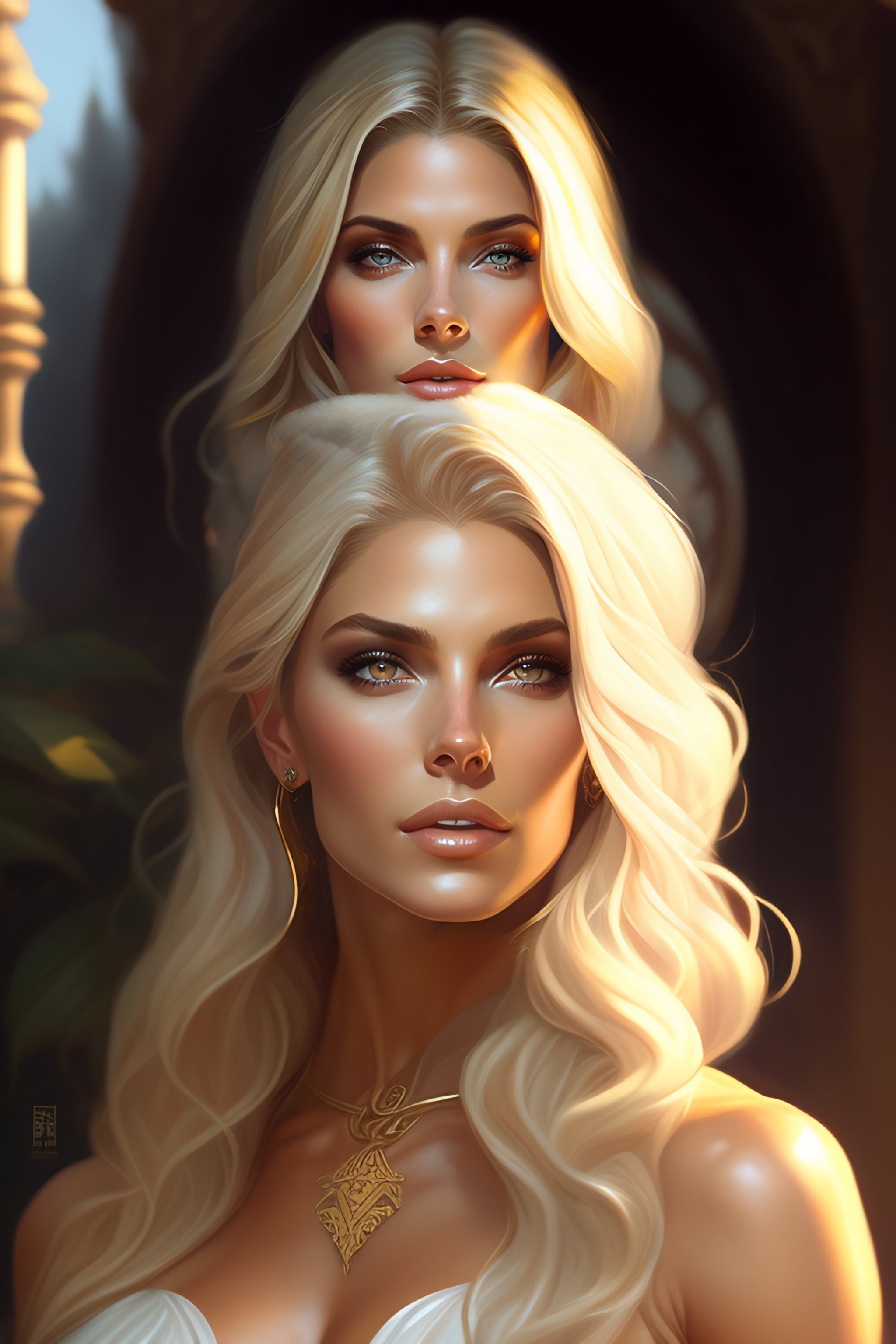 Thin muscular ashley greene's as elf queen blonde hair, western, d&d, fantasy, intricate, elegant, highly detailed, digital painting, artstation, concept art, matte, sharp focus, illustration, art by artgerm and greg rutkowski and alphonse mucha
