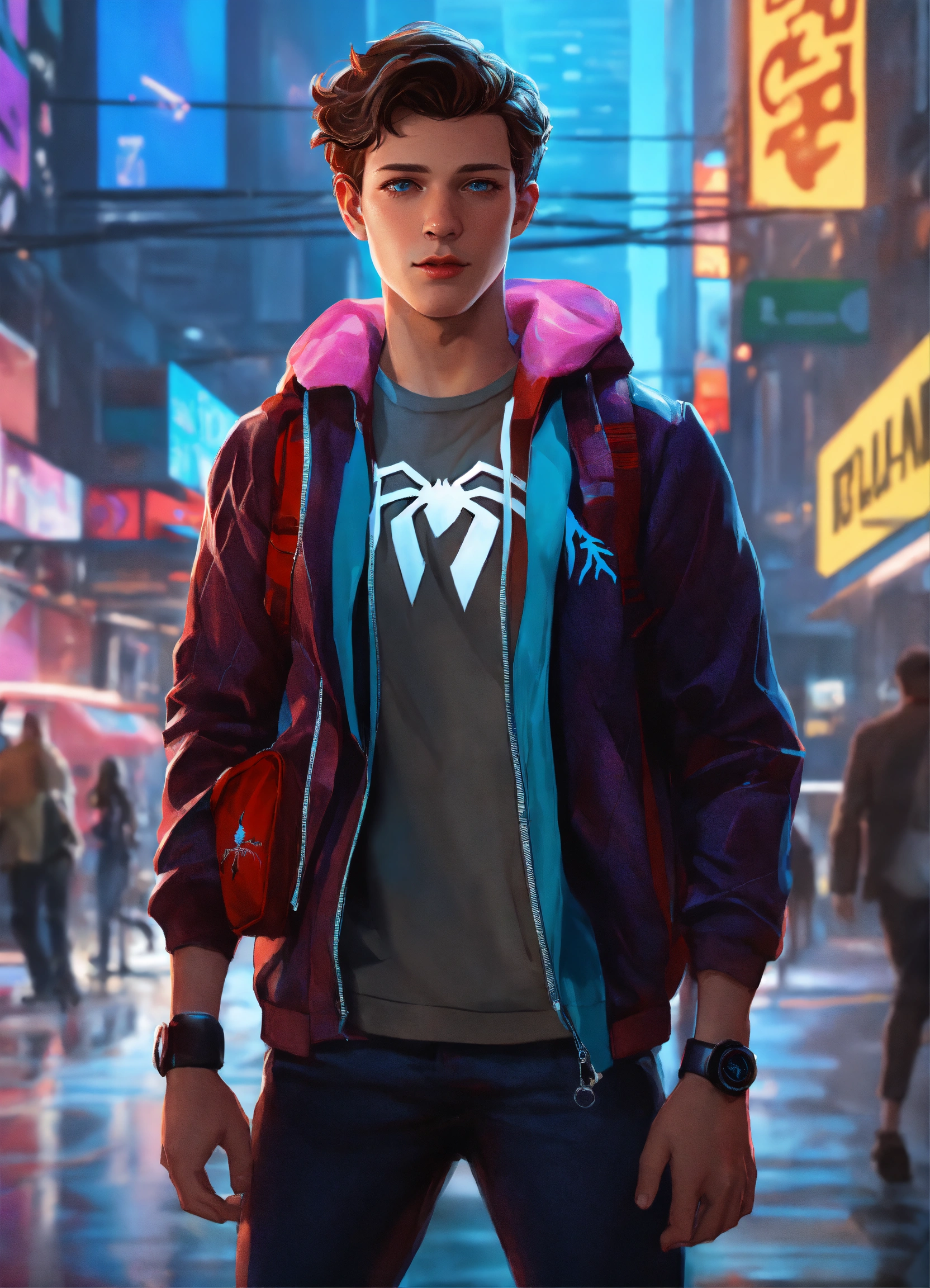 Full body portrait, {{{movie}}} {{{spider-man across the spider-verse}}} {{{the year 2023}}}, tom holland {{{male}}} cosplaying the cast role of character spider-gwen, 8k resolution concept art by greg rutkowski, hyperdetailed, intricately detailed, unreal engine, hyperrealism, depth of field, photorealism, digital art, photorealistic