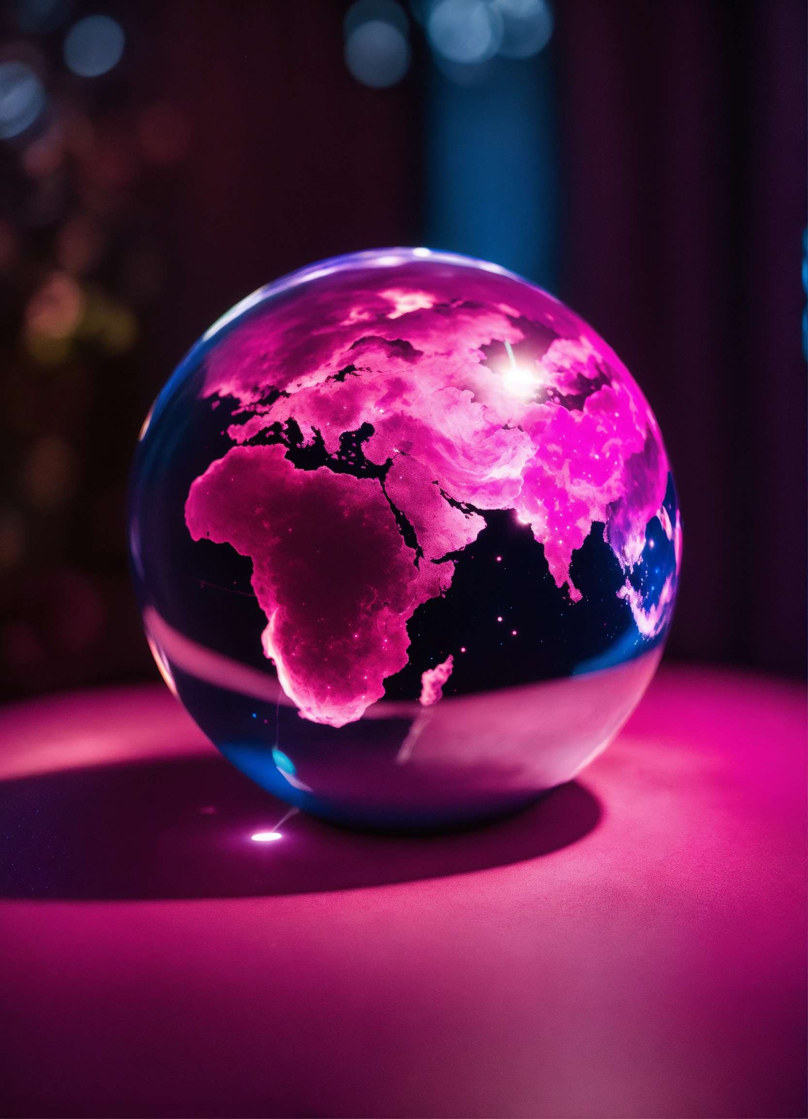 Sphère de lumière étoile planète rose magenta univers dans l'espace translucide