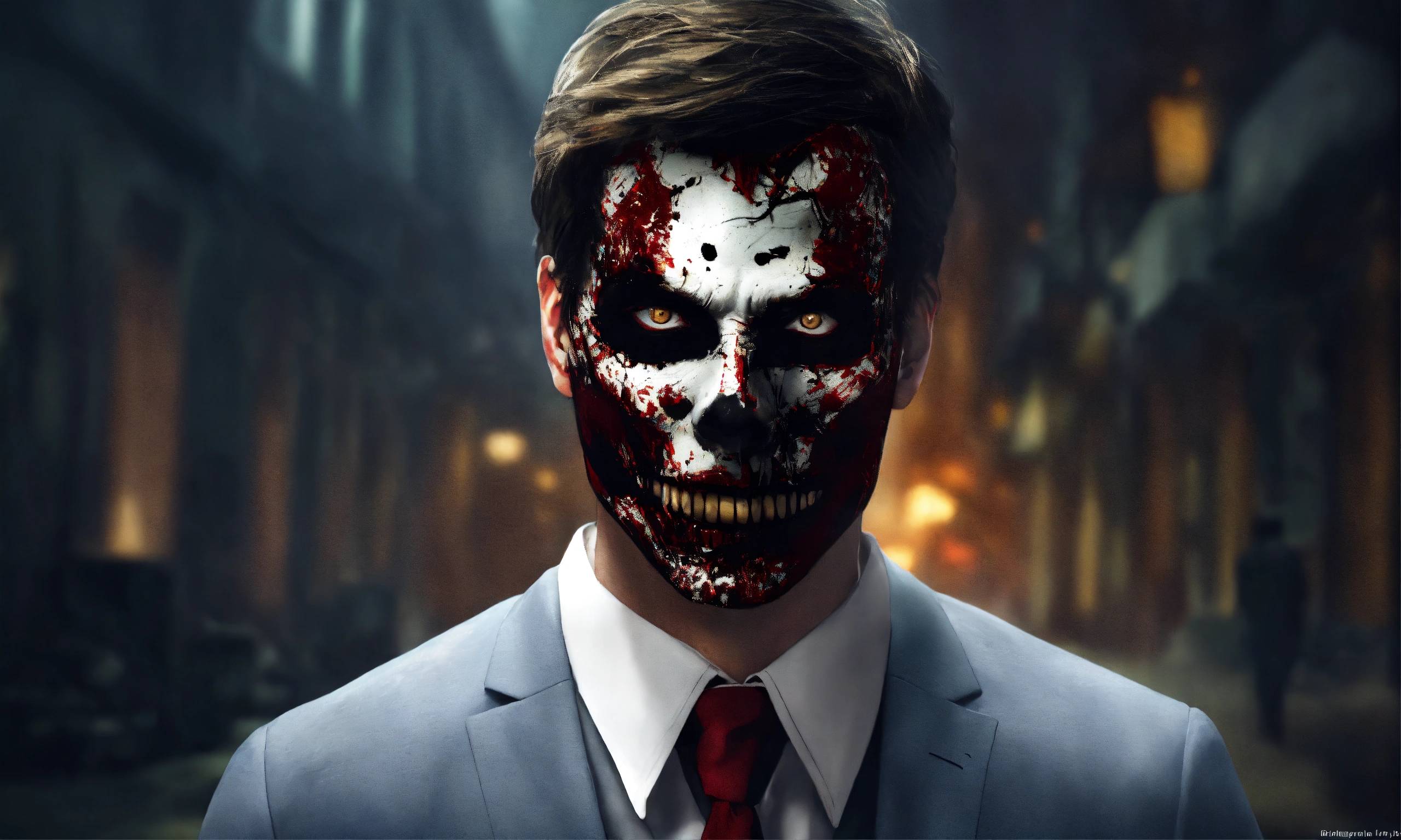 Create a realistic picture of a psychopath with a scary face