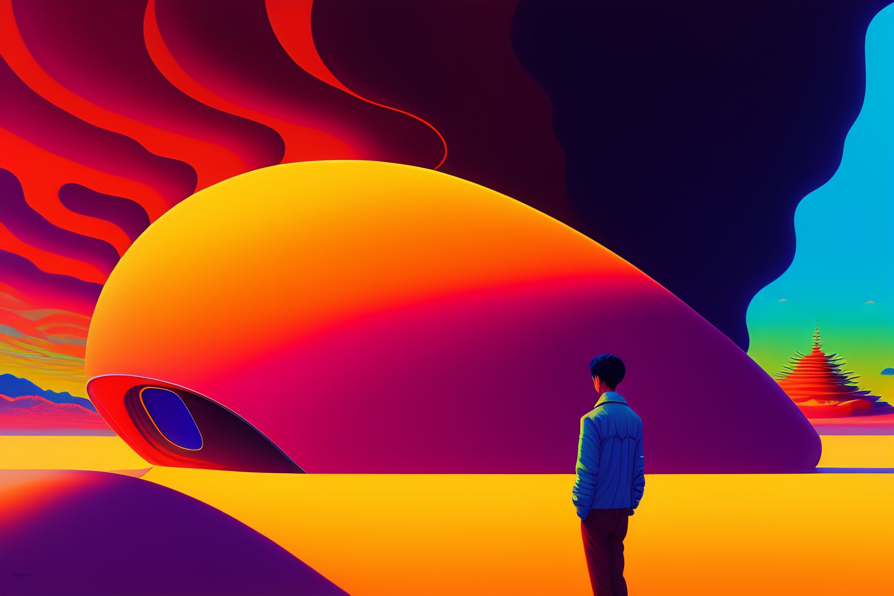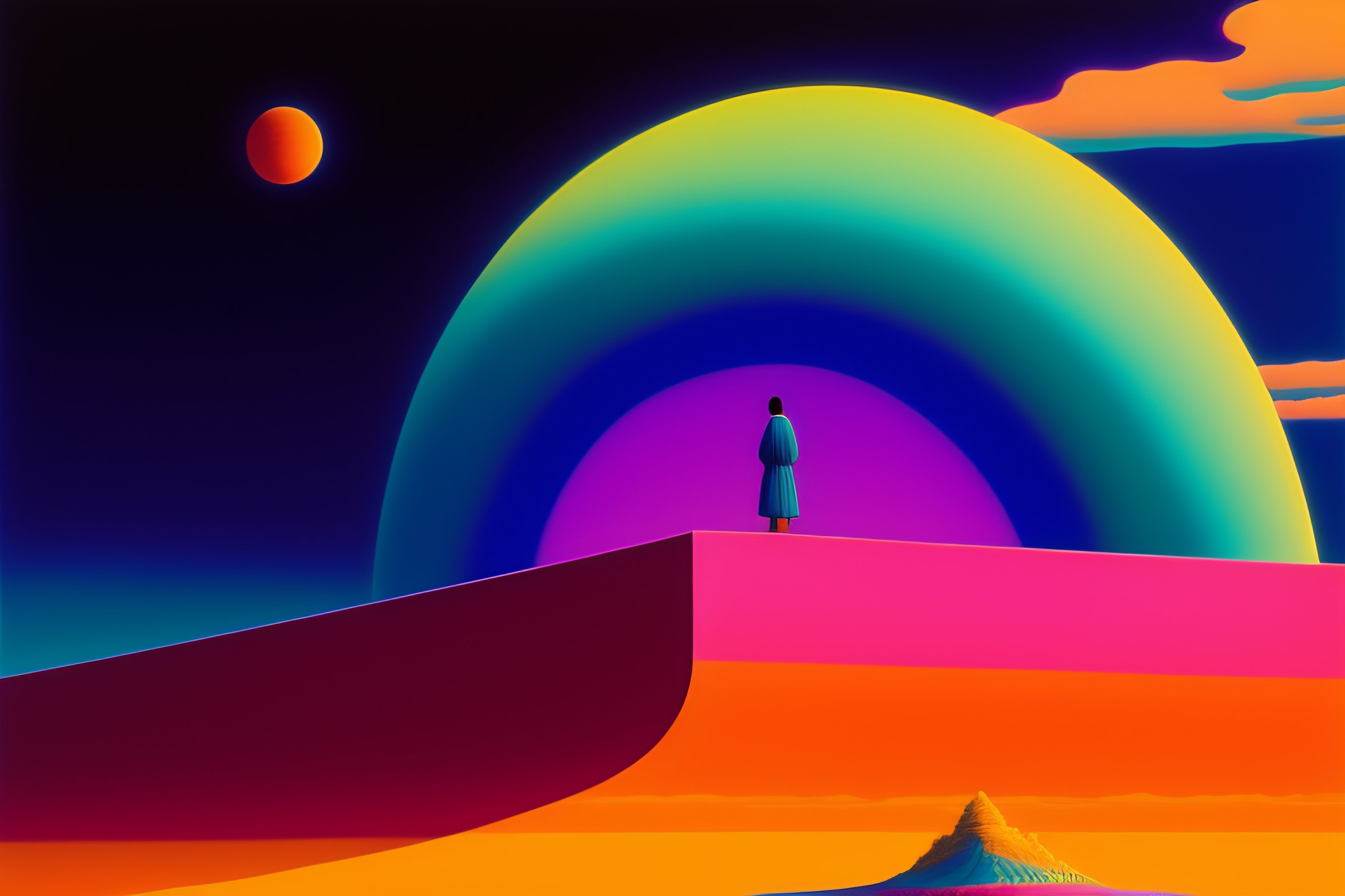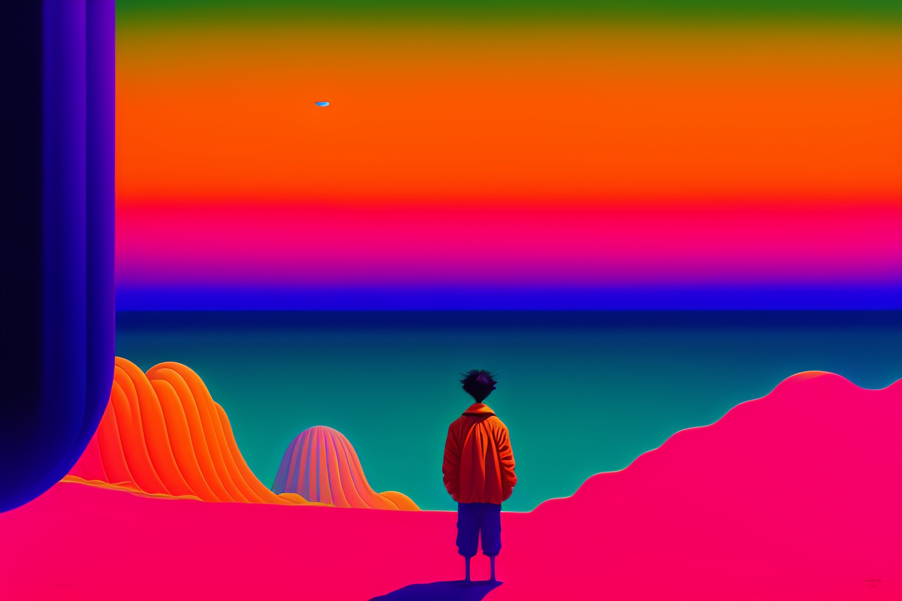 A colorful vibrant closeup portrait of a floating body and dreaming psychedelic hallucinations, by kawase hasui, moebius, edward hopper and james gilleard, zdzislaw beksinski, steven outram colorful flat surreal design, hd, 8k, artstation