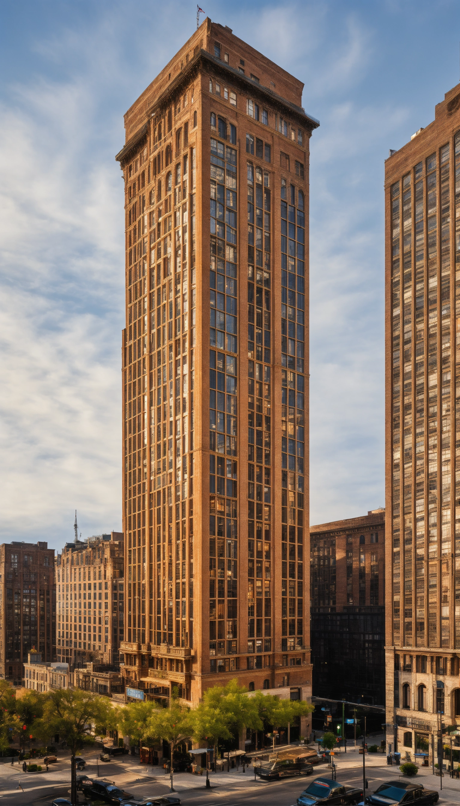 A 20th century palazzo style skyscraper in an american city