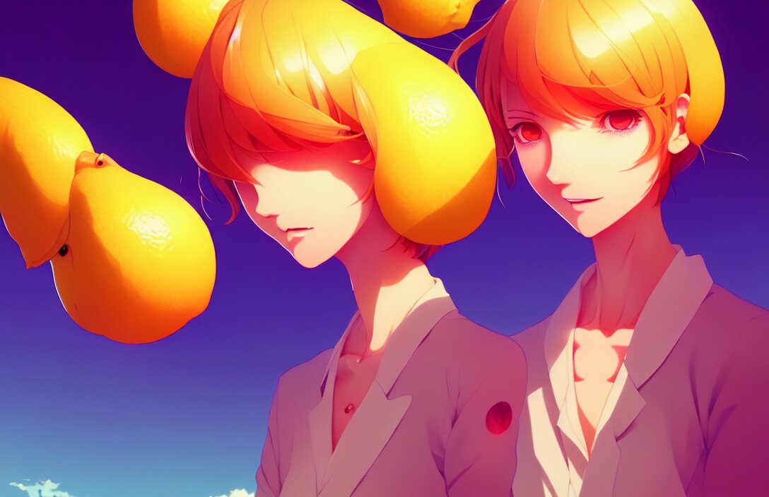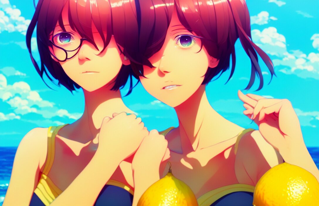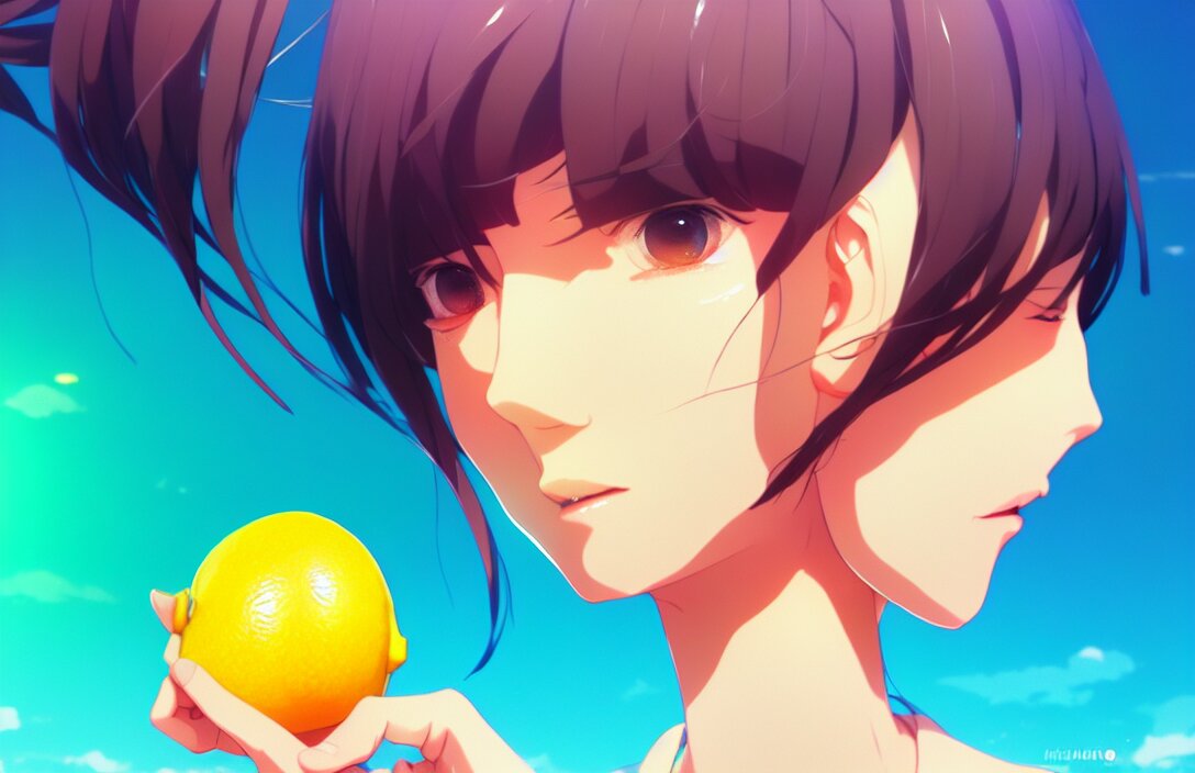 portrait of an sentient lemon, beach background, rich vivid colors, ambient lighting, dynamic lighting, 4k, hq, official media, anime key visual, makoto shinkai, ilya kuvshinov, lois van baarle, rossdraws, detailed, trending on artstation