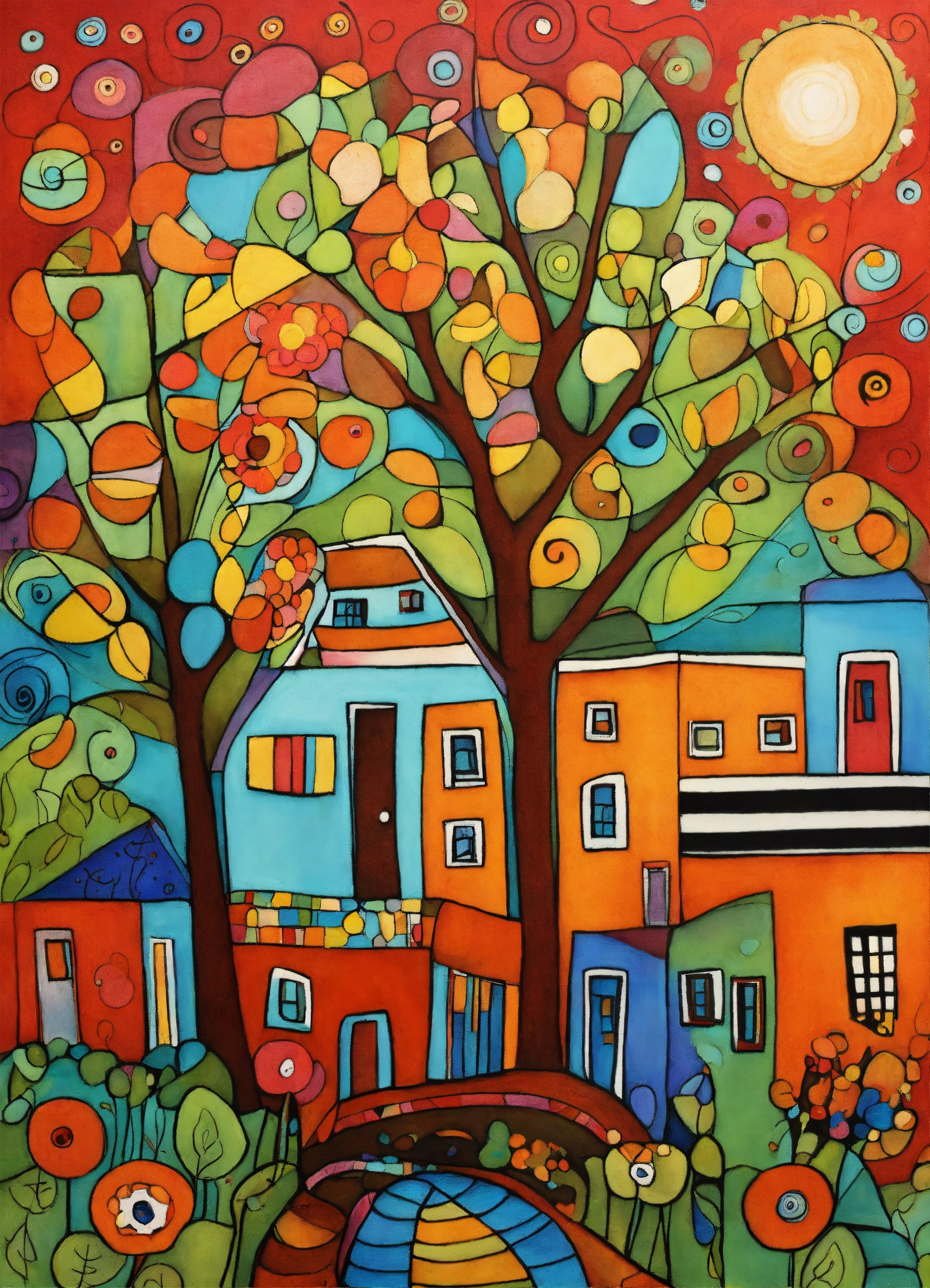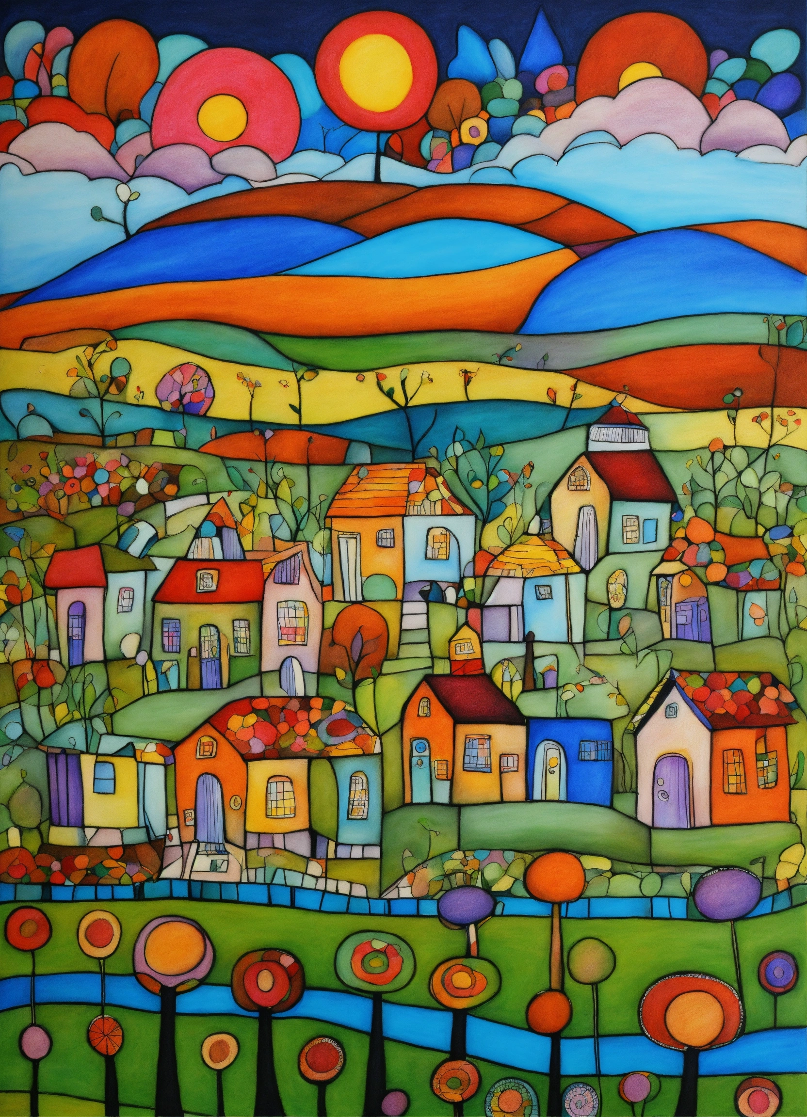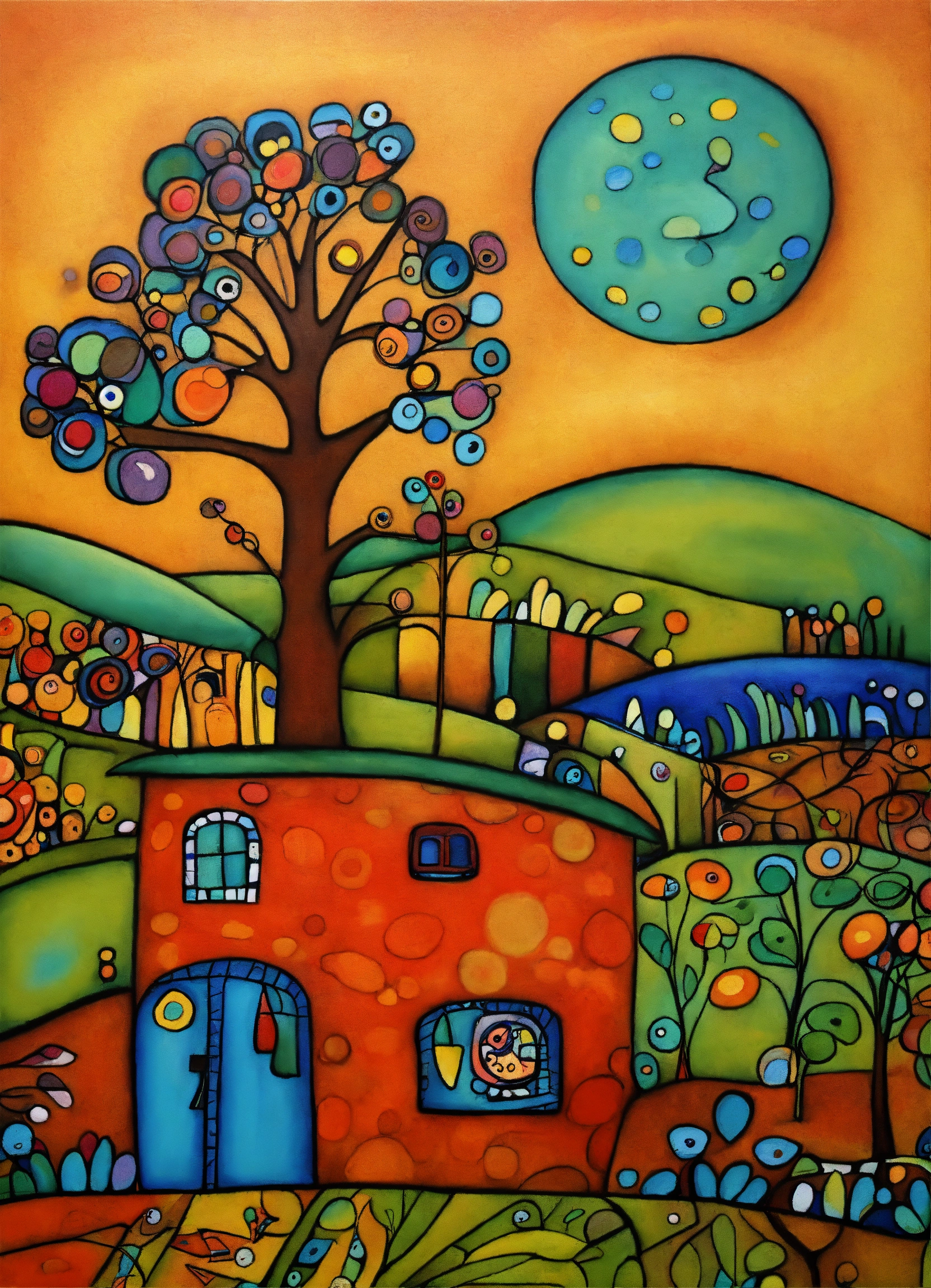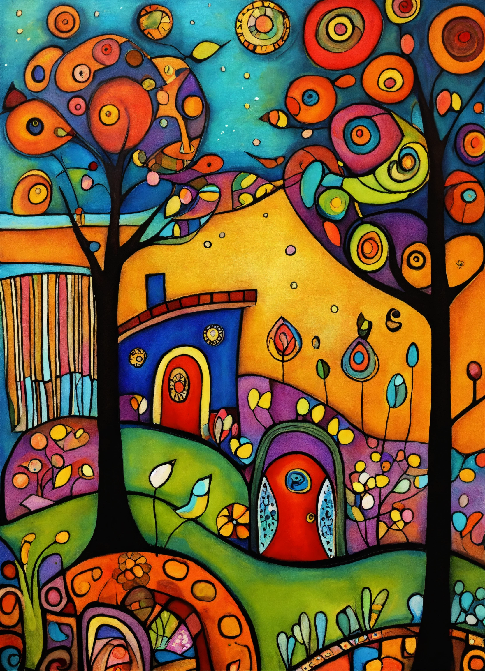 Art drawing abstract art scene folk art style inspired by karla gerard