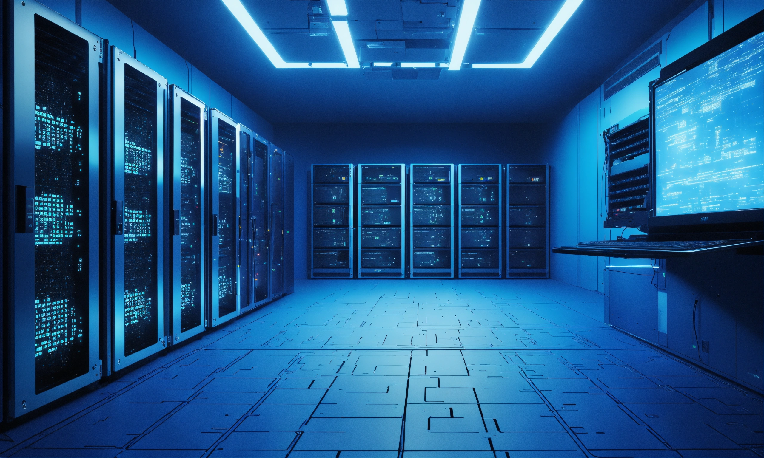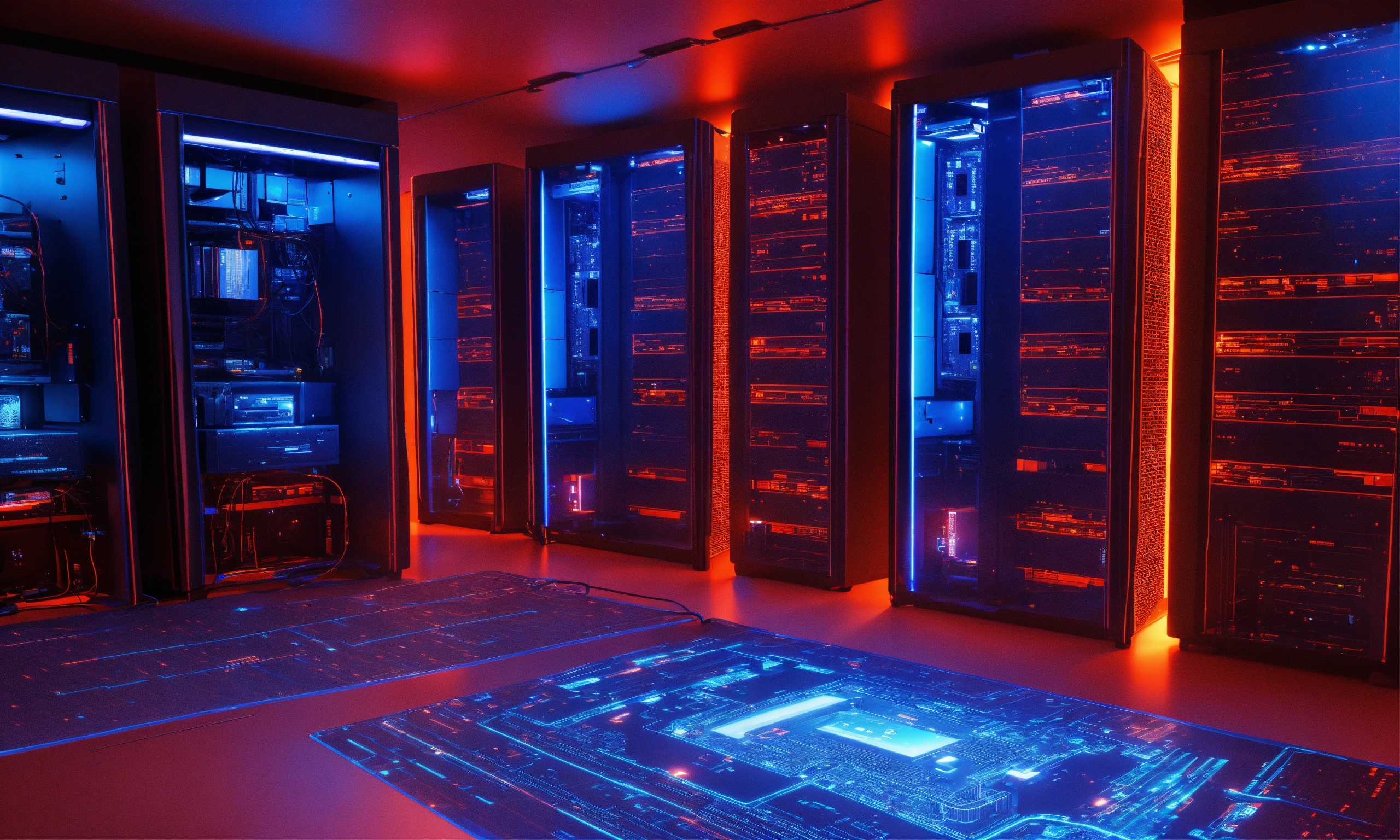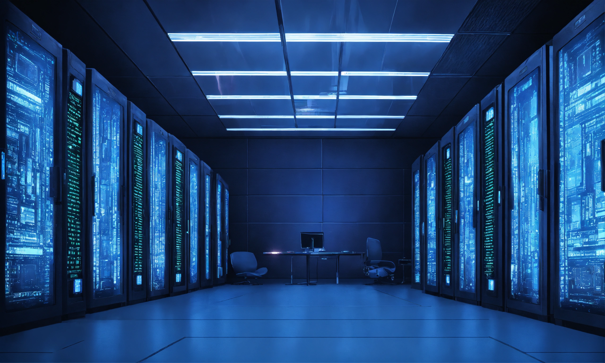 Blue wallpaper 4 hackers in futuristic state server room hacking on hologram pcs epic wallpaper
