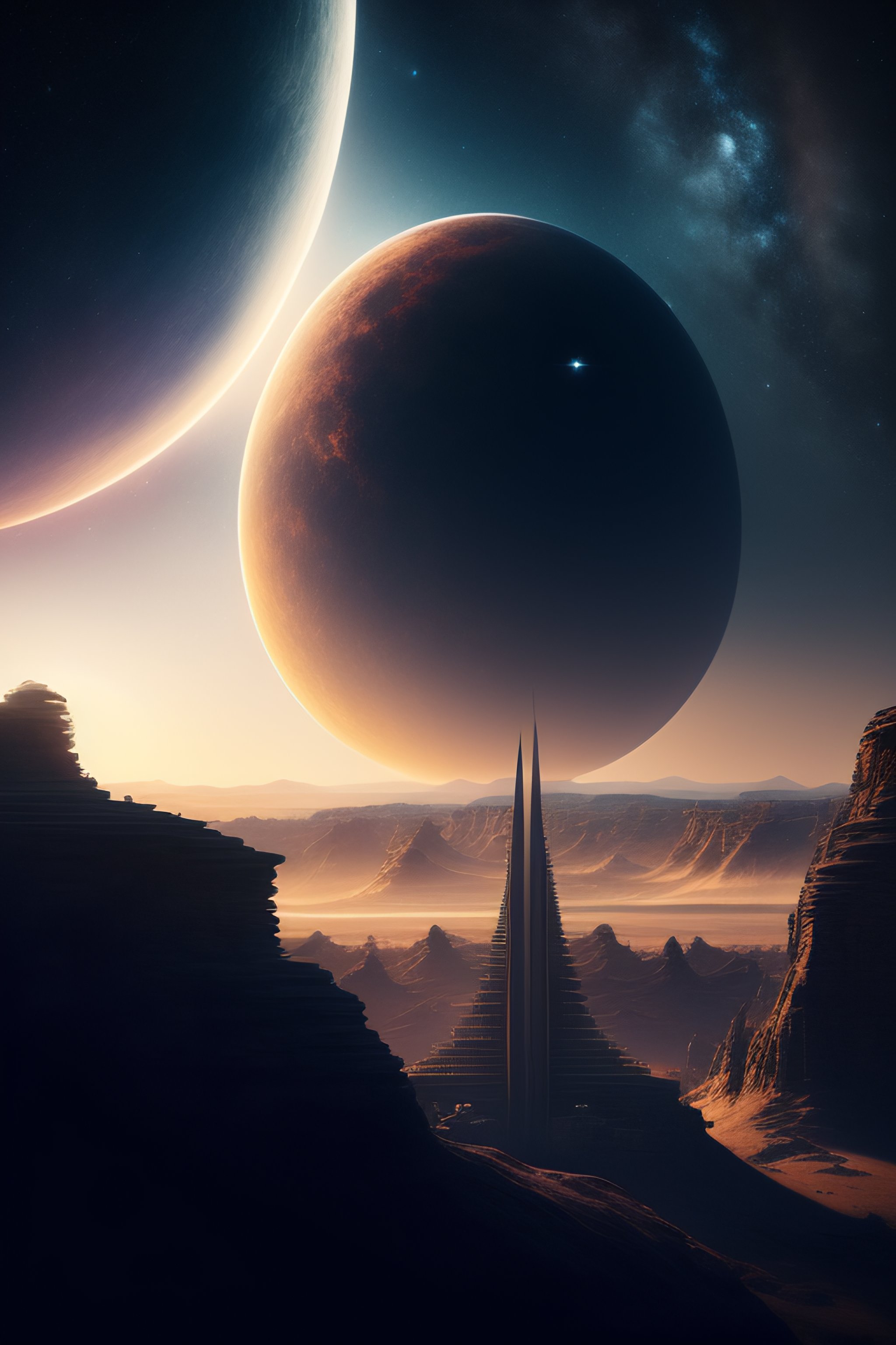 Group of ancient alien, face, deep space, clear skies, realistic, ancient build in the background, nephilims
