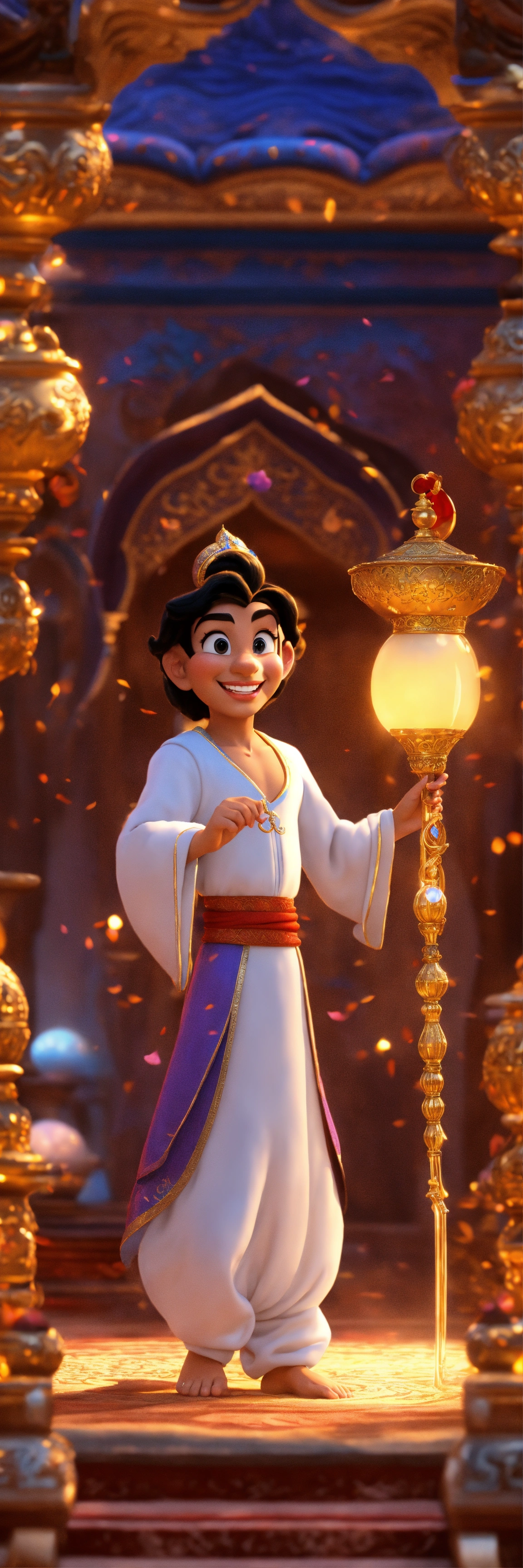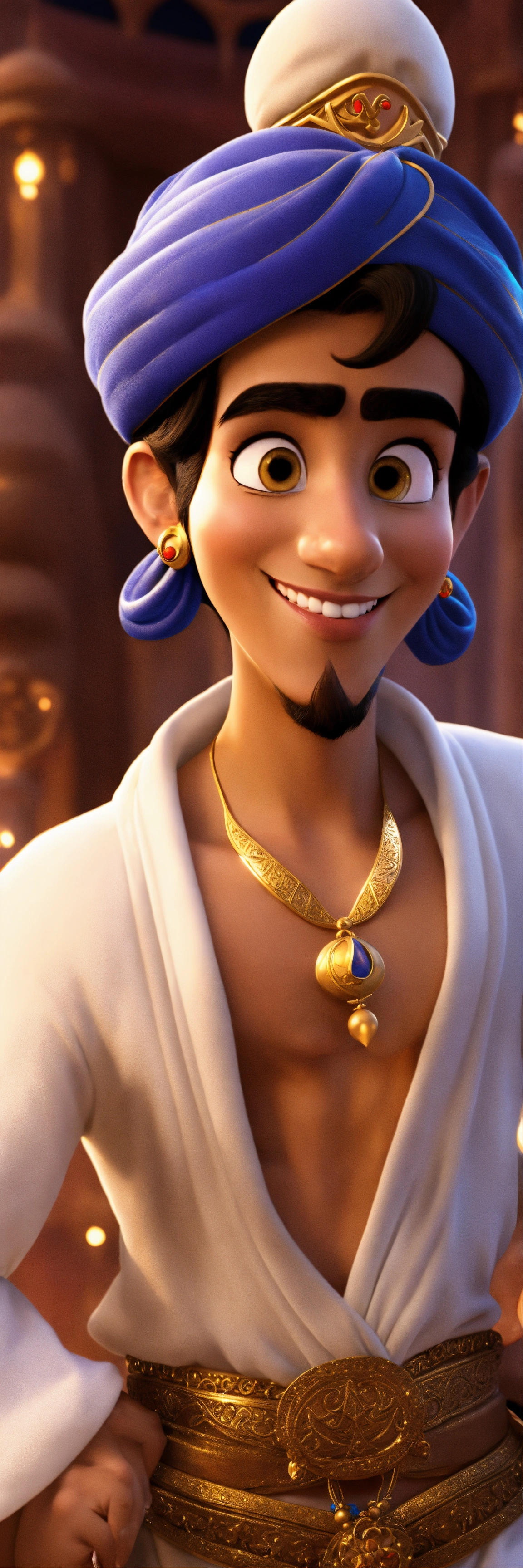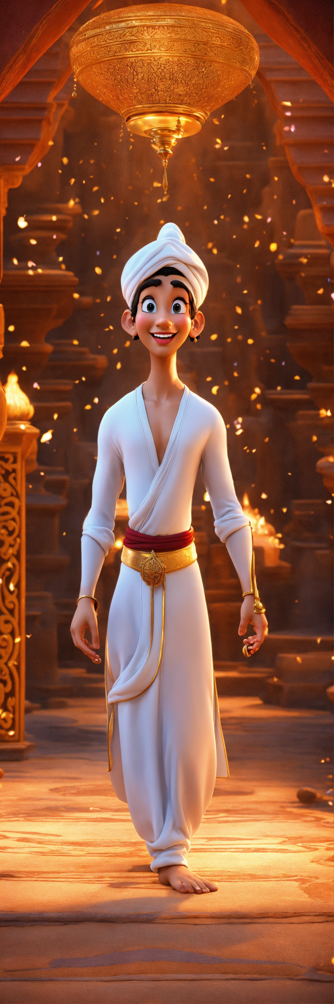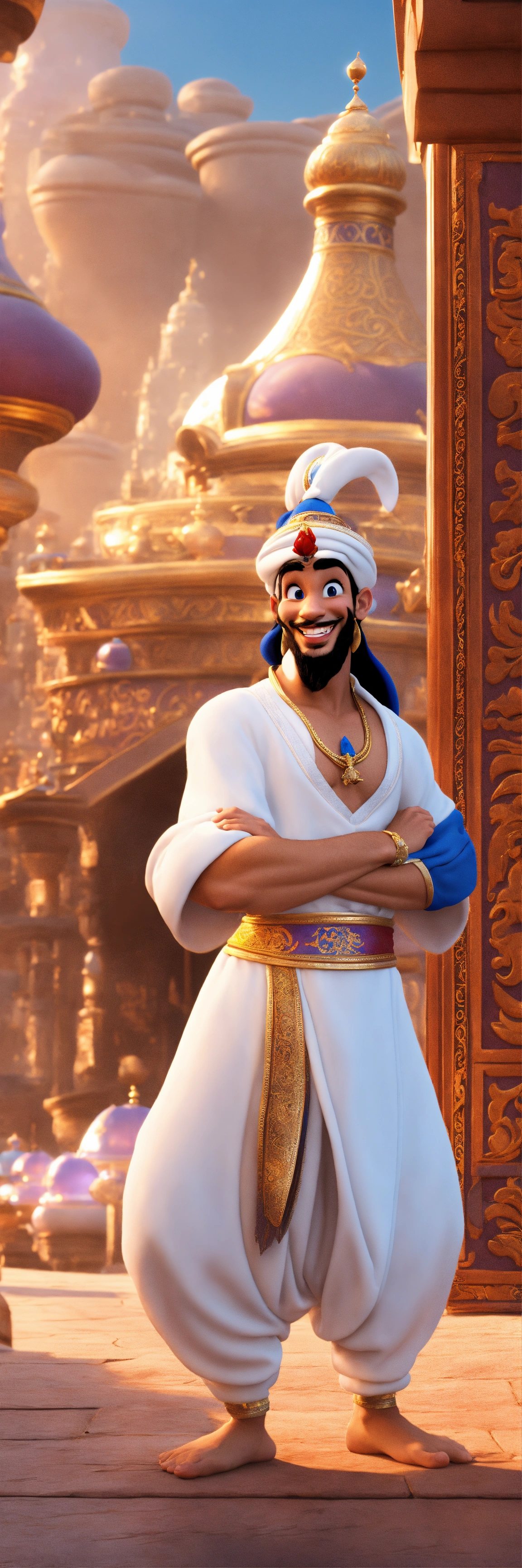 3d cartoon disney aladdin genie in white ḥaṭṭah