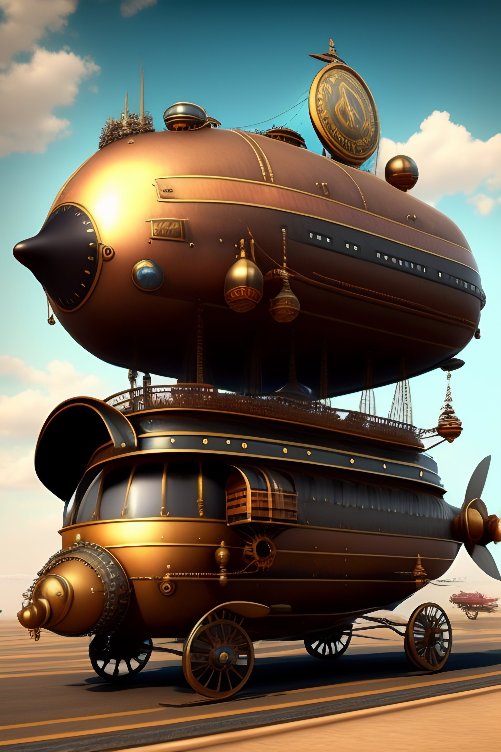 Steampunk city airplane airship aircraft