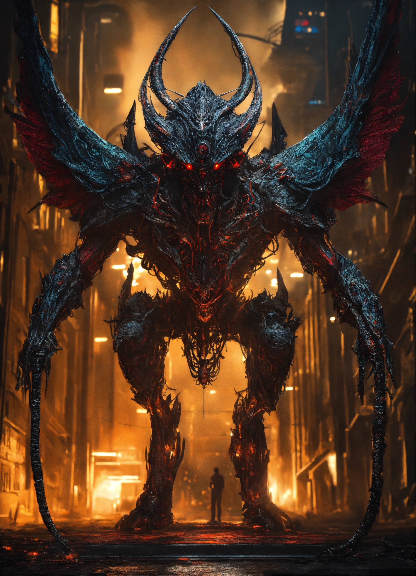 Unbelievable ominous omniscient demonpede, incredibly imaginative and creative, inspired by apollyon and lucifer mixed with alien dna, extremely creative and unique, highly detailed and realistic, futuristic