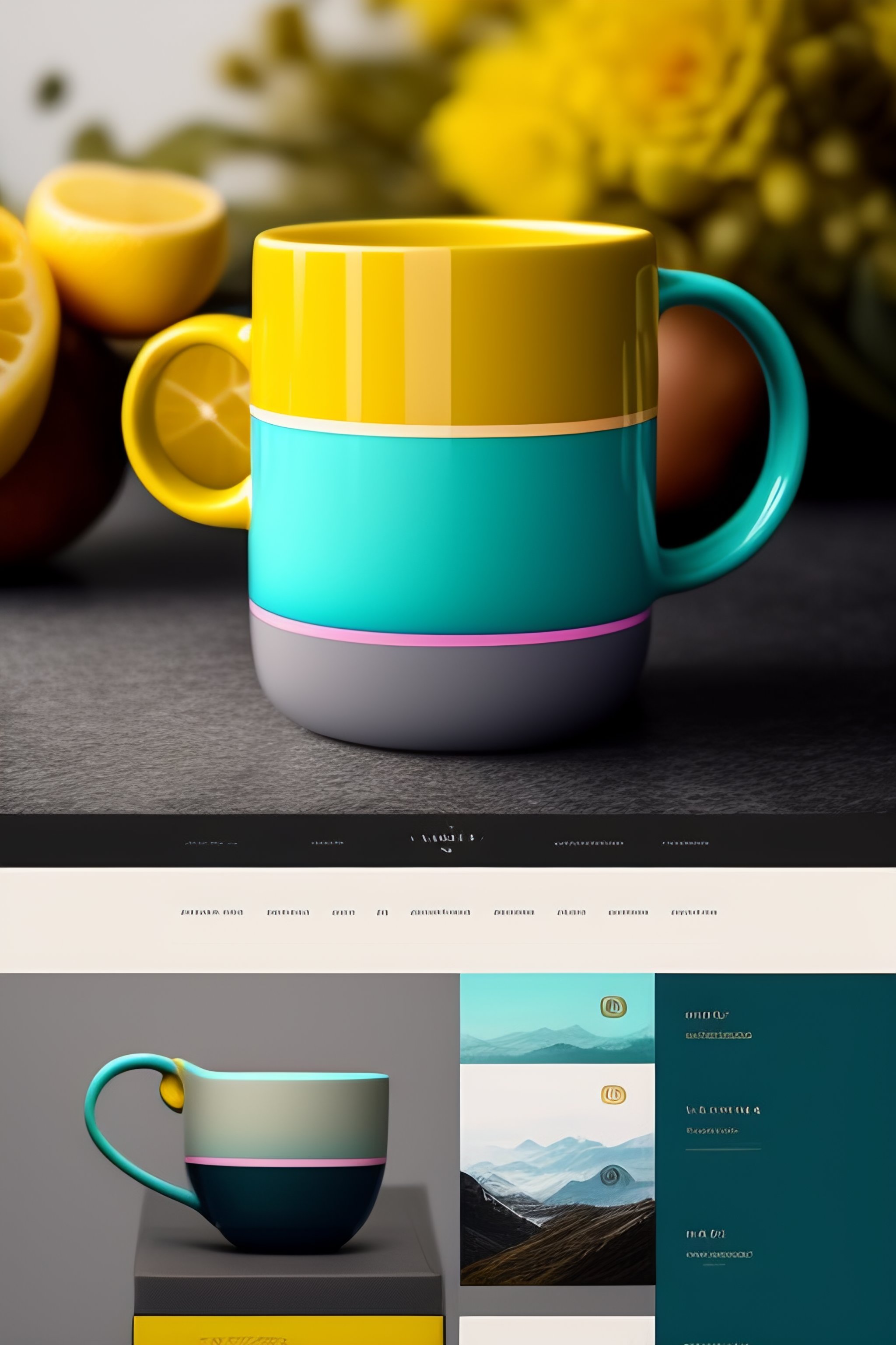 Beautiful website for personlized coffee mugs and gifts, ui, ux, ui/ux, pastel colors, teal, yellow, white, grey