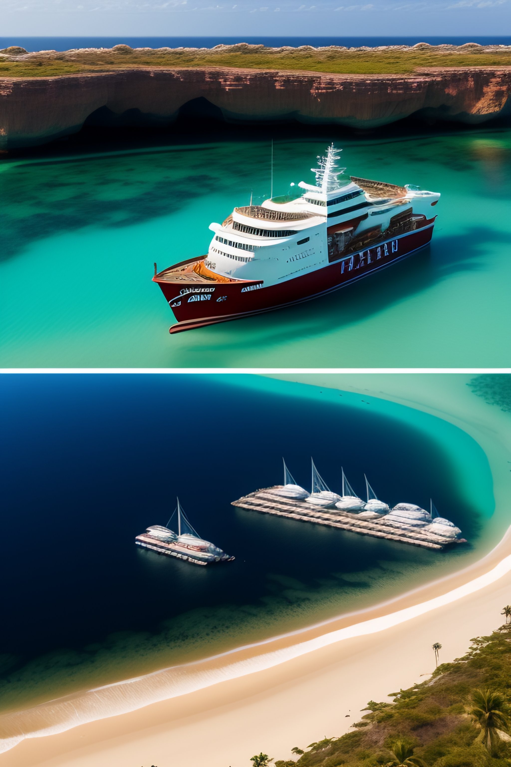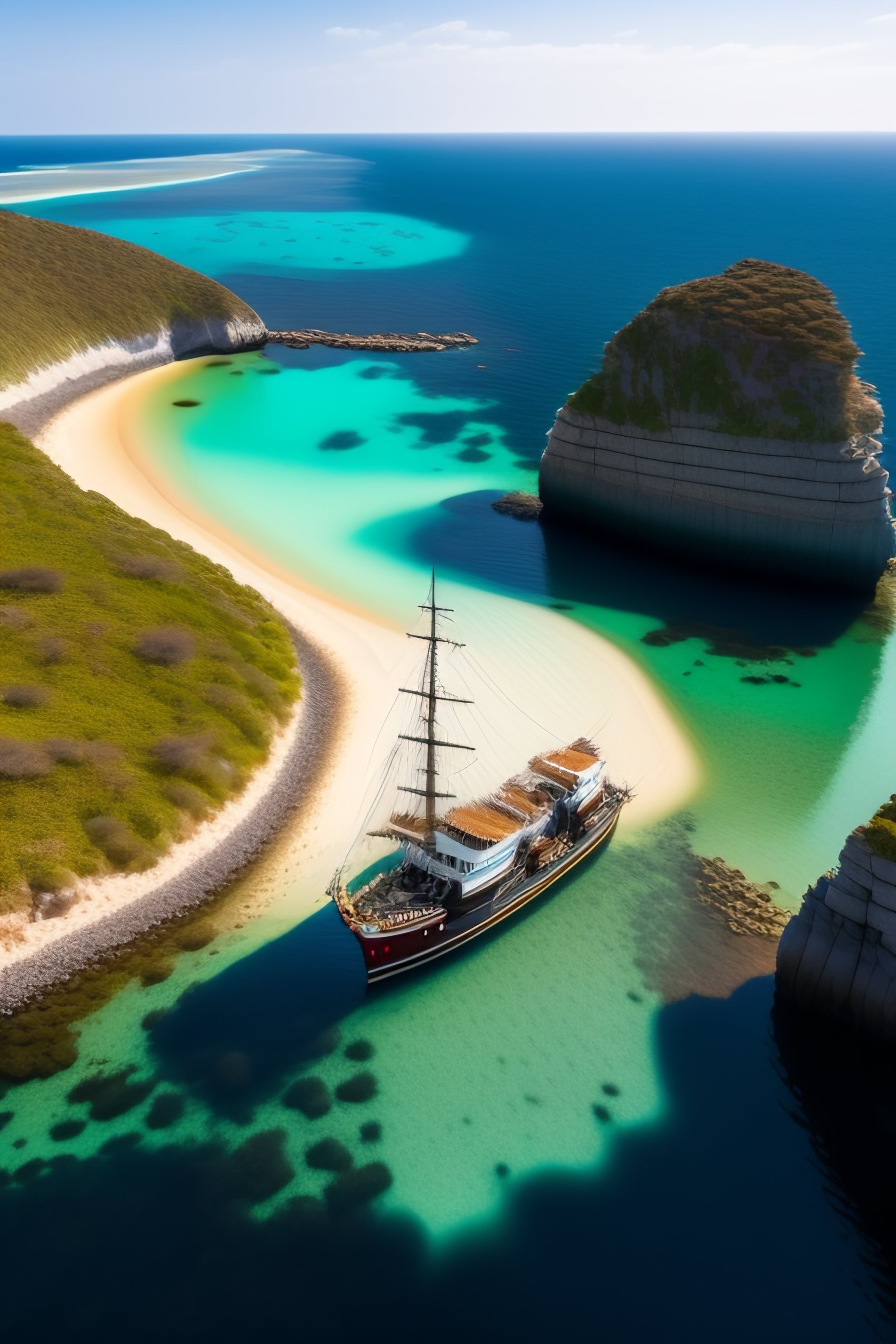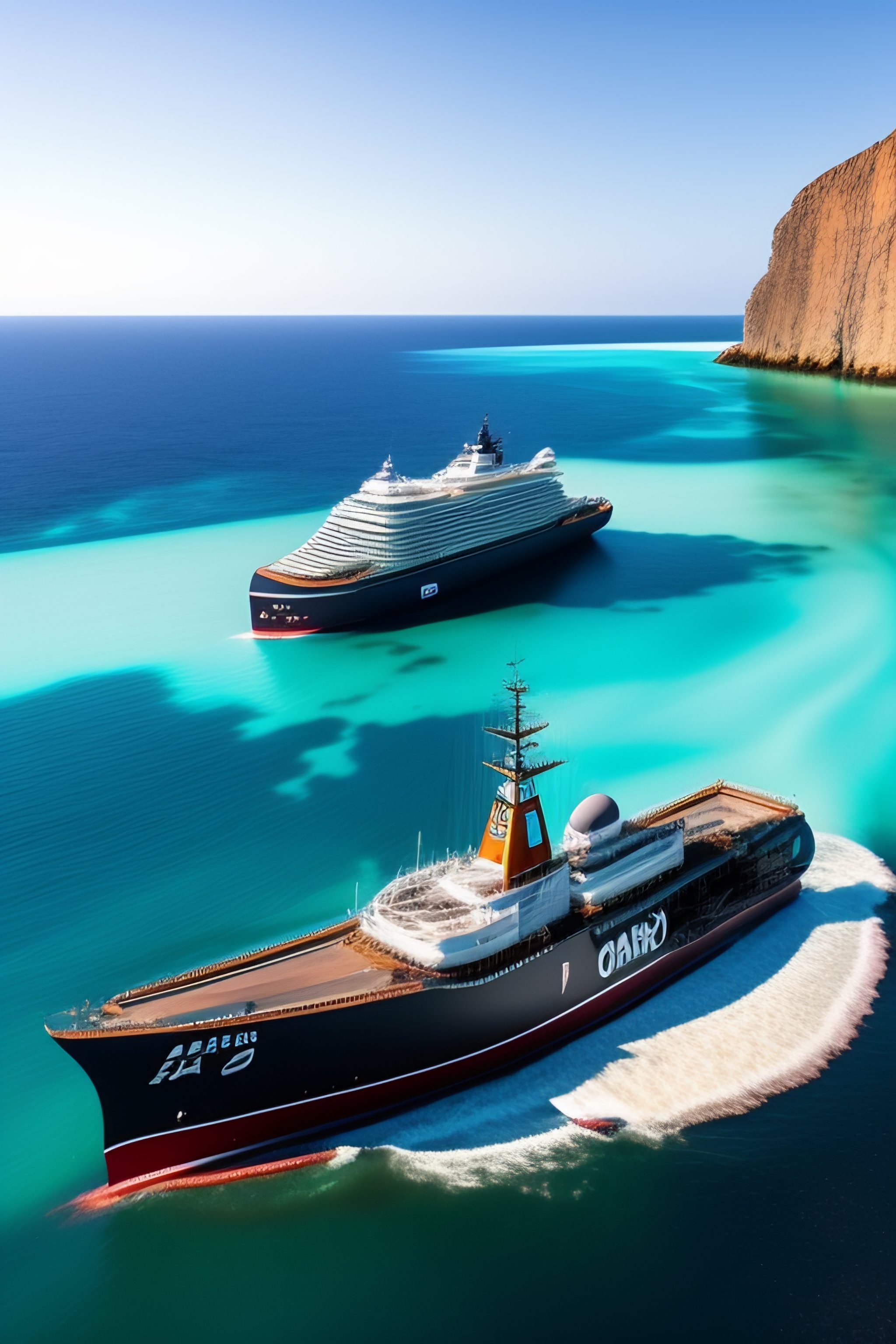 Plano cenital de un barco pesquero grande en la mitad del oceano. agua clara