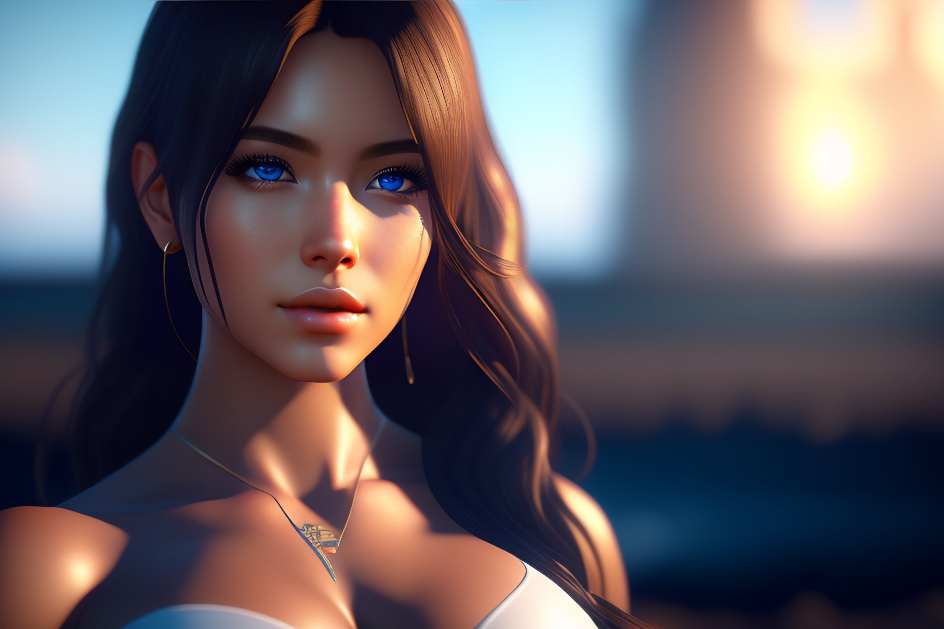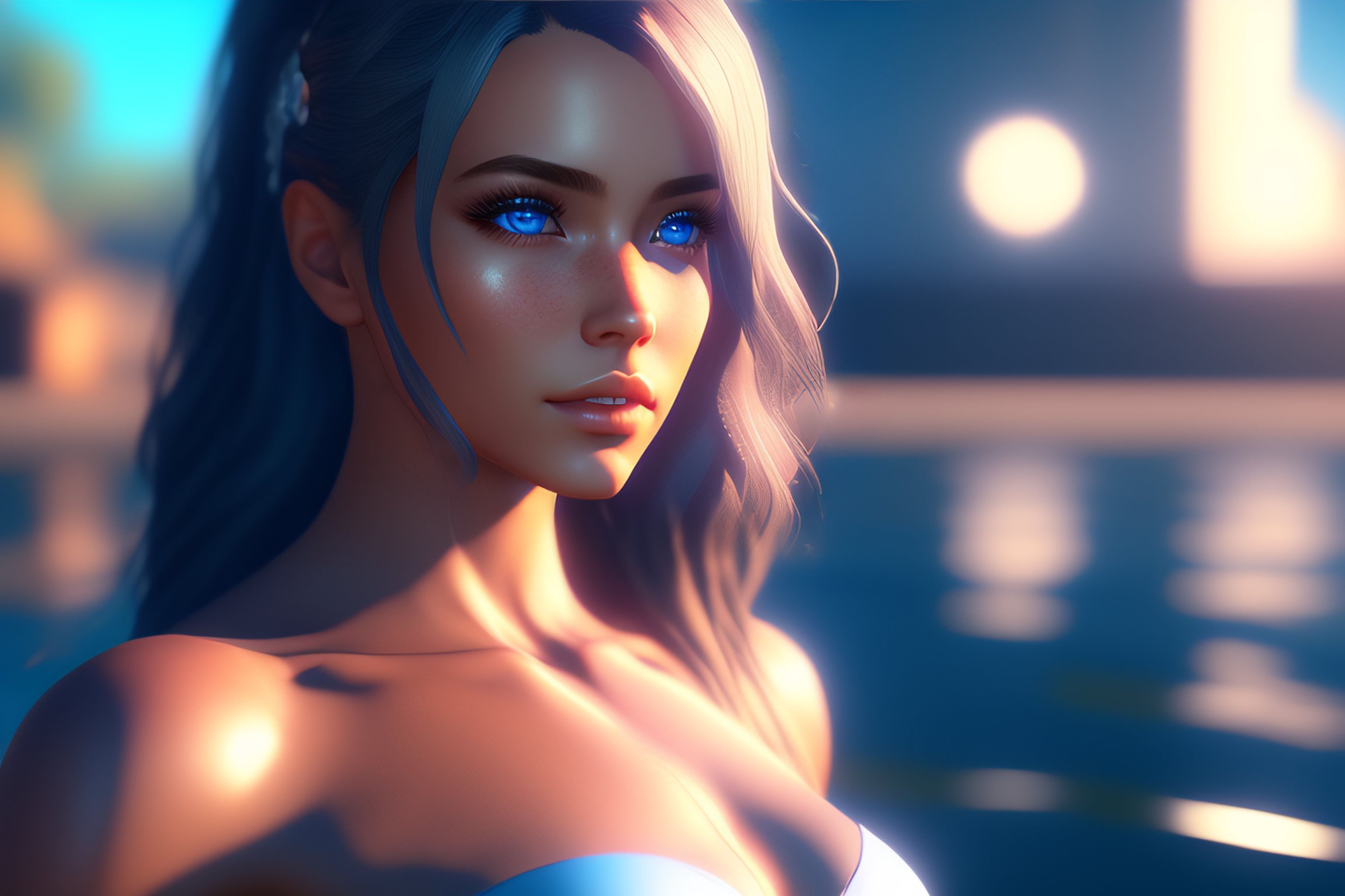 A detailed portrait of pretty anime girl blue eyes in bikini, unreal engine 5 rendered, incredibly highly detailed and realistic, 8 k, sharp focus, studio quality