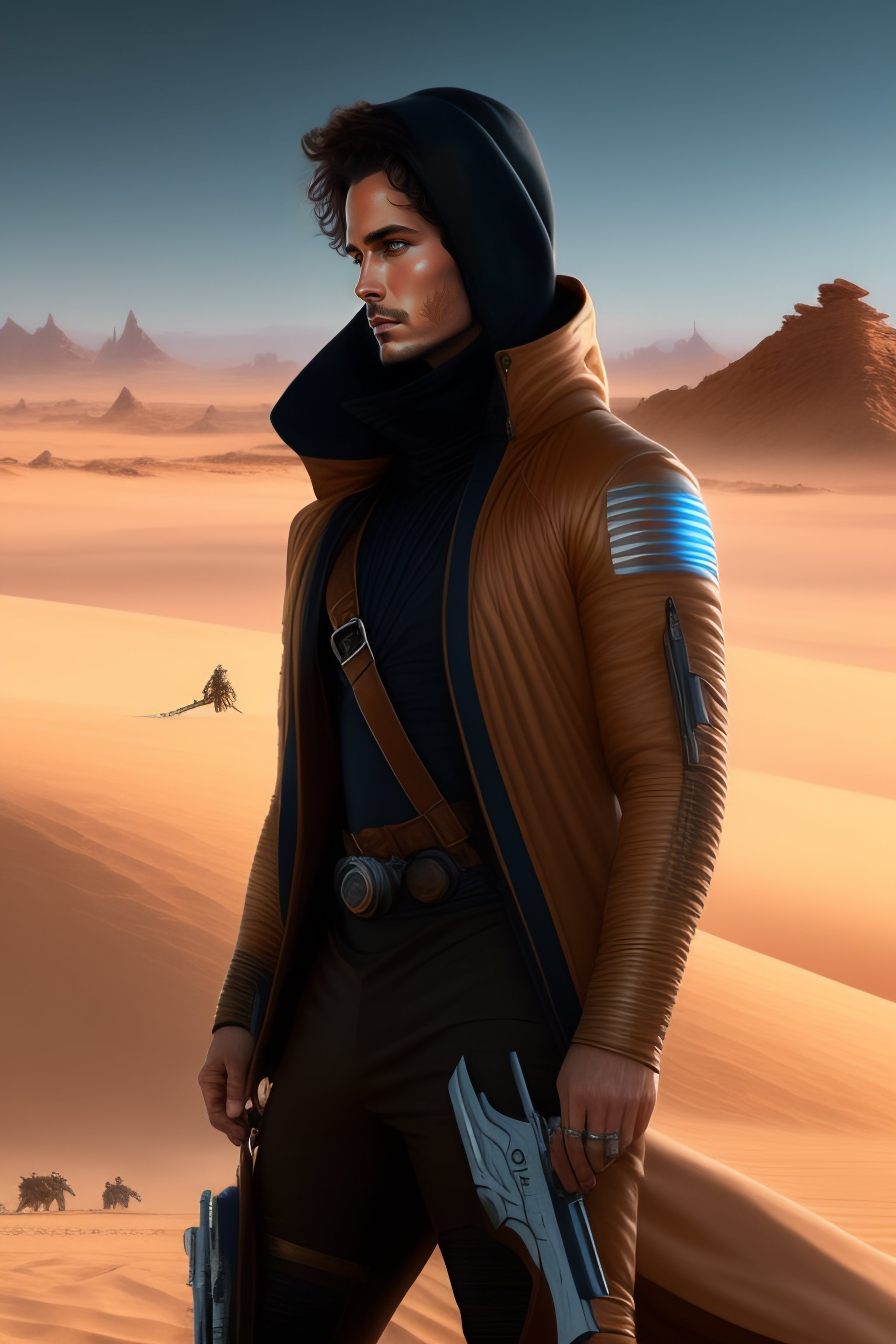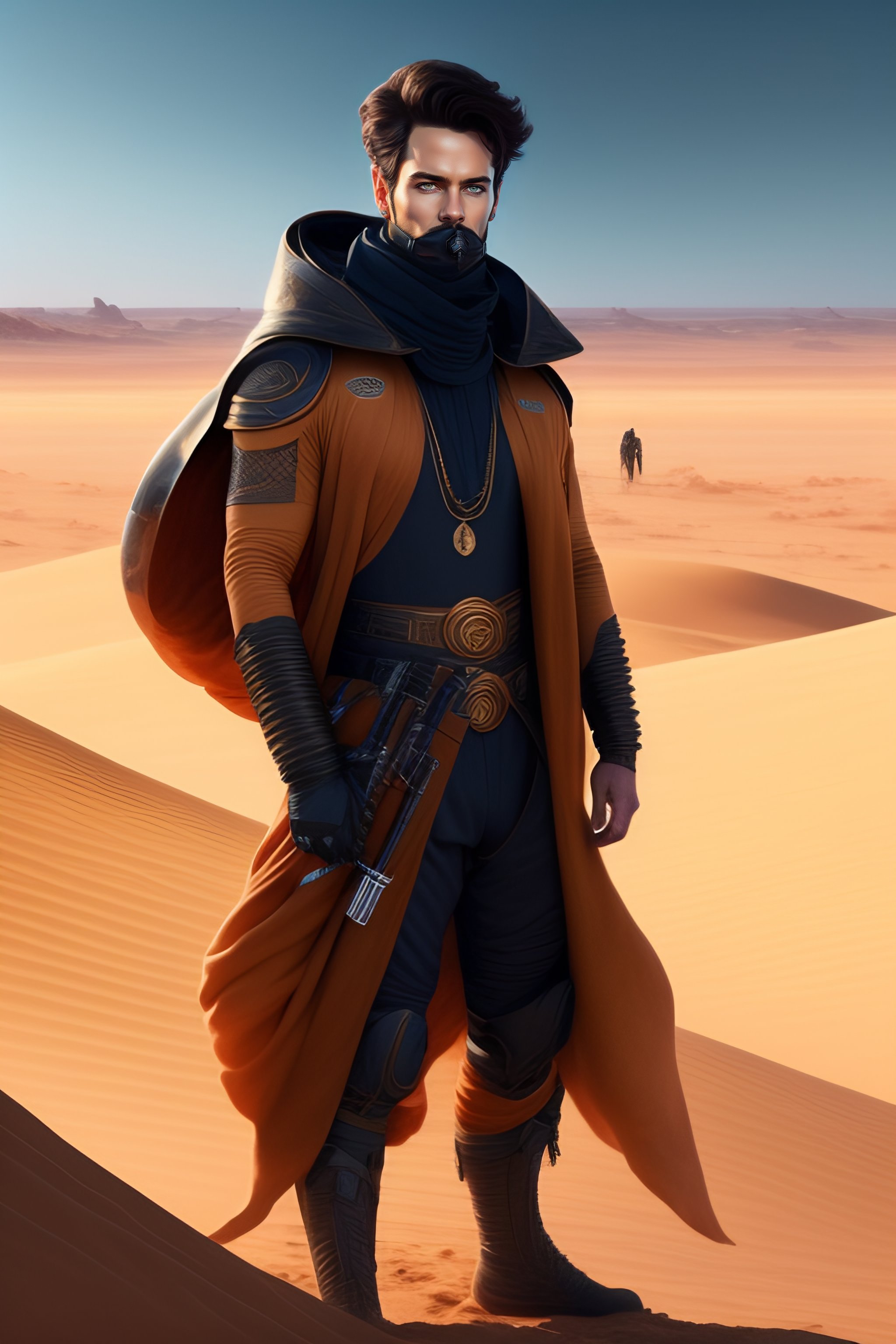 Paul atreides as muah'dib in a post apocalyptic planet of dune wearing his sweatsuit and his krysknife, by greg rutkowski