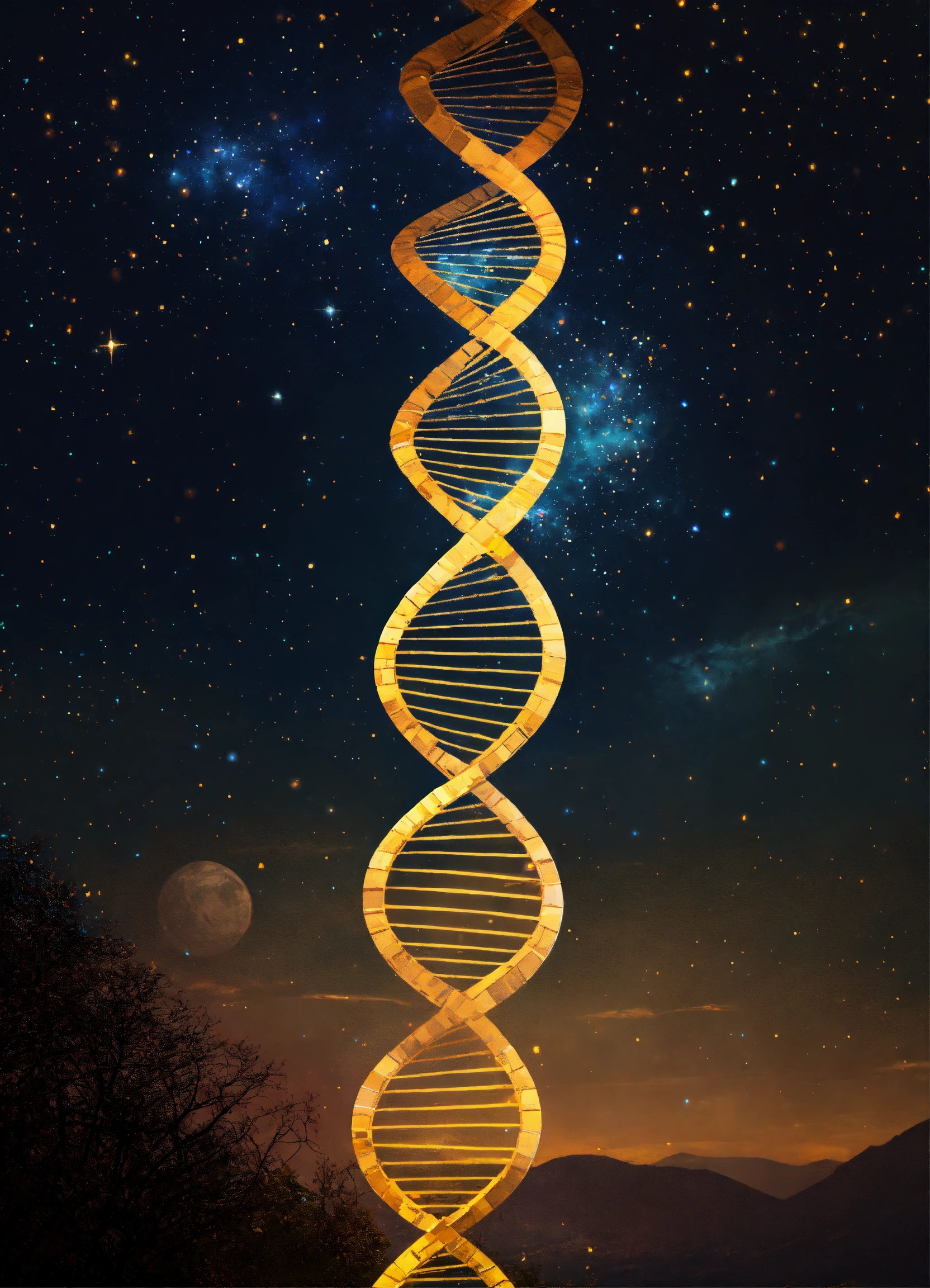 Dna code structure background starry sky