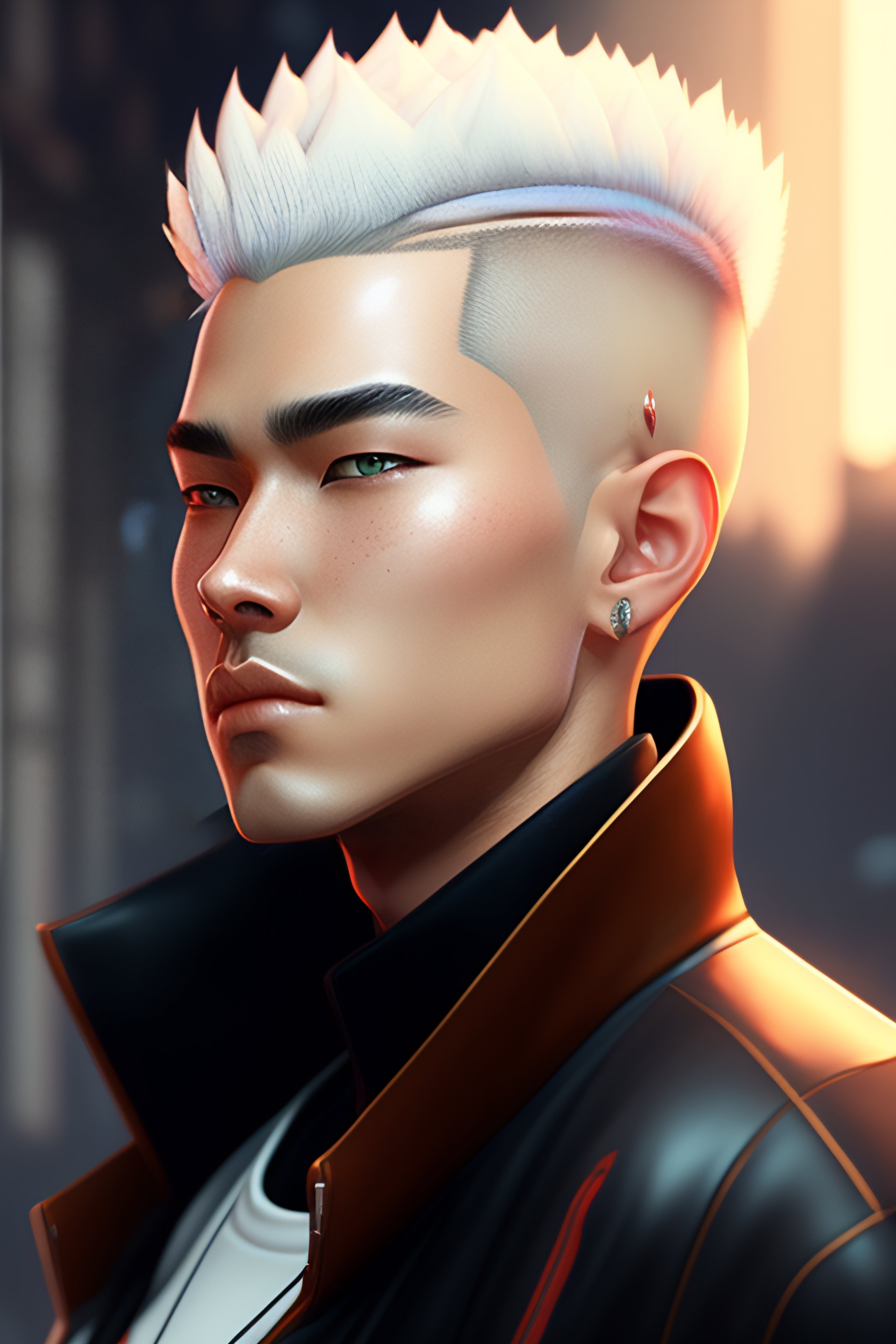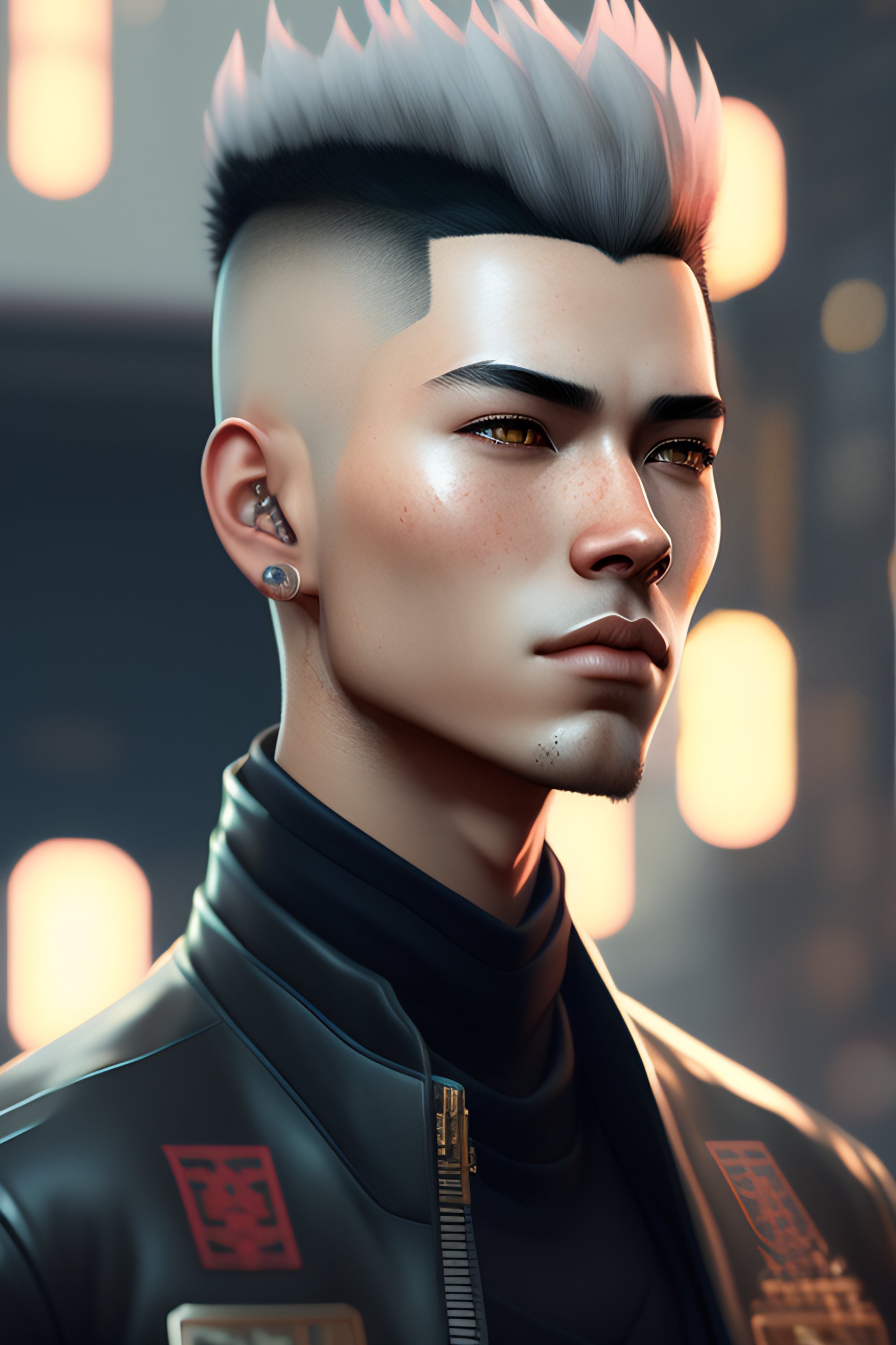 Portrait of a white young male punk, shaved sides of head, bad attitude, leather jacket, neglected, highly detailed, artstation, illustration, 8 k quality, by jordan grimmer and greg rutkowski and pine ( ハイネ ) and 薯 子 imoko and 香 川 悠 作 and wlop and maya takamura, intricate, beautiful, trending artstation, pixiv, digital art