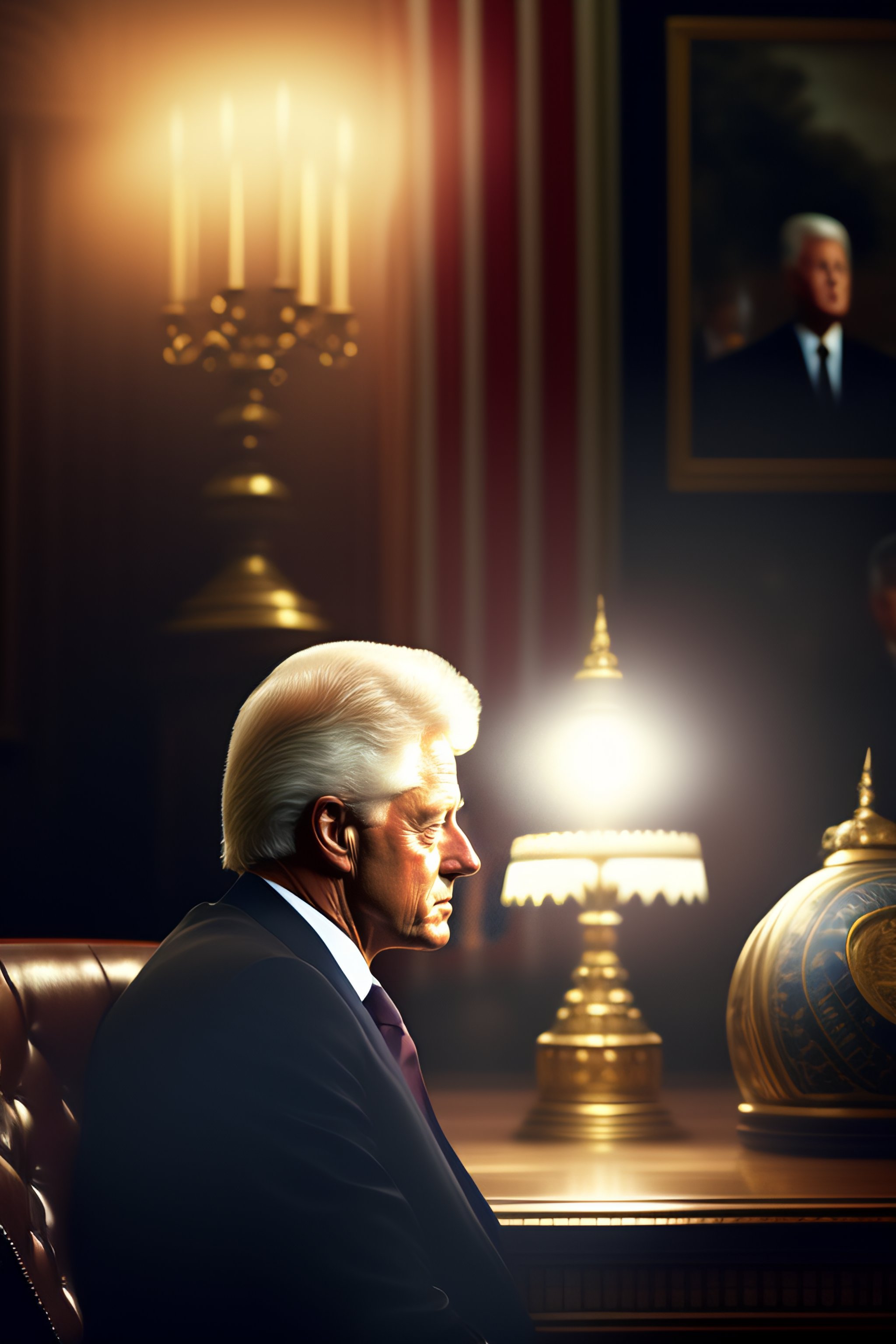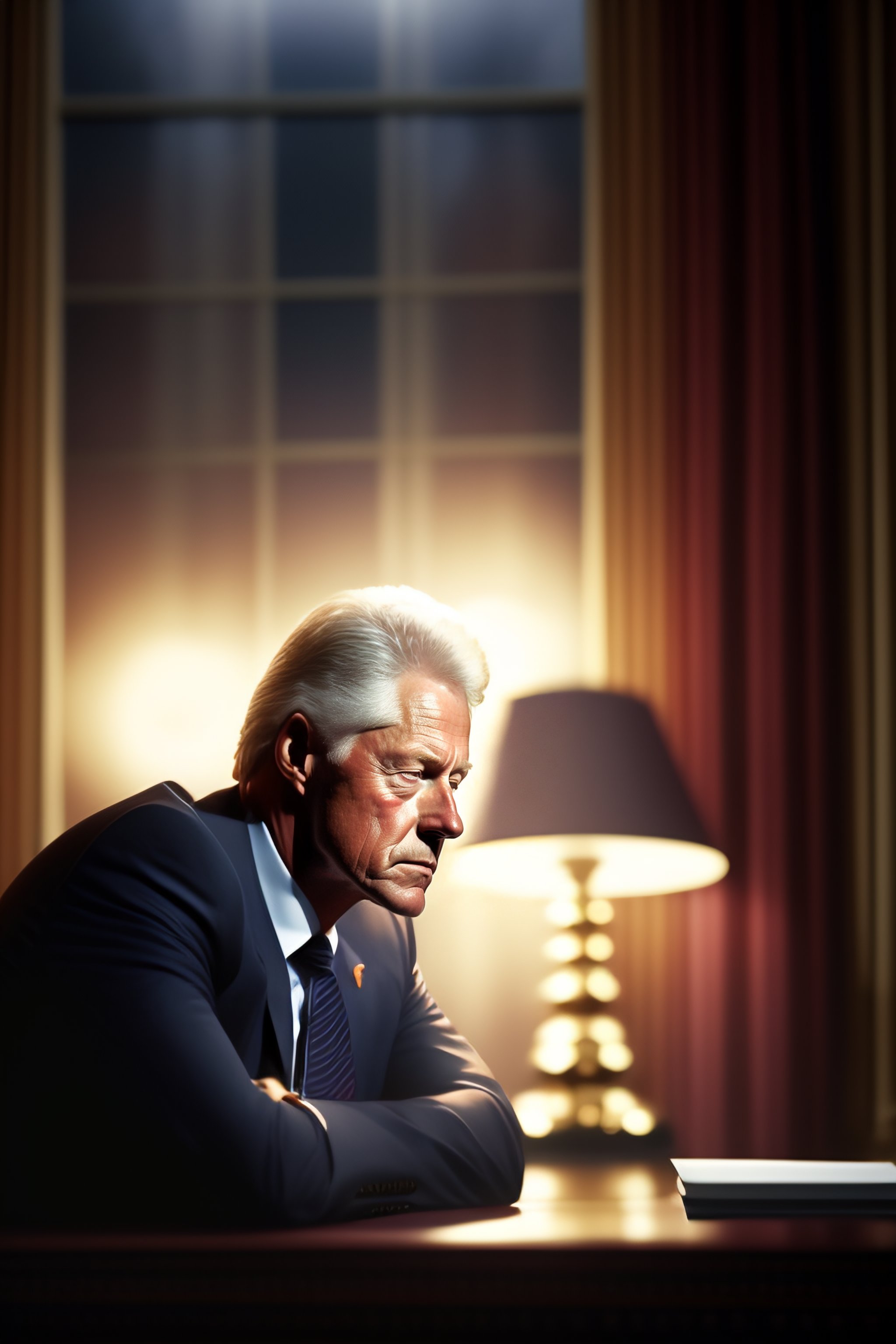 An exhausted bill clinton in the oval office at night with his team, key lighting, soft lights, foggy, by steve hanks, by lisa yuskavage, by serov valentin, by tarkovsky, 8 k render, detailed