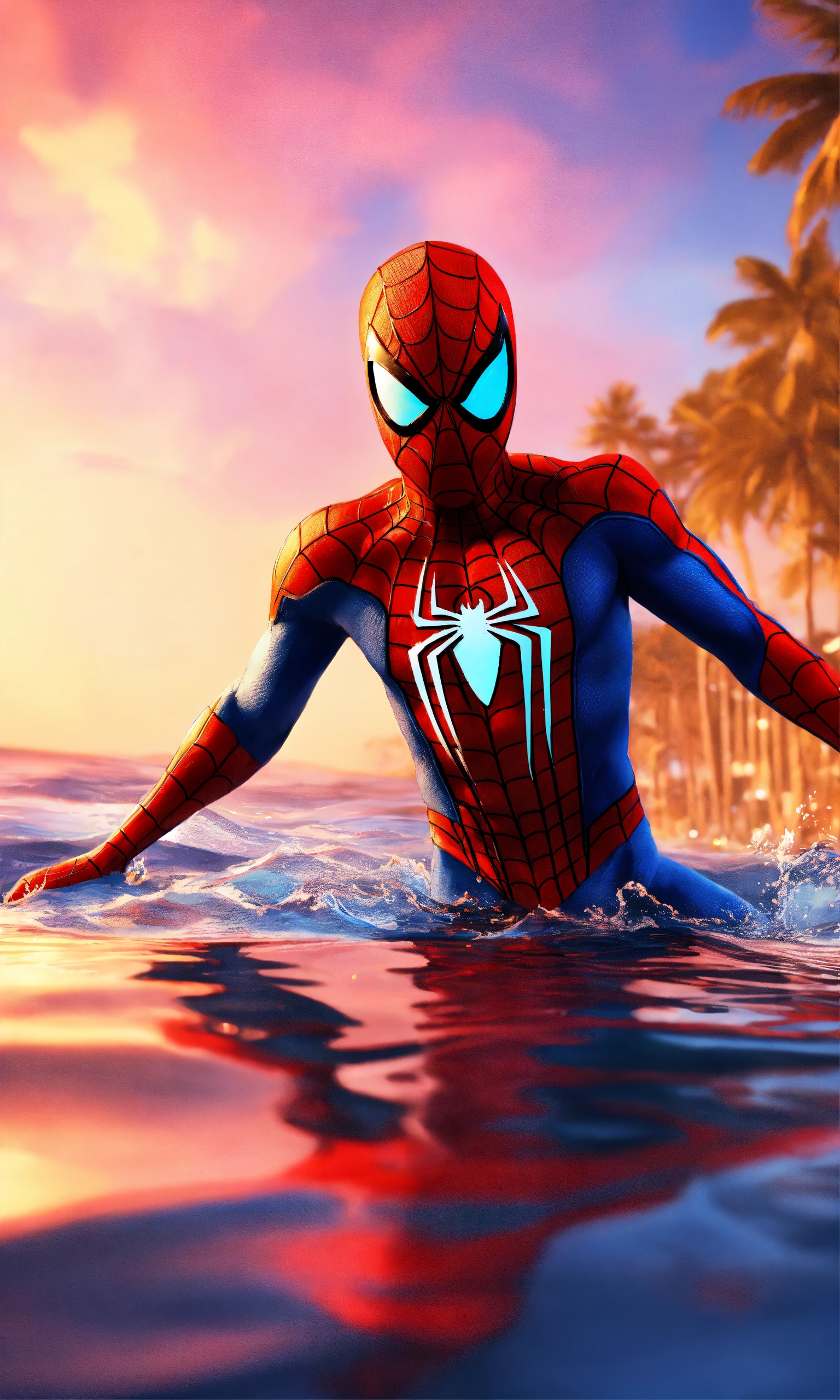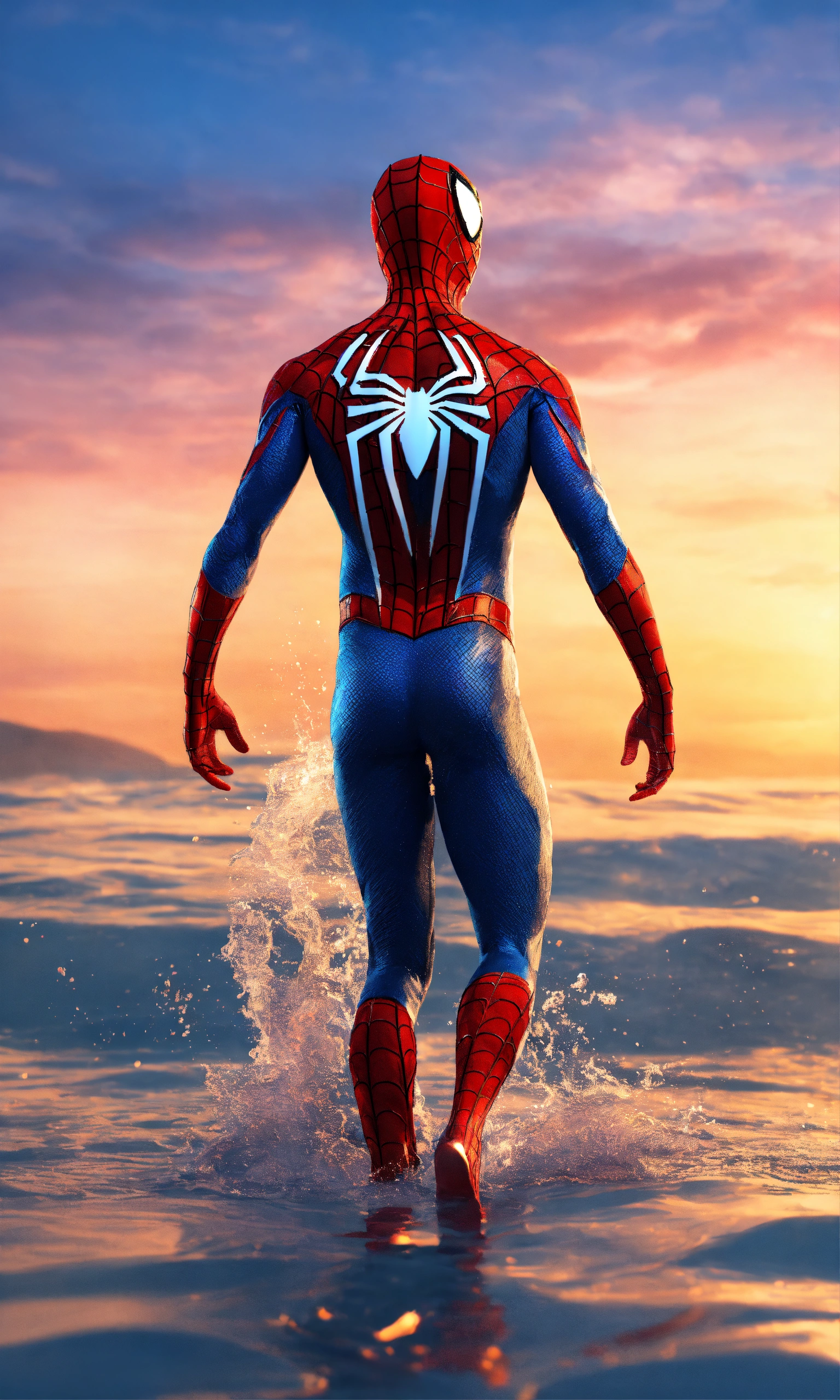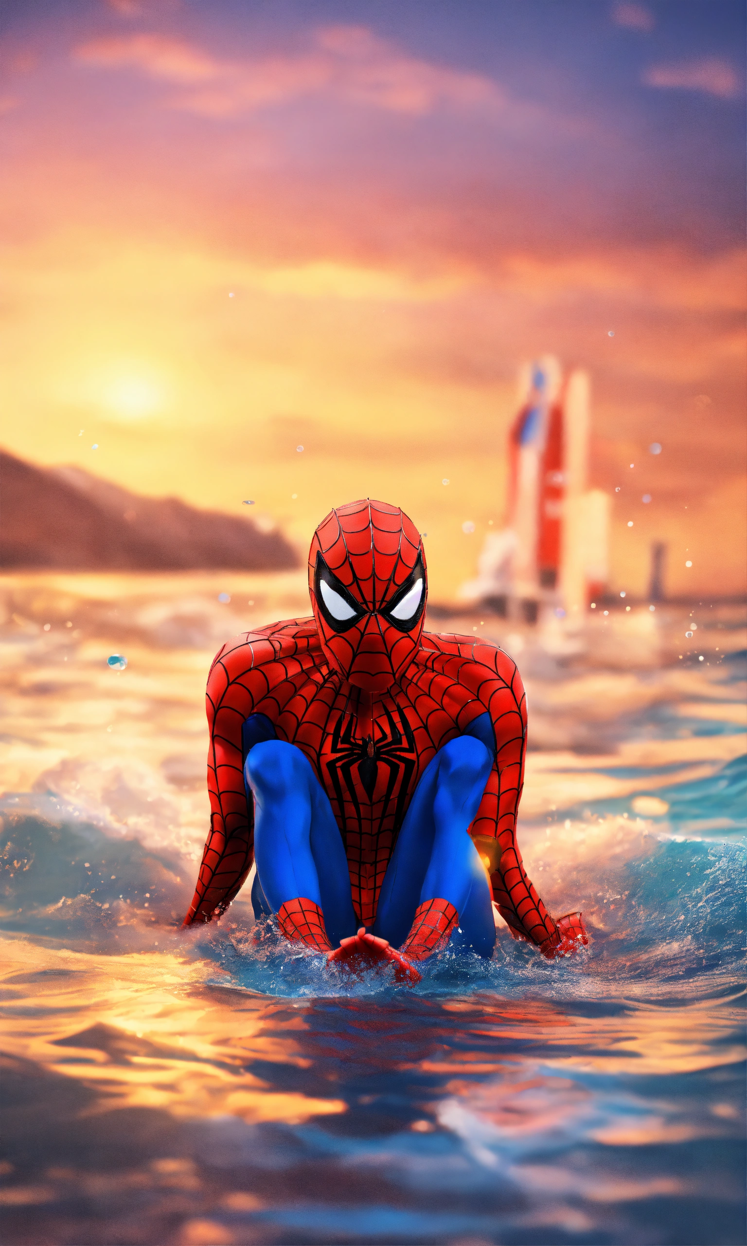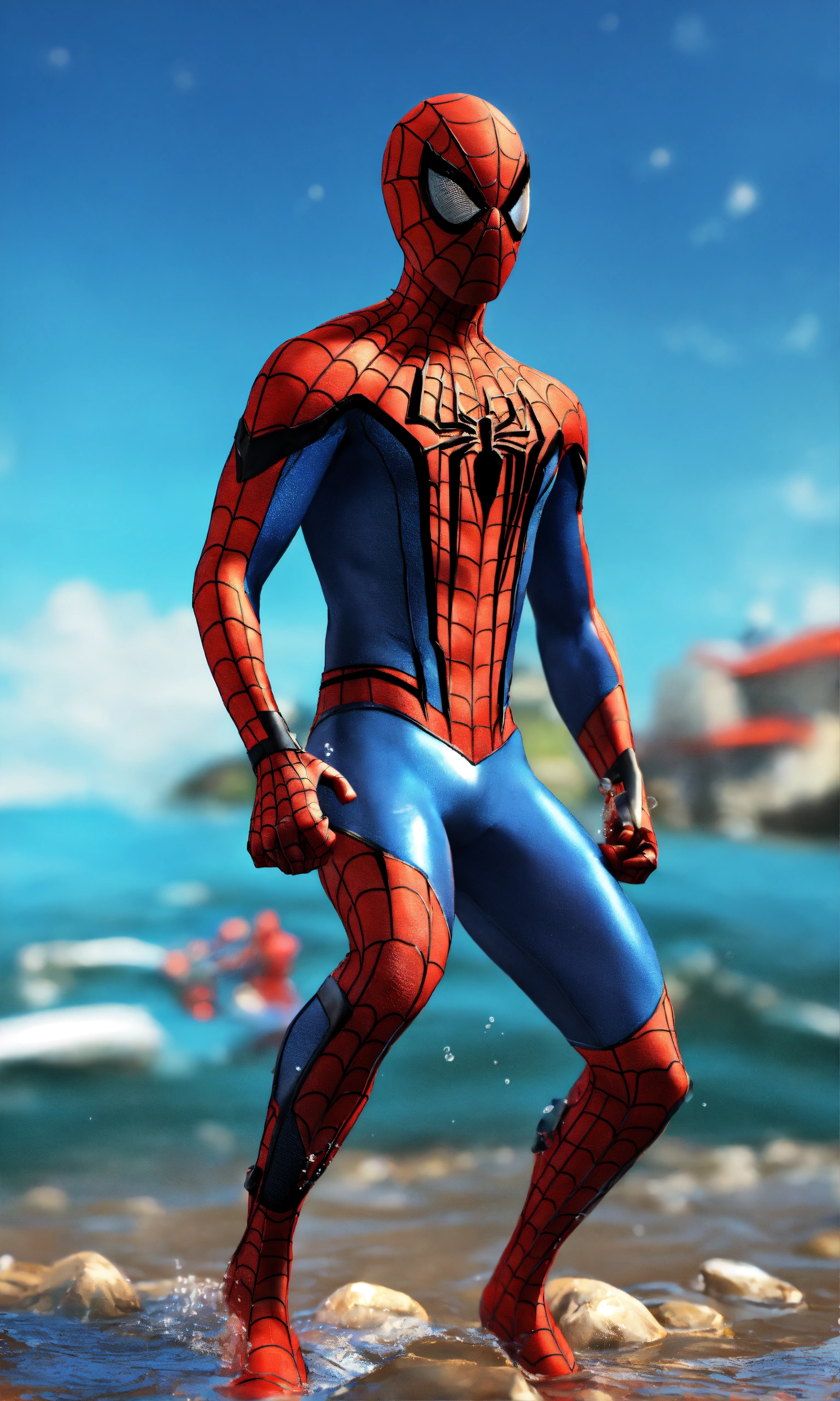 2018 spiderman swimming on the seaside full-body