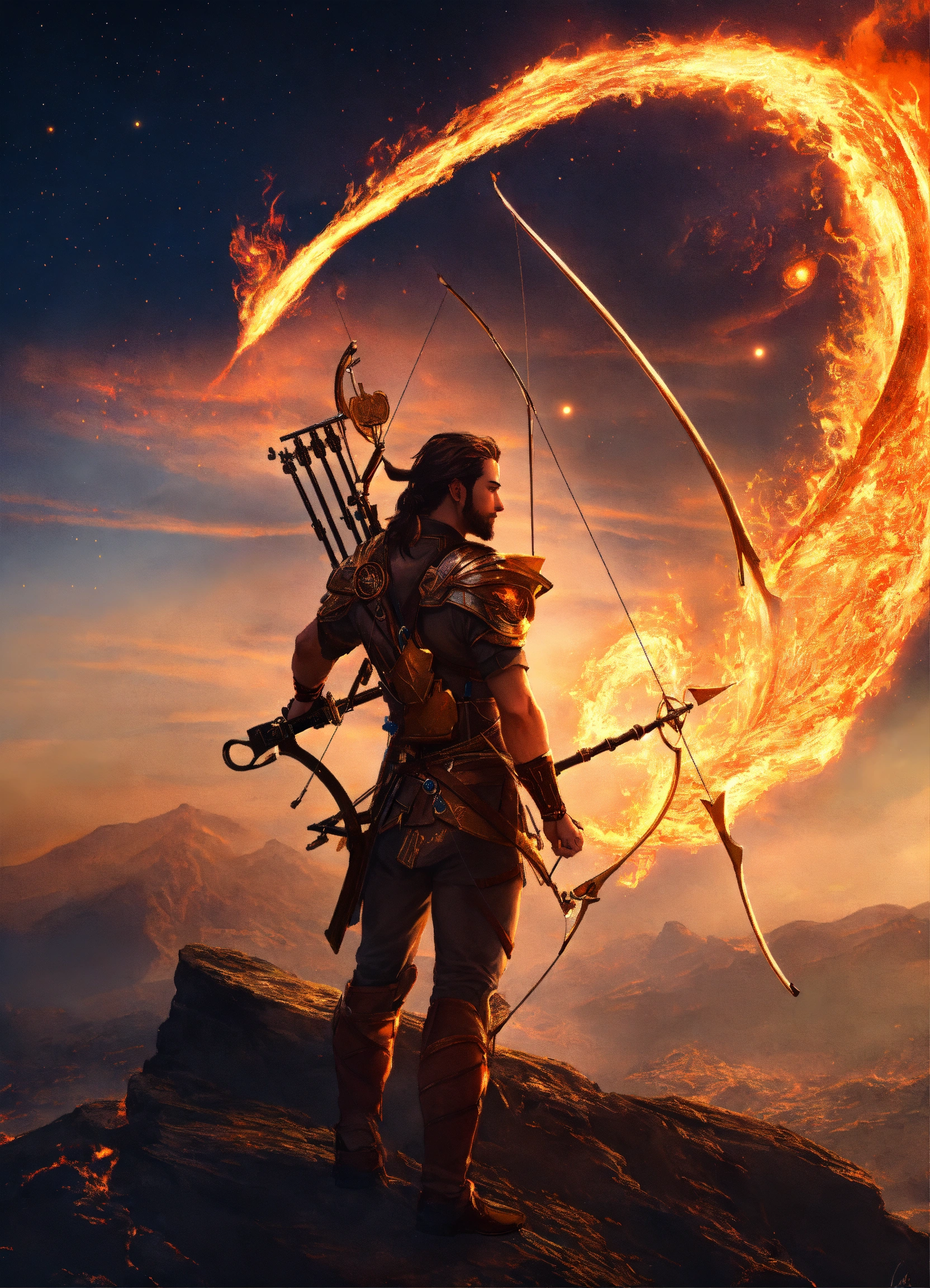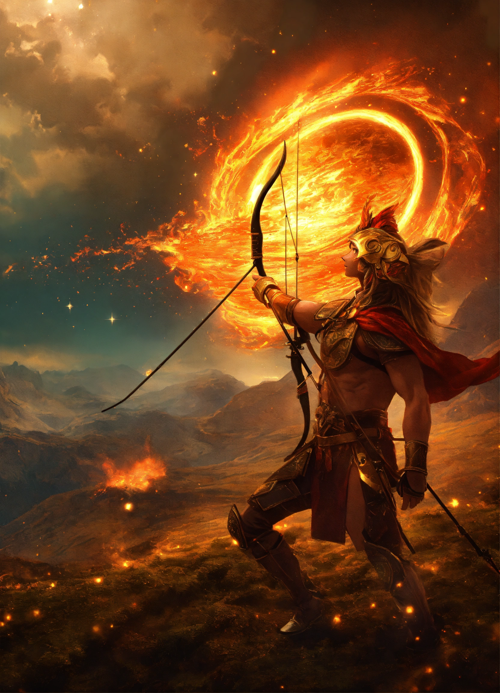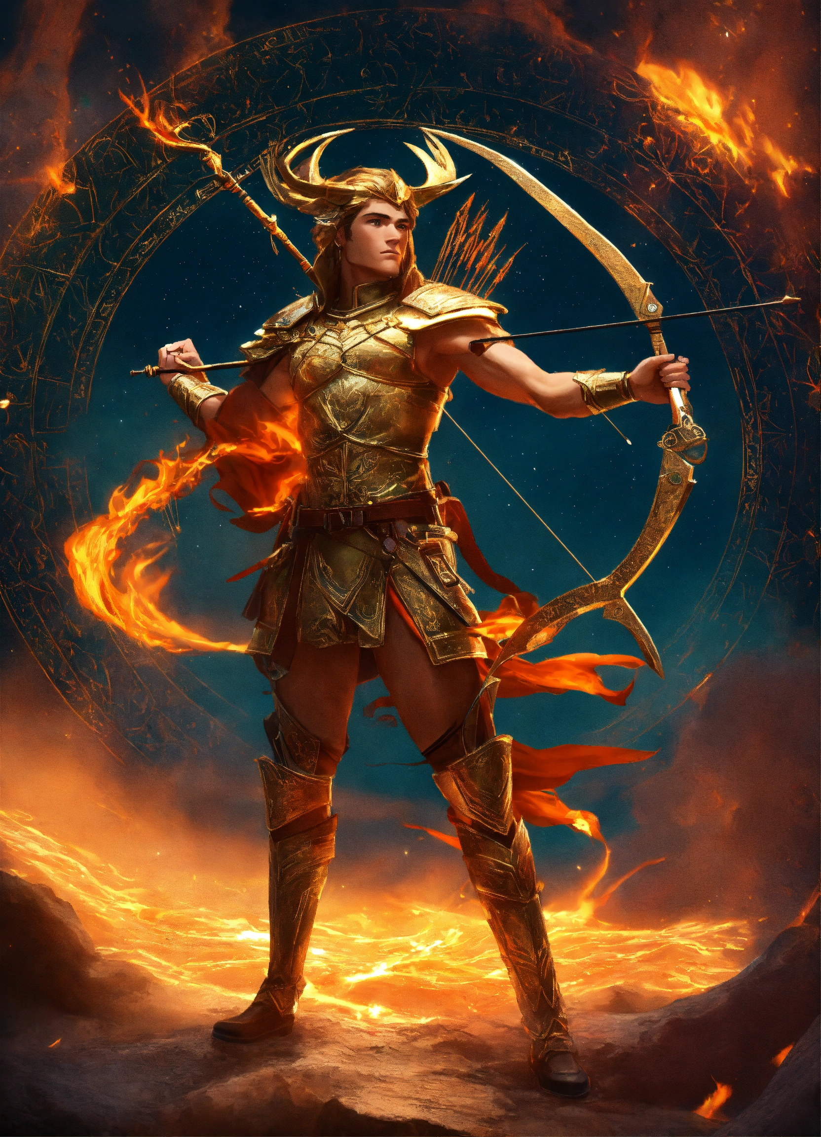 Jupiter in background sagittarius the archer with fire elemental symbol