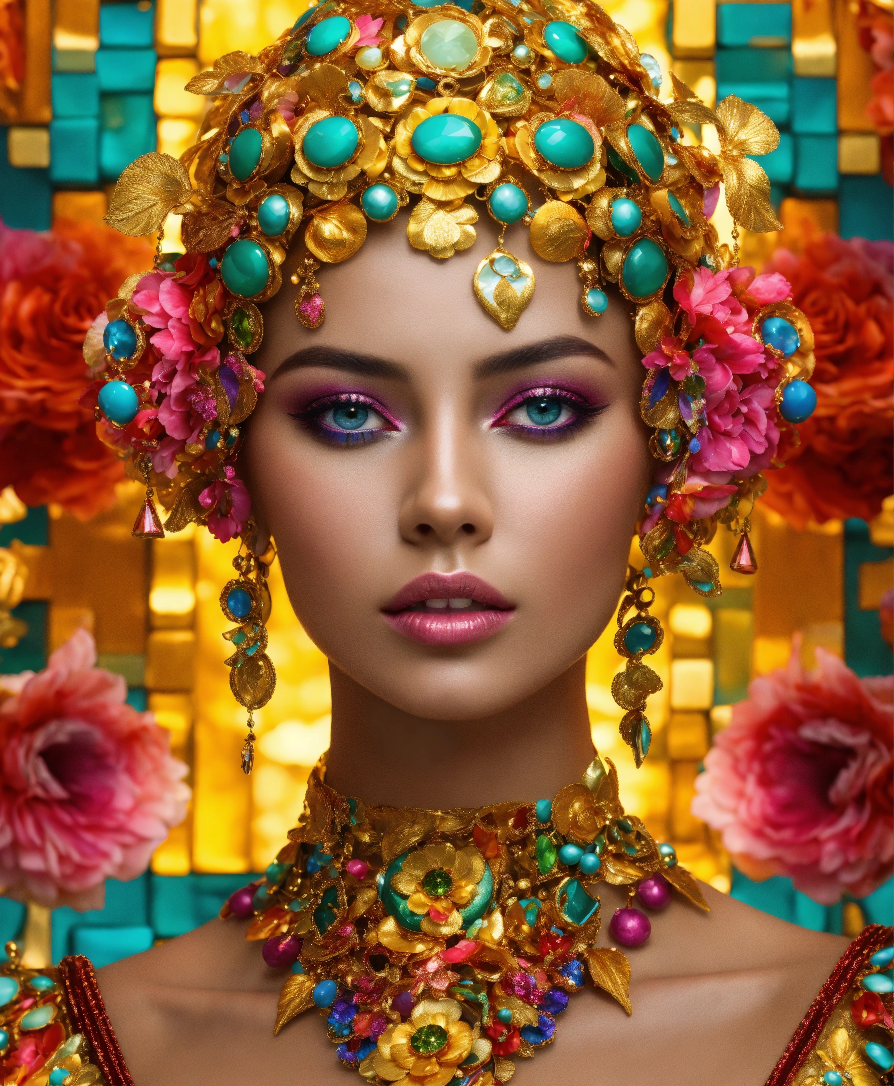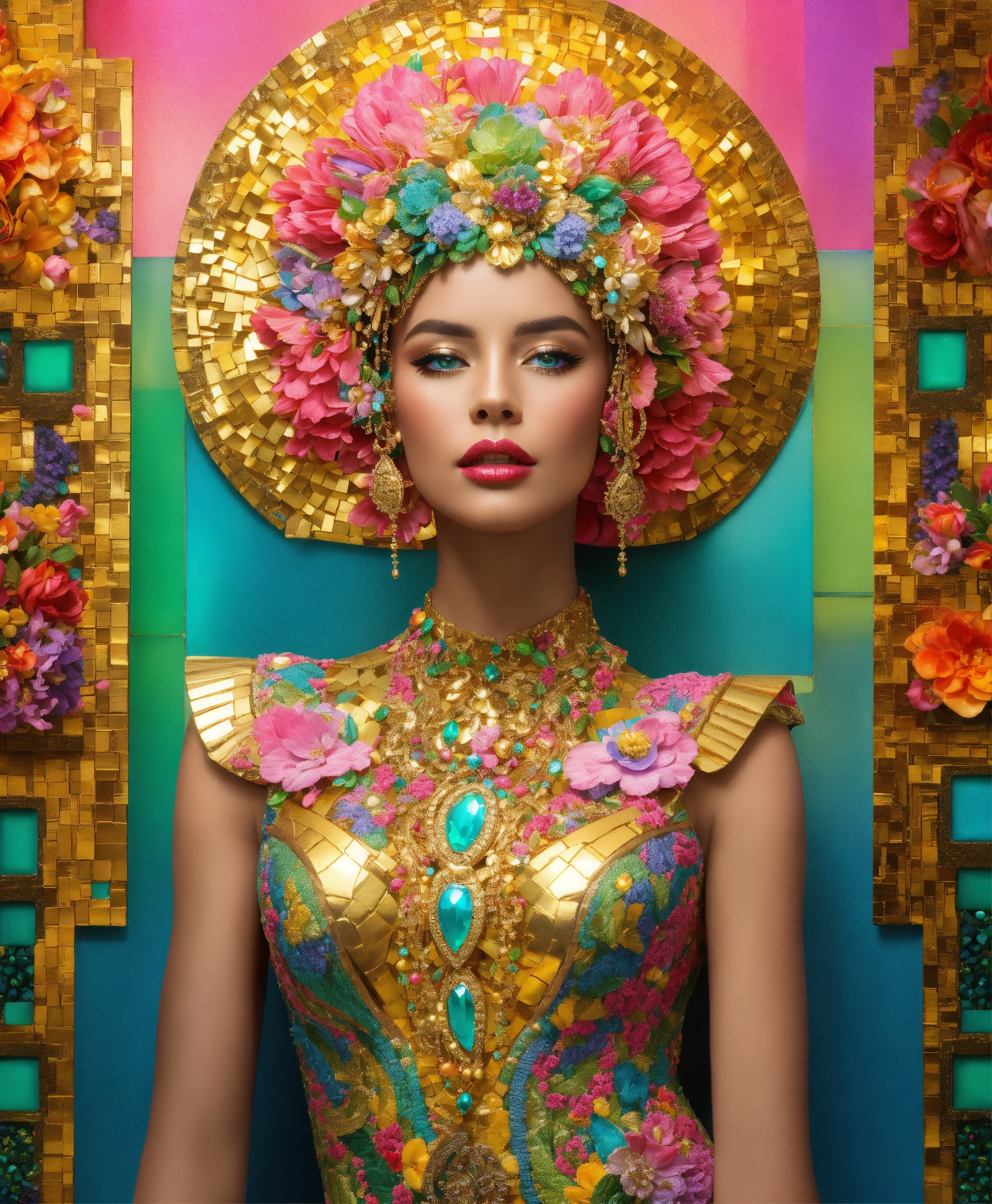 Futuristic beautiful photogenic supermodel painted glamorous beautiful colourful dreamy awesome elegant elaborate complex detailed awesome gold blue pink green orange peridot lilac yellow magenta cyan gold 9silver copper fabulous 8k intricate 8brush work vivid bright vibrant colors 3d gold trim metallic 24k gold filigree background mosaic awesome rich haute couture bambi eyes ultimate beauty sheen 8k glamorous filigree mosaic pearlized amazing hyperdetailed elegant elaborate couture elaborate hair style contrast frosty brushed matte luminous gold yellow background vibrant pink silver green detailed 8k 24k gold trim gold background asymetrical beautiful awesome superb 8k sheen 3d klimt vibrant colors large eyes gorgeous beautiful colourful delicate facial features beautiful superb 24k gold highlights 8k in focus red yellow gold pink klimt flowers gold foil 8k in focus gorgeous superb sublime awesome 8k hyperdetailed hyper-realistic 12k