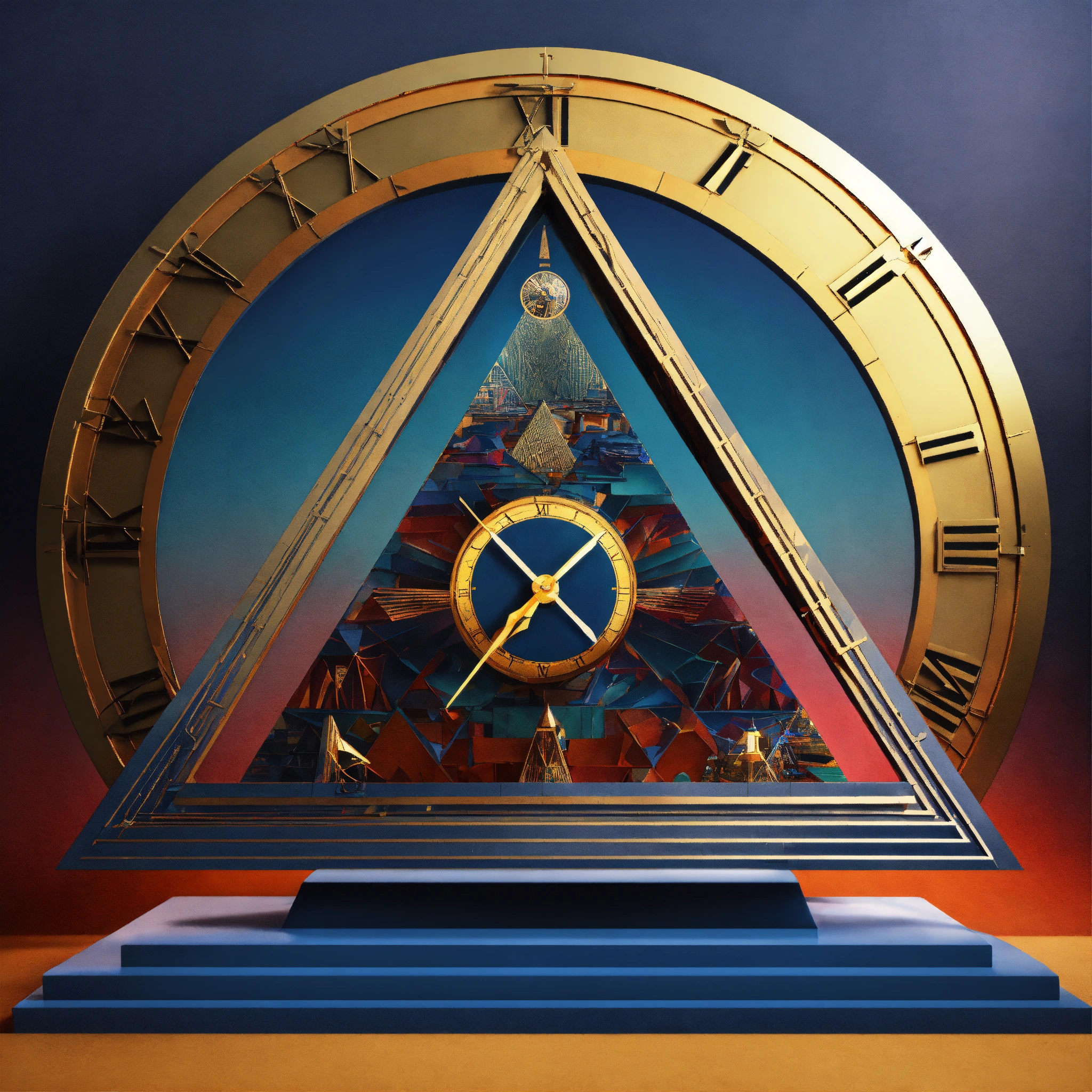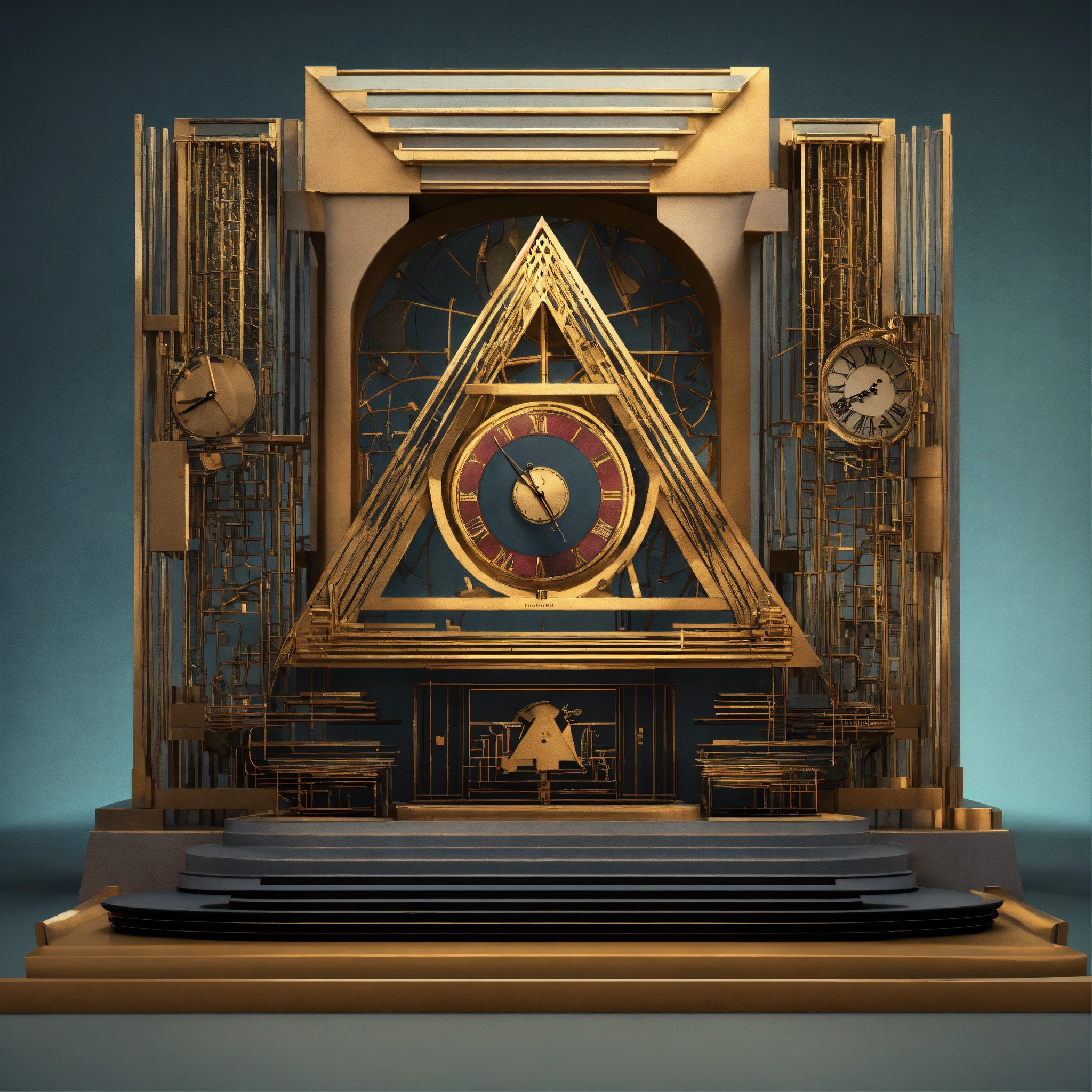 Album artwork, 3d, full hd, abstract, logo, figures, steel, dualism, forms, art nouveau, bauhaus, amapiano, clock, pyramid