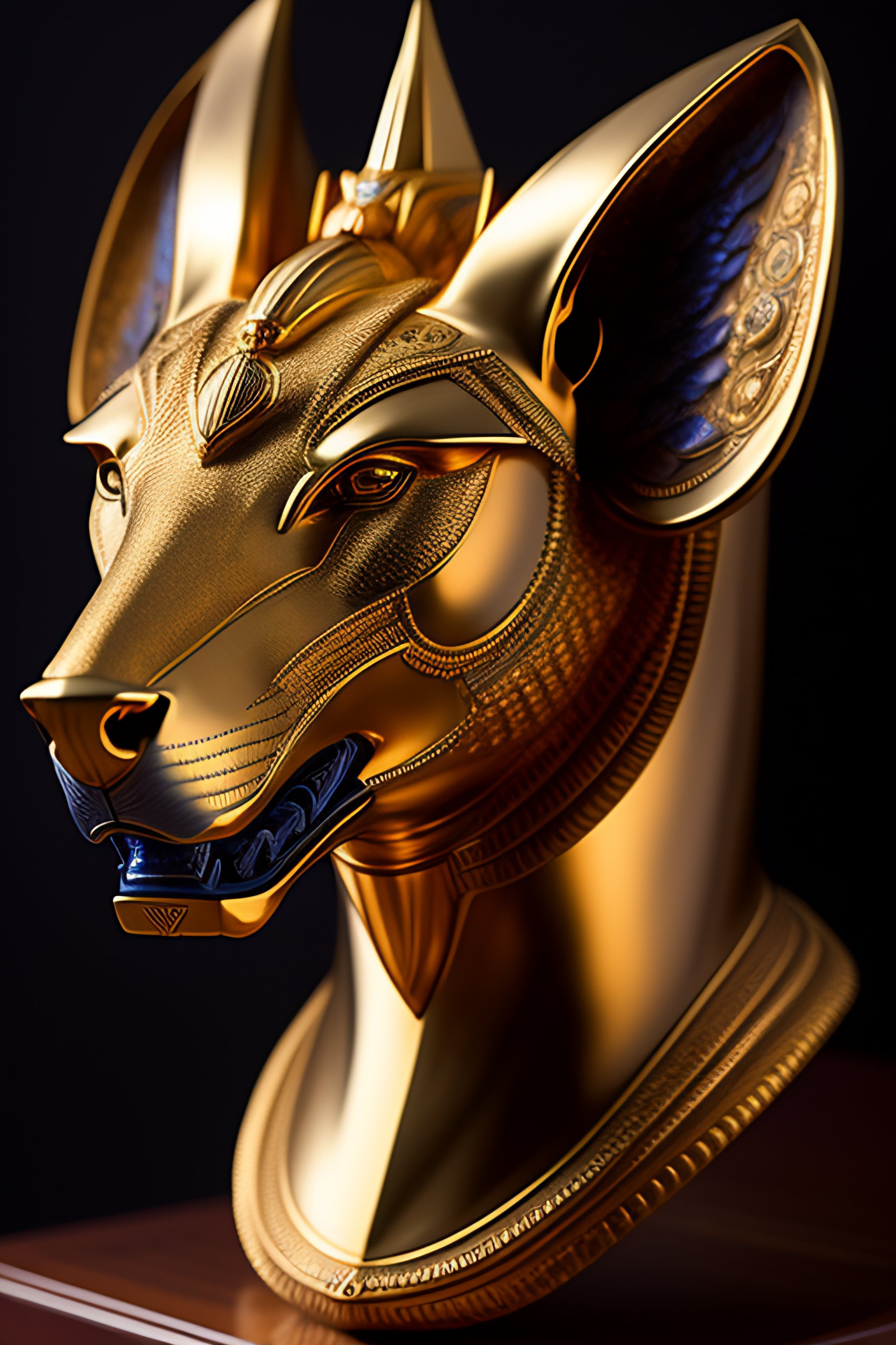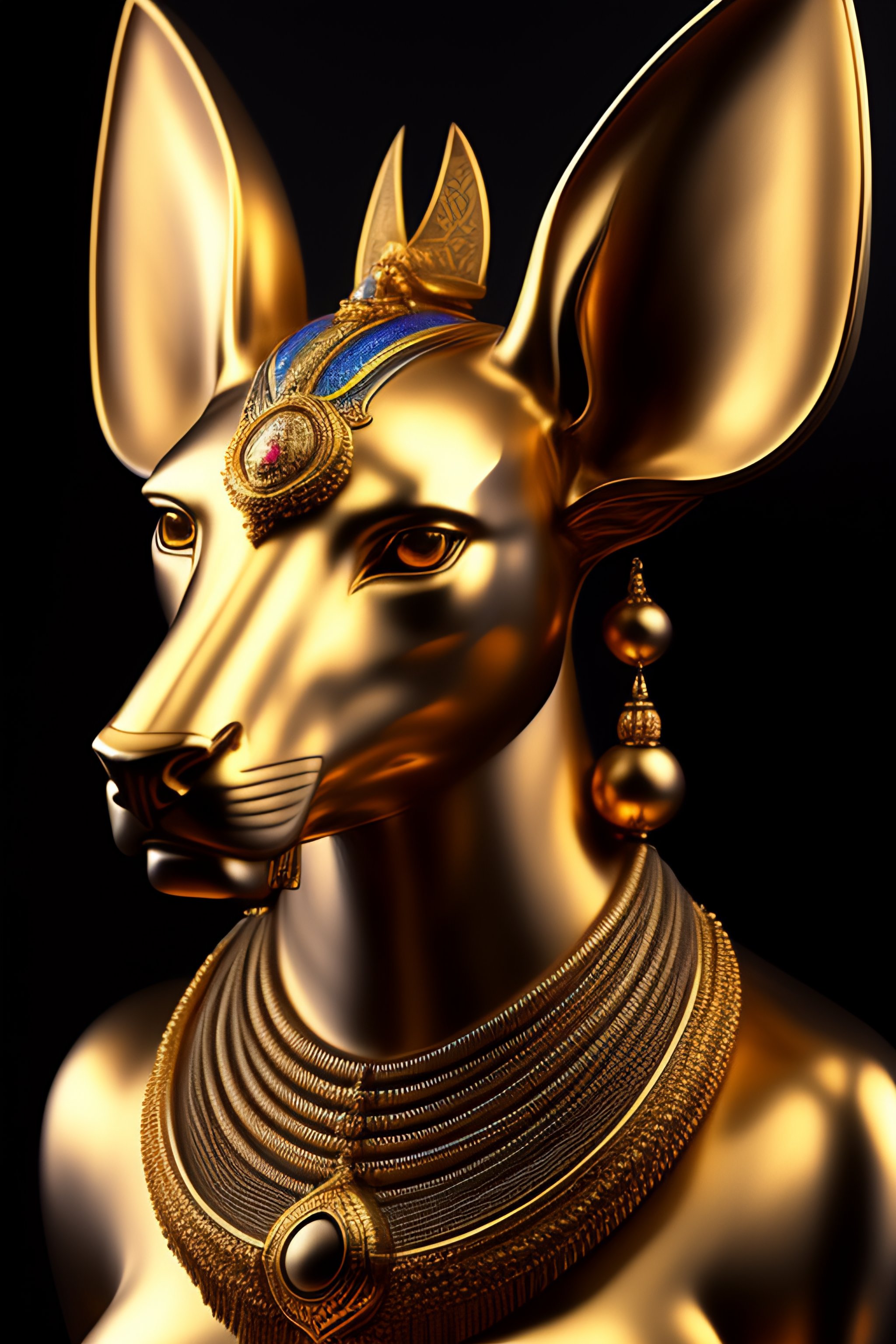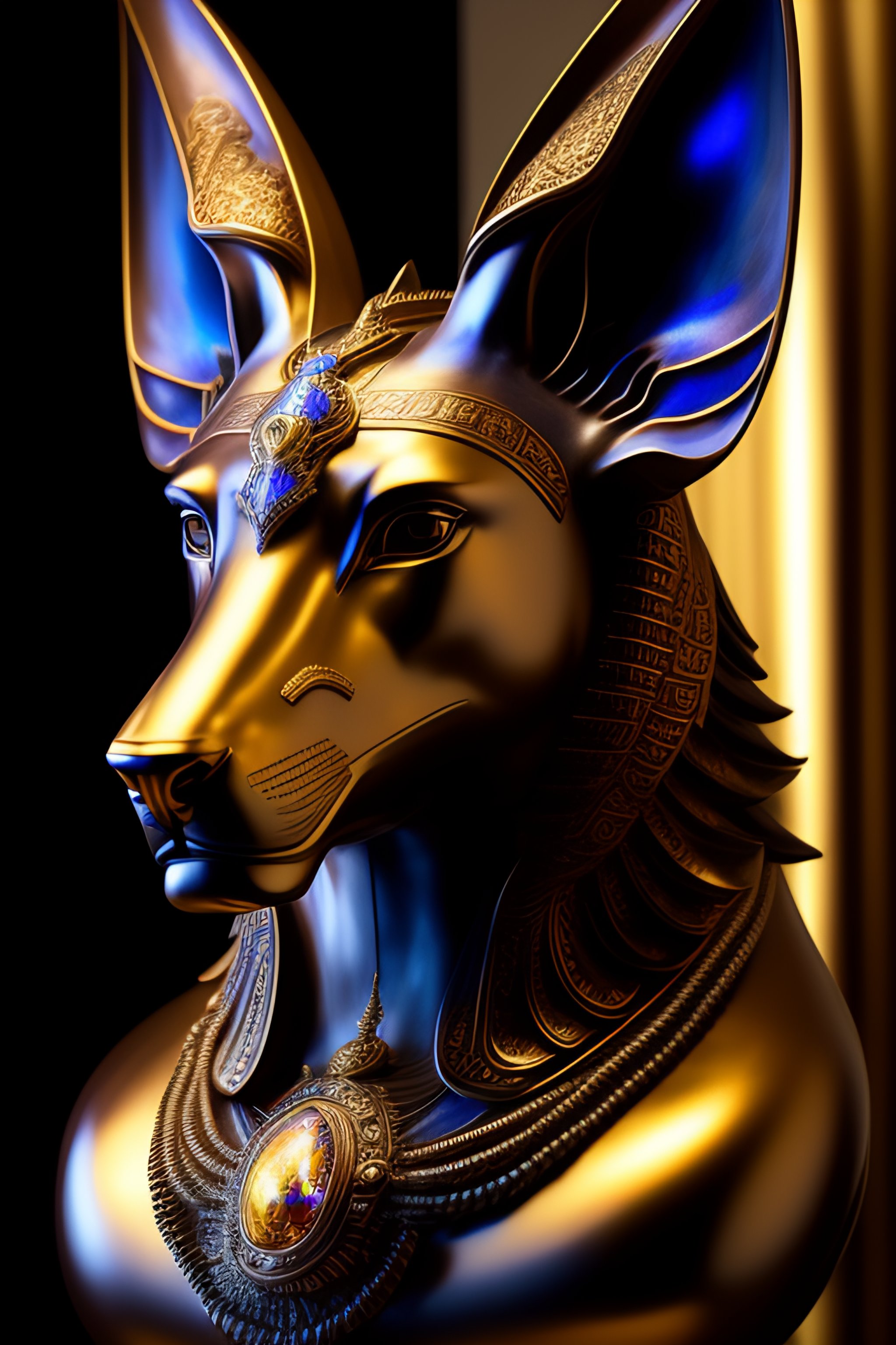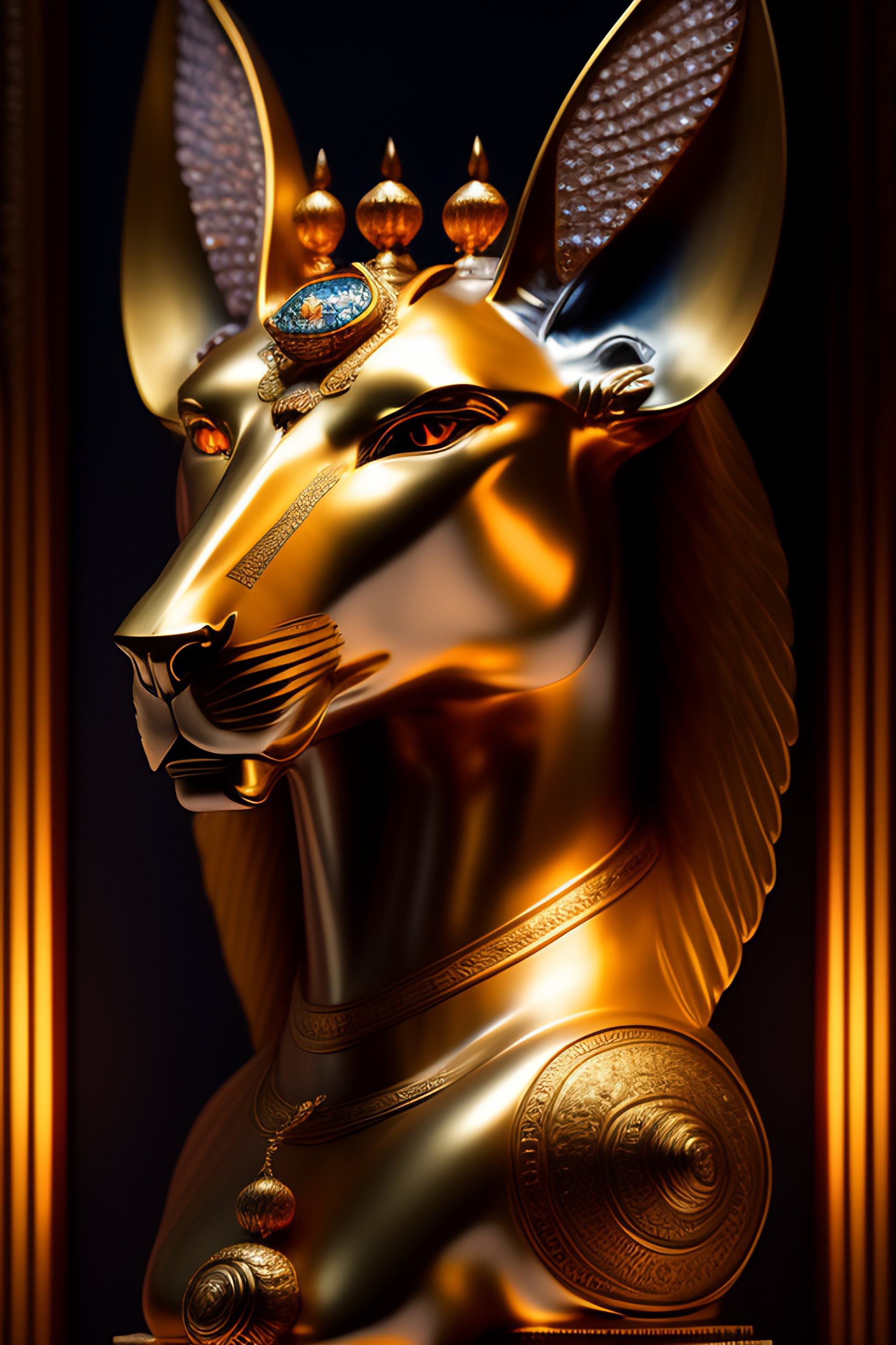Masterpiece sculpture of an ornate bejeweled mechanical robot anubis head, by annie swynnerton and diego rivera and nicholas roerich and jean delville, symbolist, dramatic lighting, god rays, elaborate geometric ornament, art brut, rich colors, smooth, sharp focus, extremely detailed, adolf wolfli and donato giancola