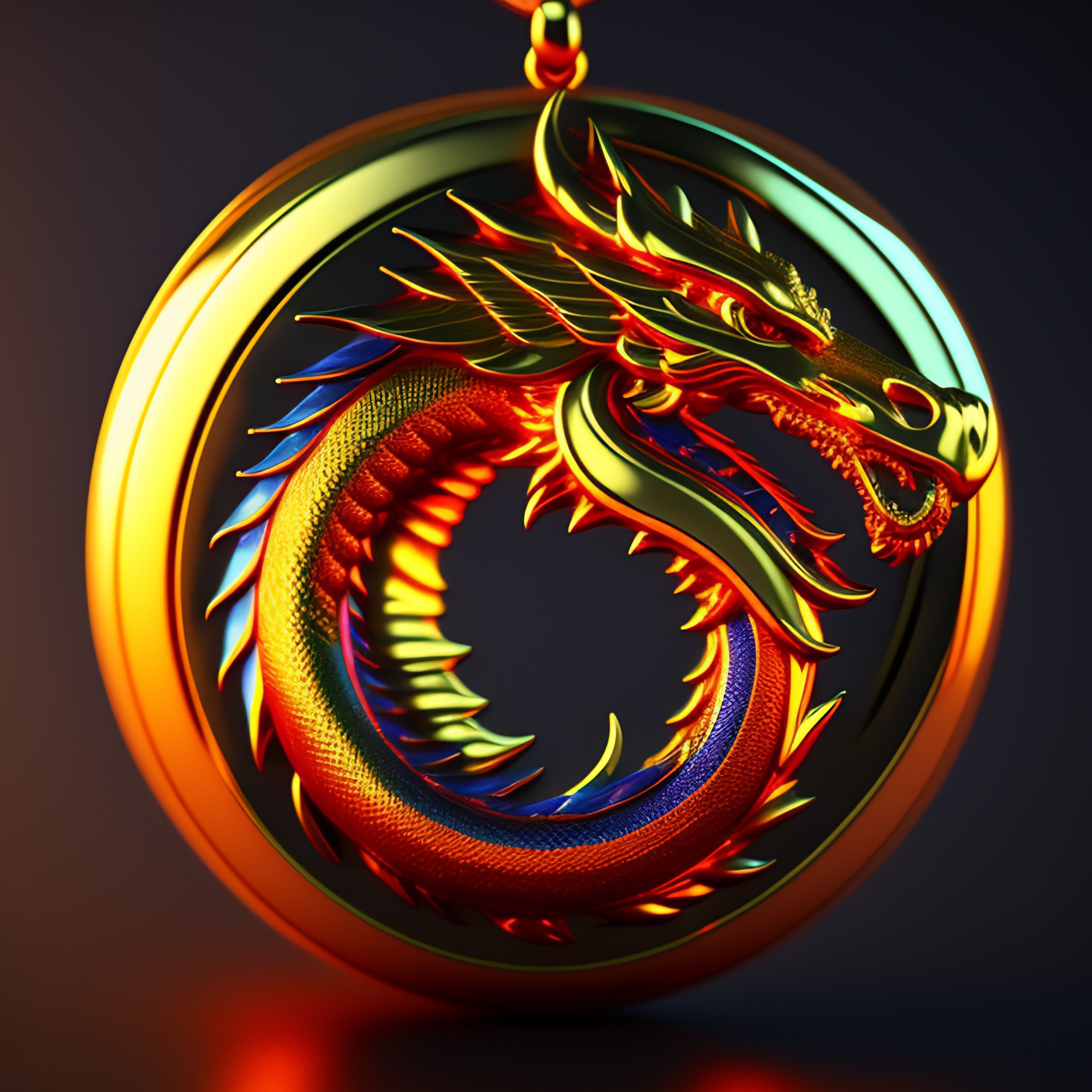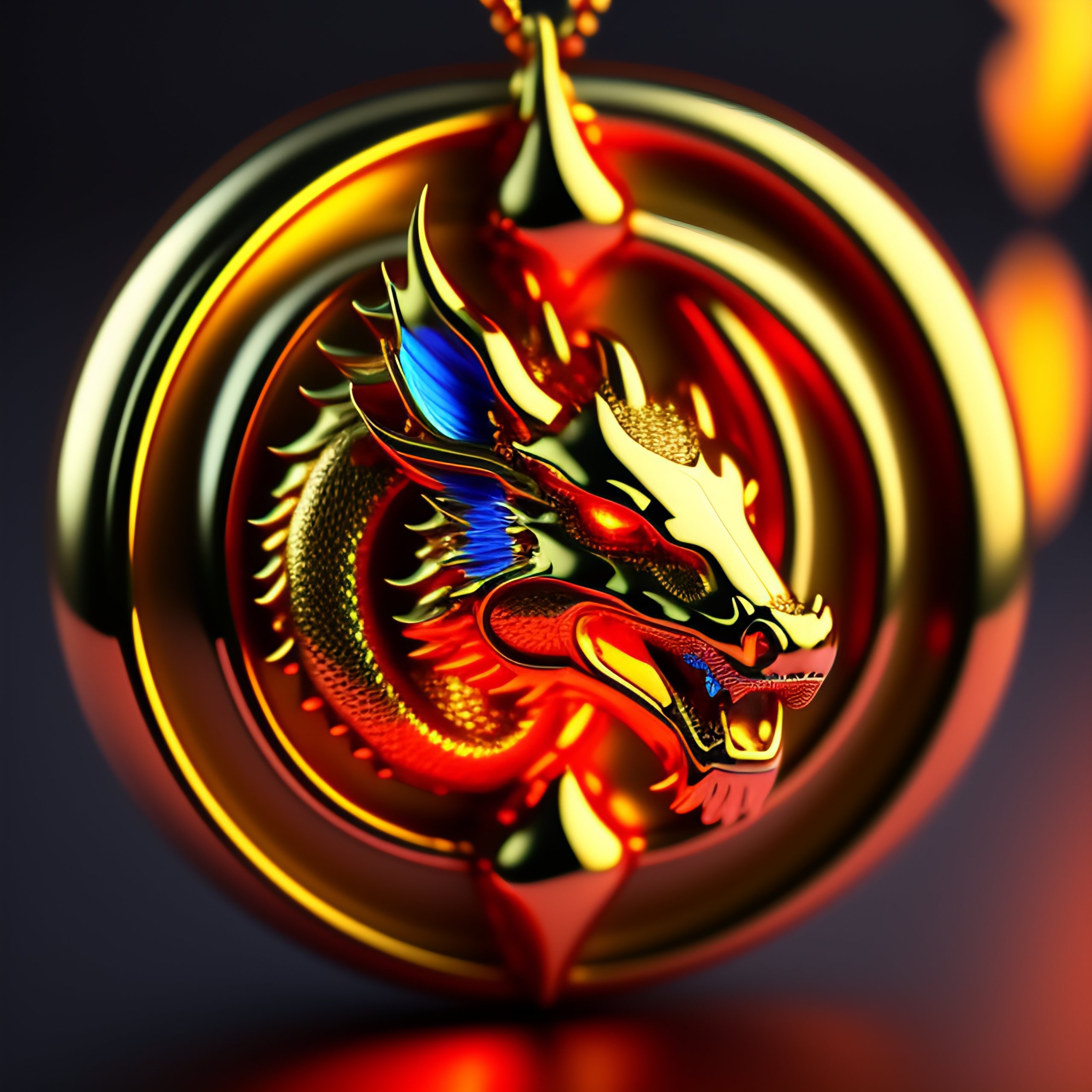 Metallic symmetrical amulet in yellow red and blue colors of ying and yong fire dragon and water dragon. volumetric lightning, octane render, 4 k, hd, realistic reflections, extremely high detailed, soft lightning, trending on artstation, masterpiece, high resolution, bronze, gold, soft lightning