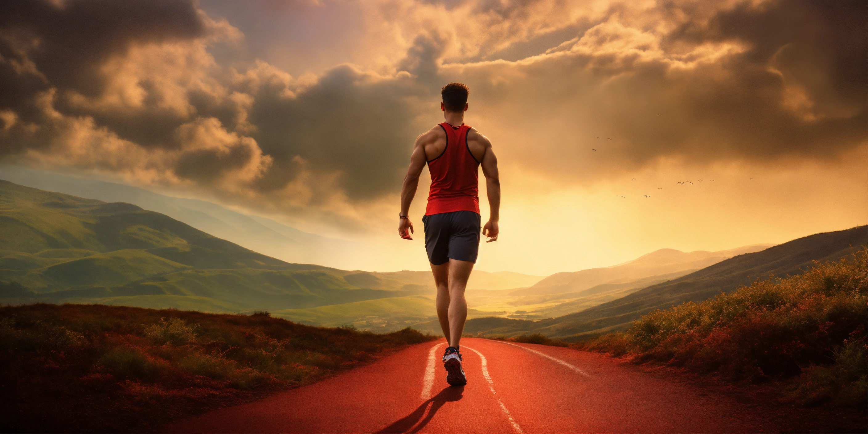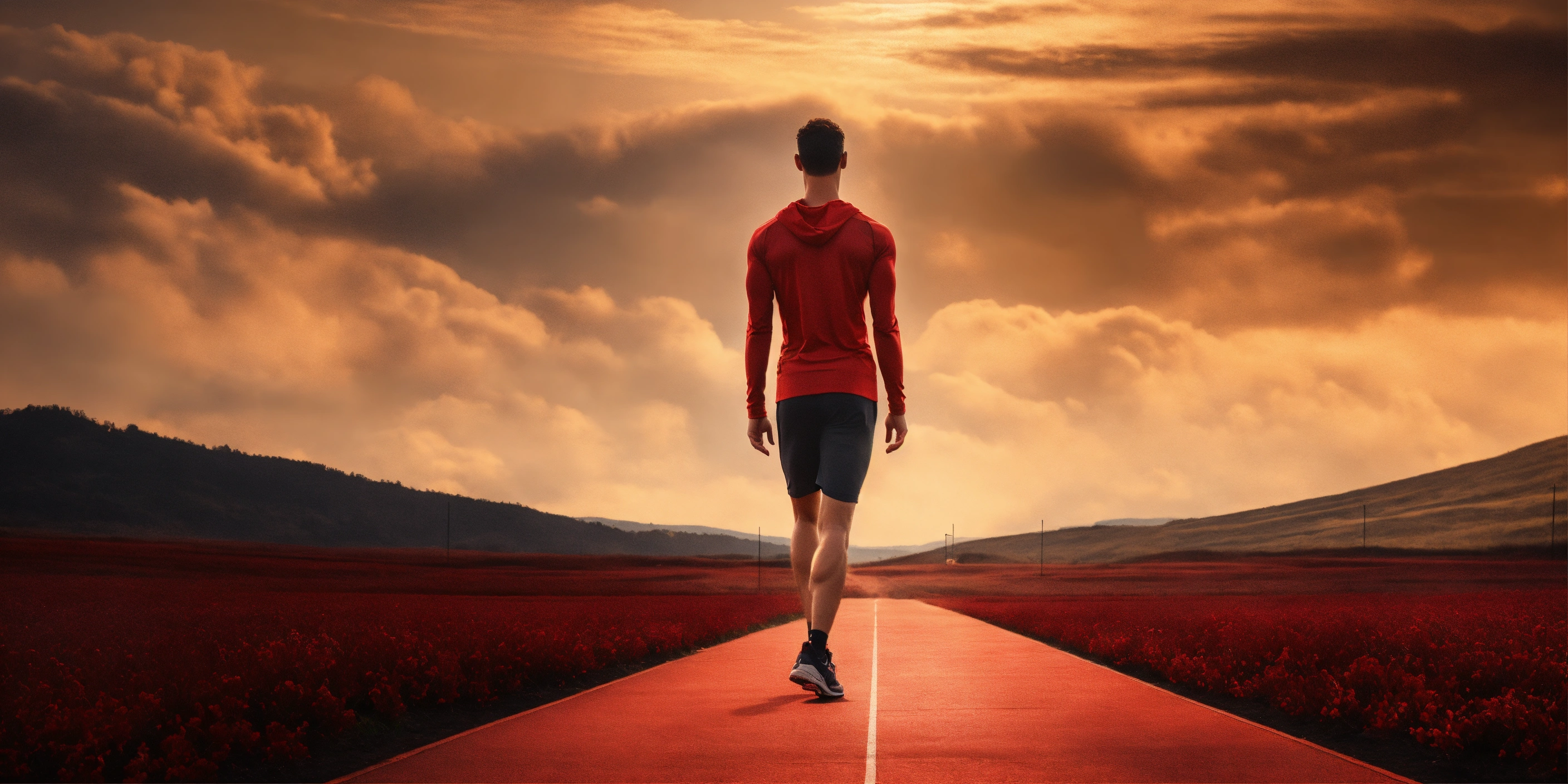 Your life, your rules, your transformation.' illustrate a person who exudes confidence and mental strength, dressed elegantly for a workout, against a minimalistic backdrop with warm tones that harmonize beautifully with deep, rich shades of dark red and grays. the image should convey the idea of cultivating a positive mentality, breaking through mental barriers, and achieving a comprehensive and lasting transformation, highlighting both physical and mental well-being.