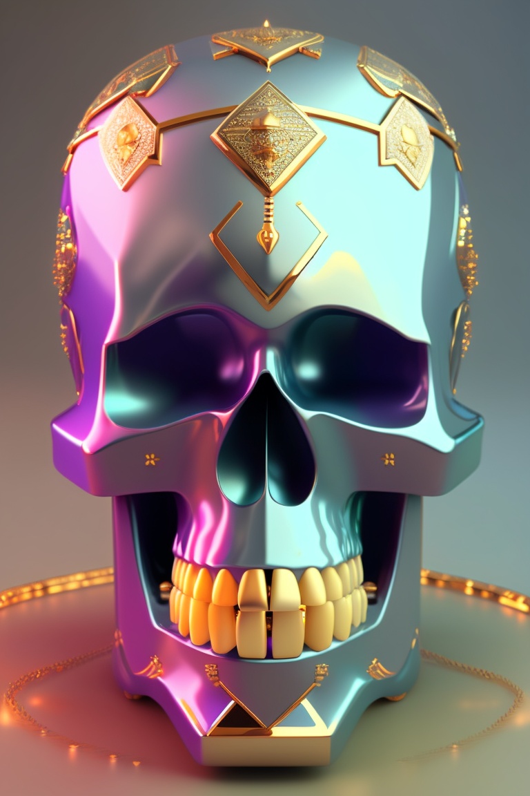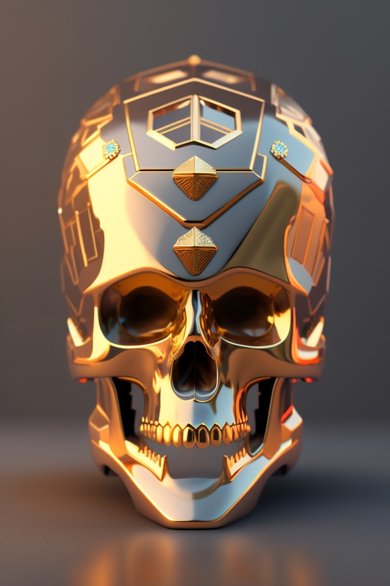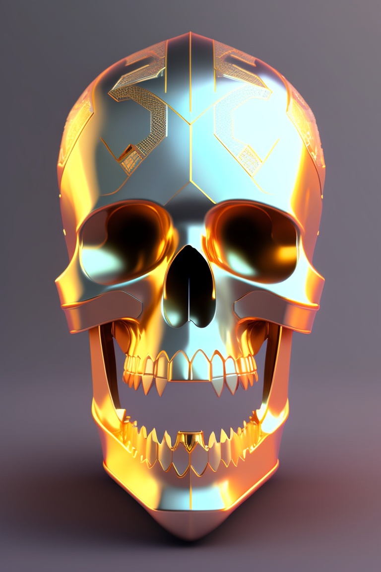 Robot head, skeleton, robo skull, skull, nft, runes, skull patterns, cracked skull like nft, ultra quality, nft quality, skull teeth, skeleton teeth, art, accurate, perfect nft, skull with gold teeth, skull with patterns