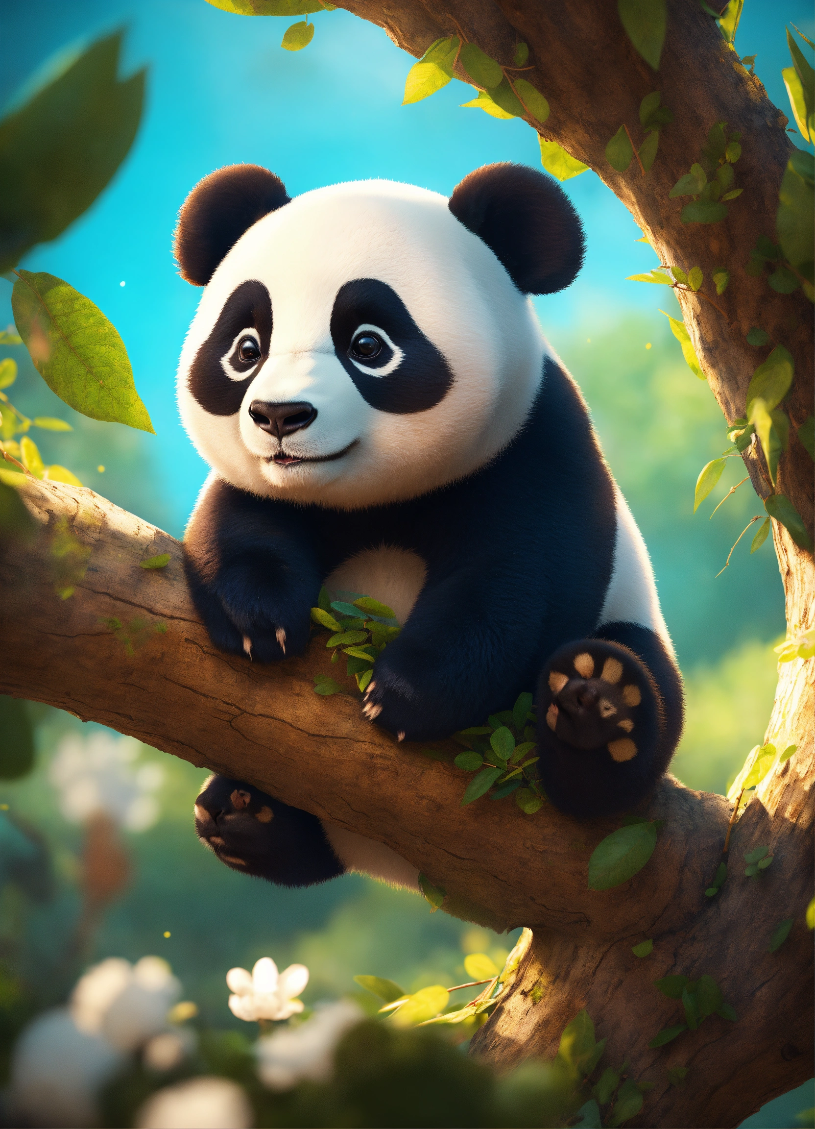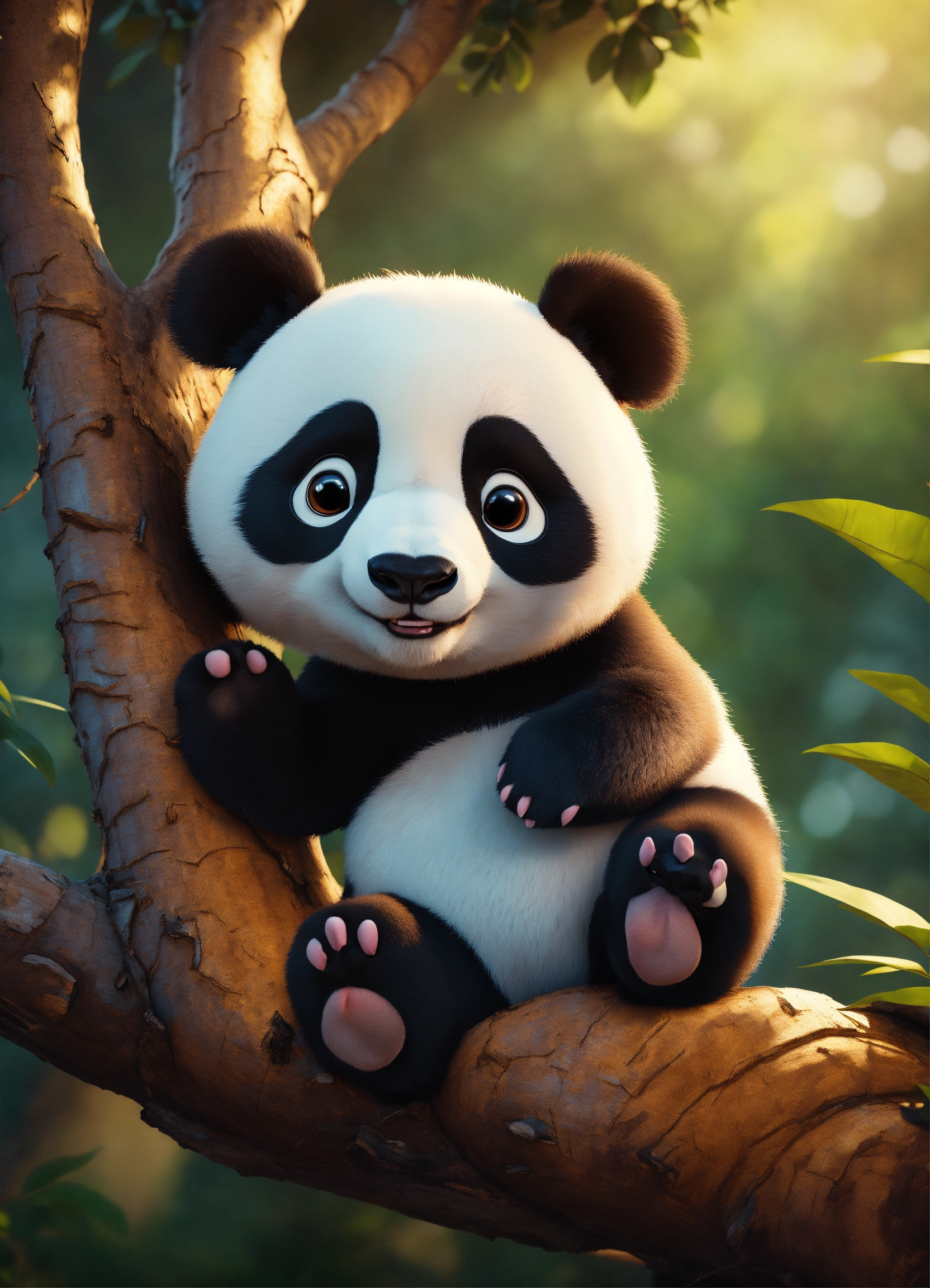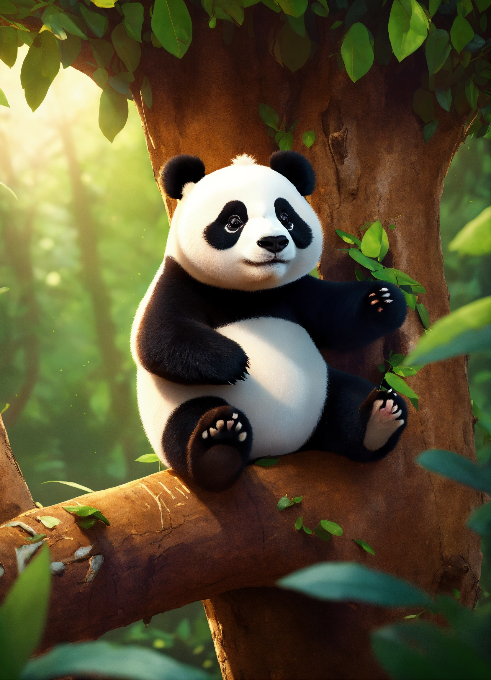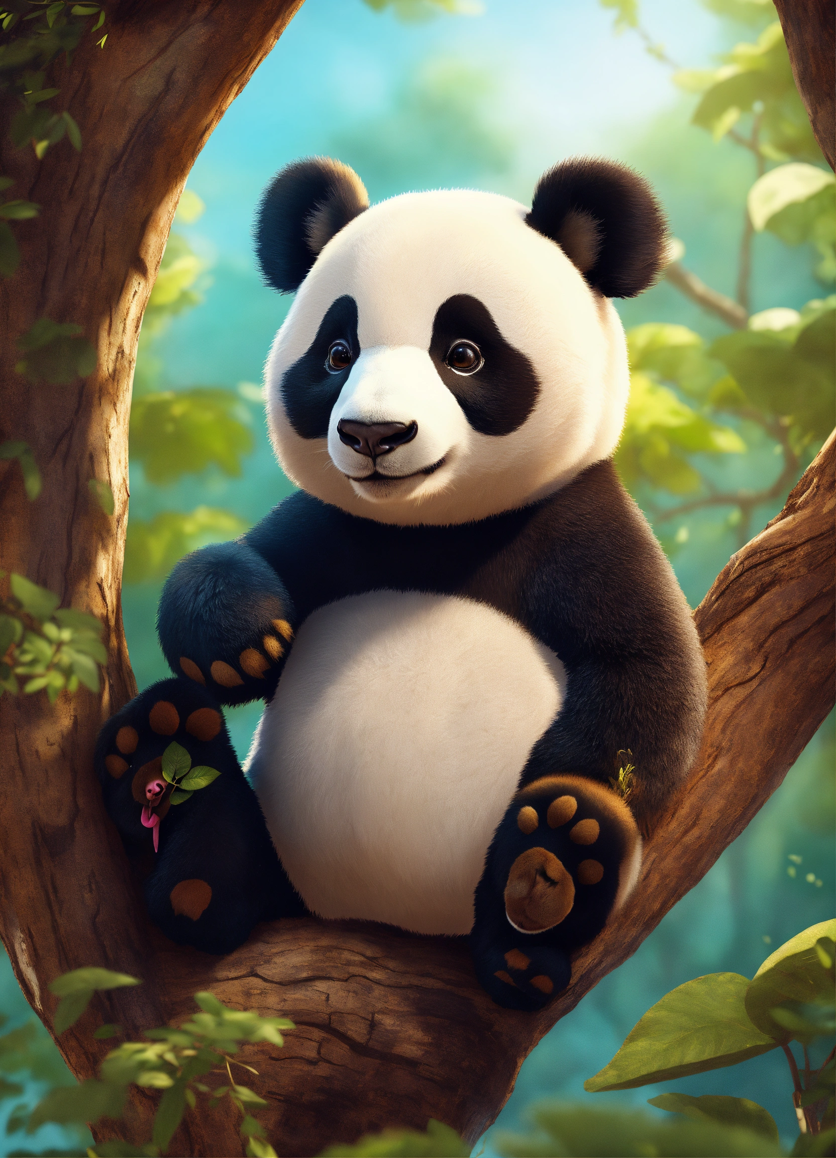 A adorable cartoon panda in a tree, diego gisbert llorens, storybook illustration, a storybook illustration, fantasy, 8k unreal engine render