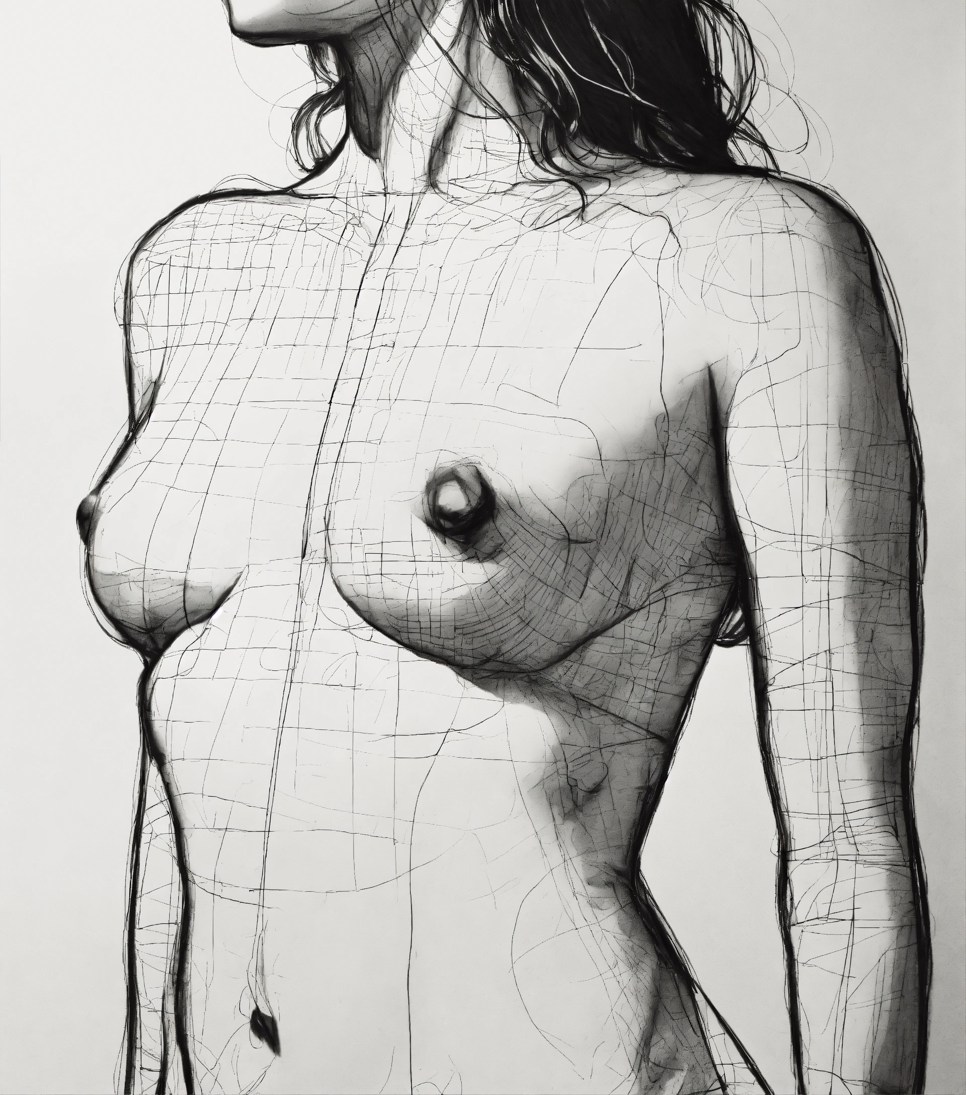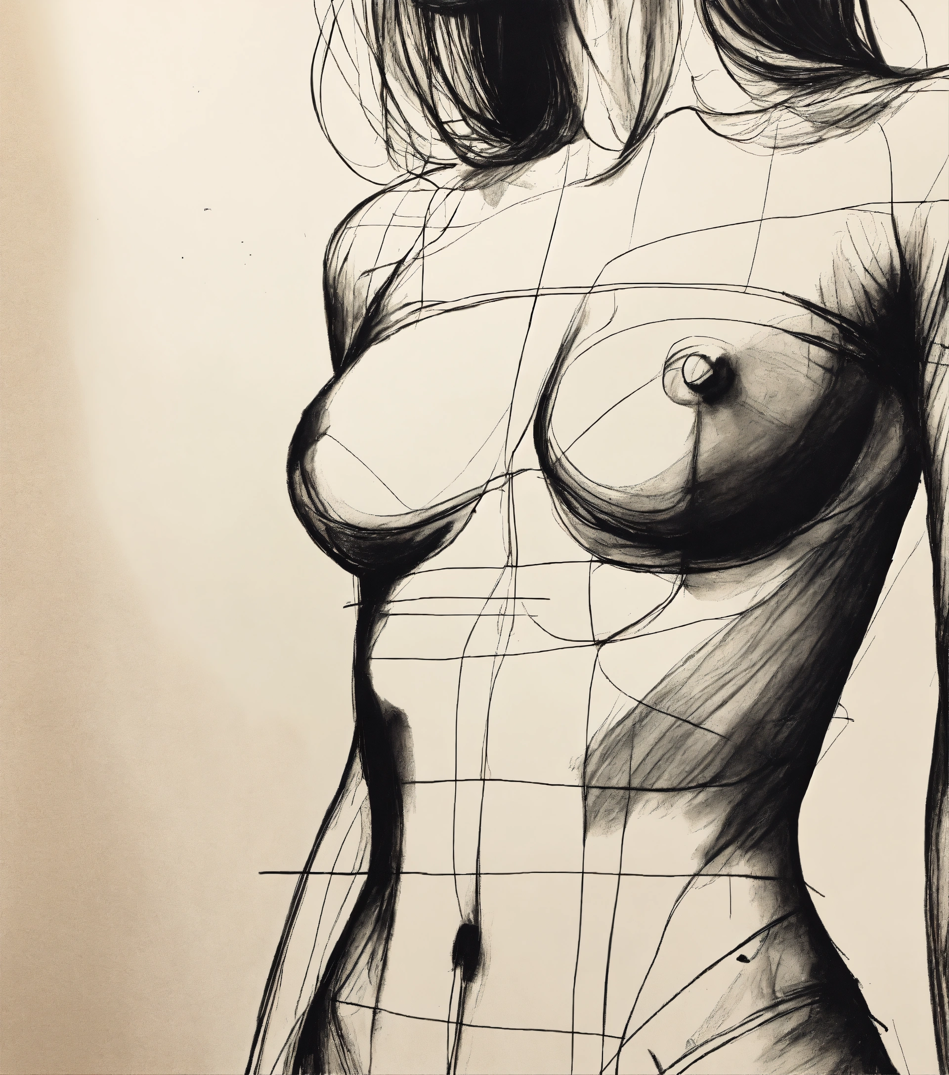 A line drawing of a woman's torso, a drawing by penelope beaton, behance, figurative art, outlined art, ultrafine detail, minimalist