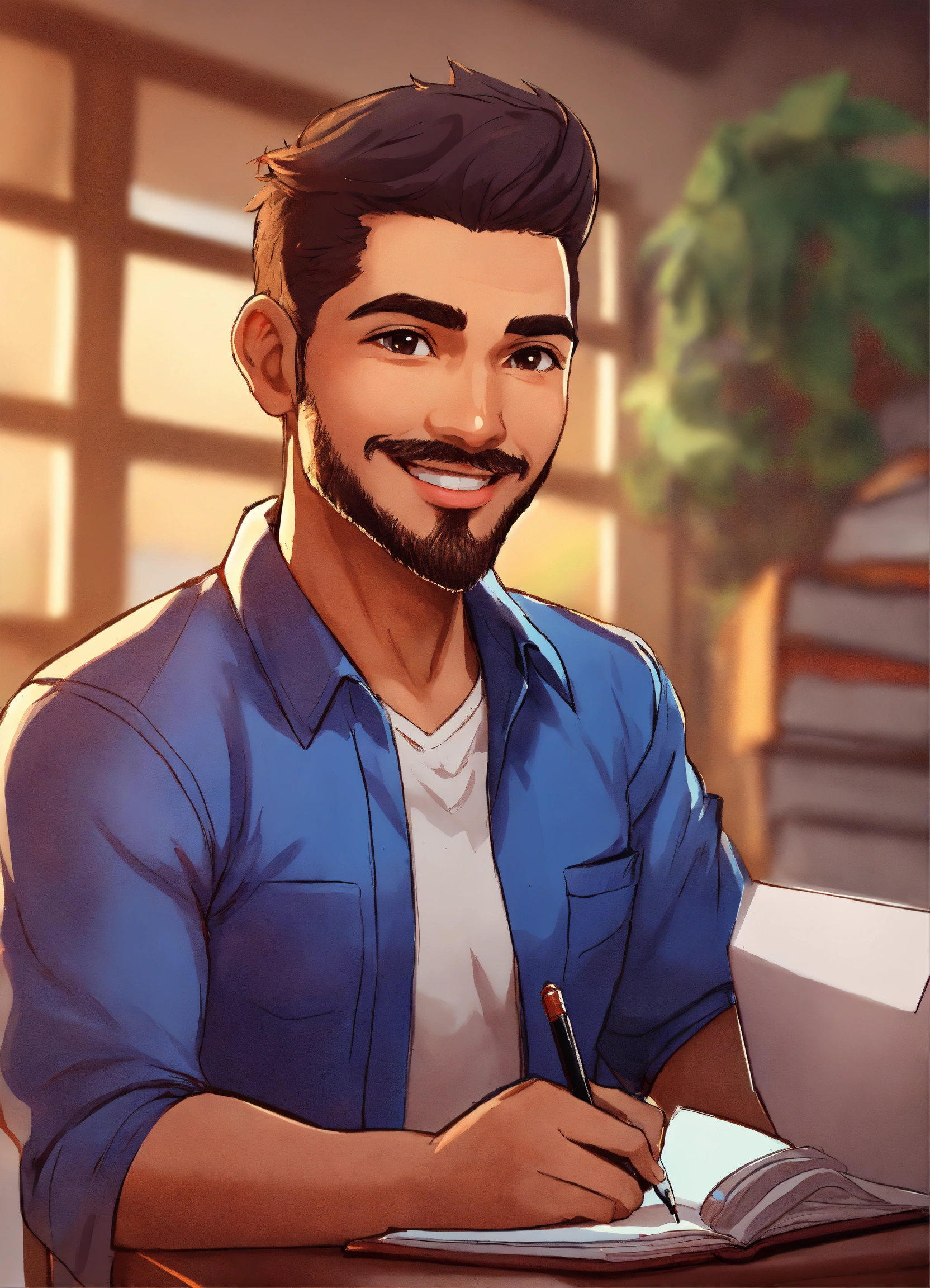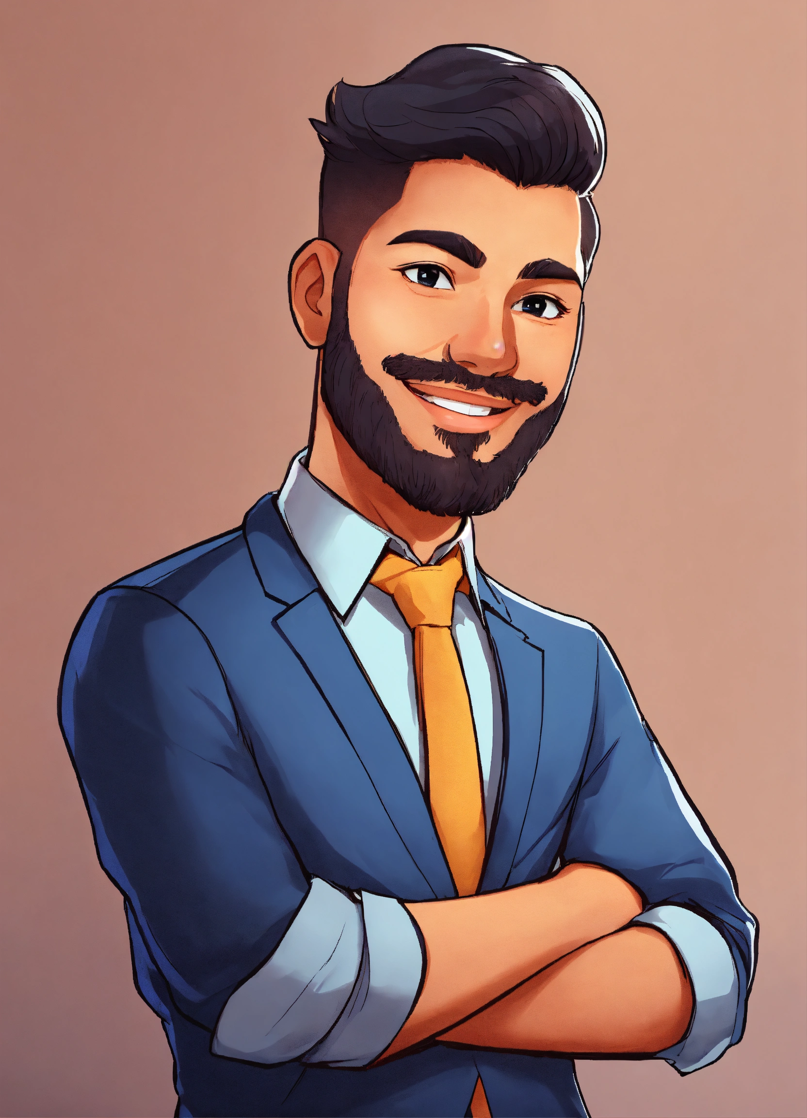 Draw a cartoon character who is a male adult trainer, who embodies liveliness, enthusiasm and the ability to maintain learners' attention by engaging them actively. this character should inspire energy and positivity to make learning enjoyable and engaging.