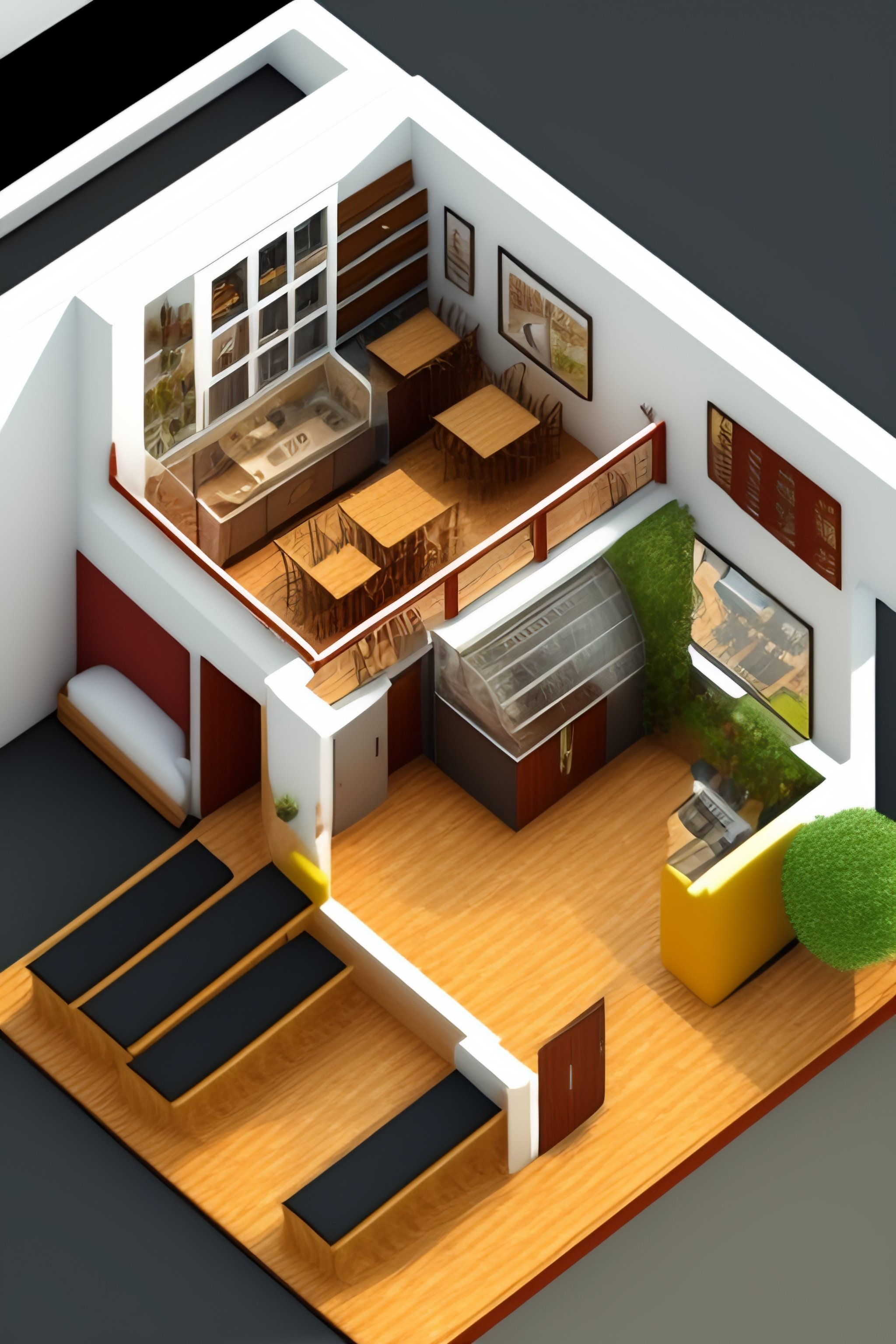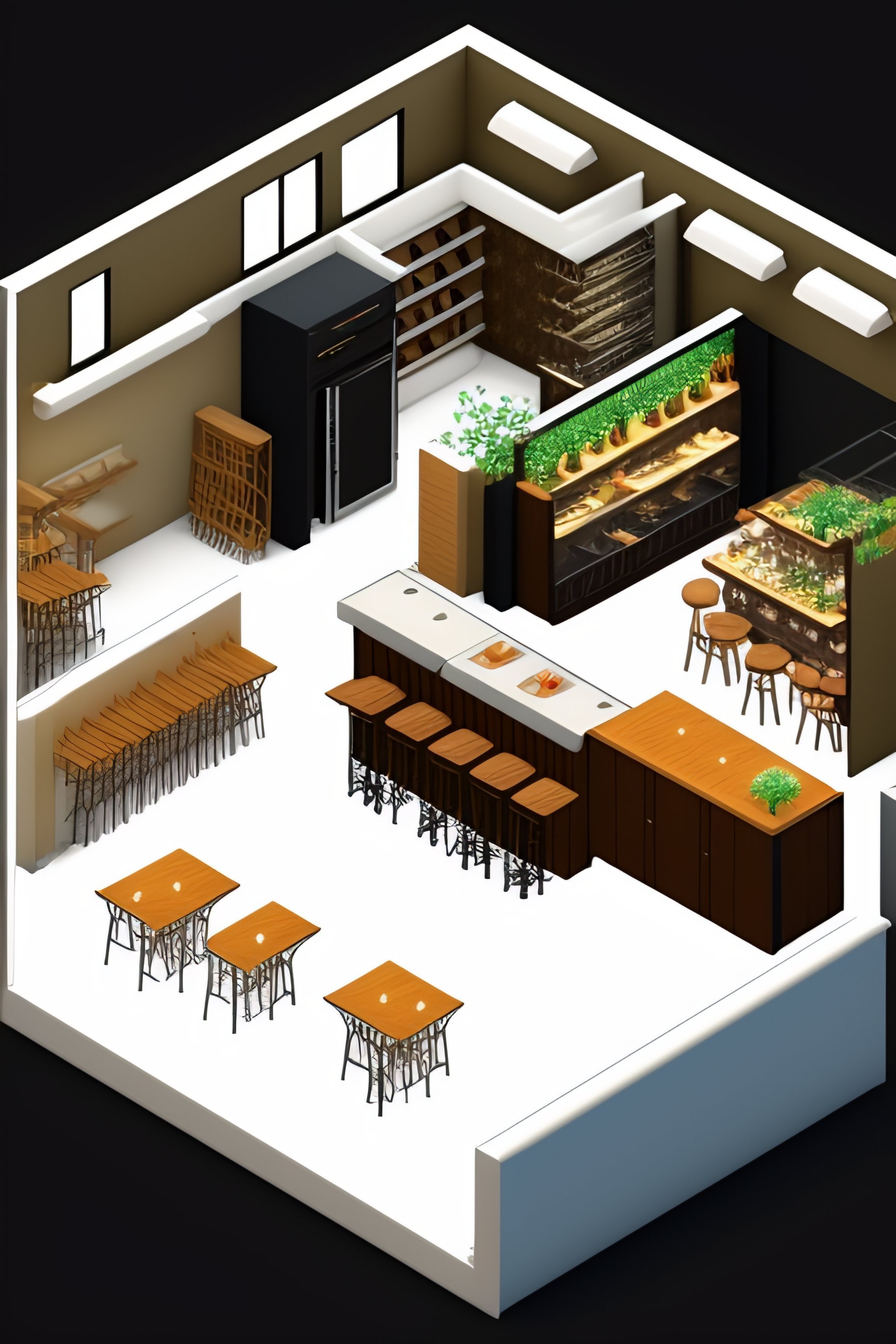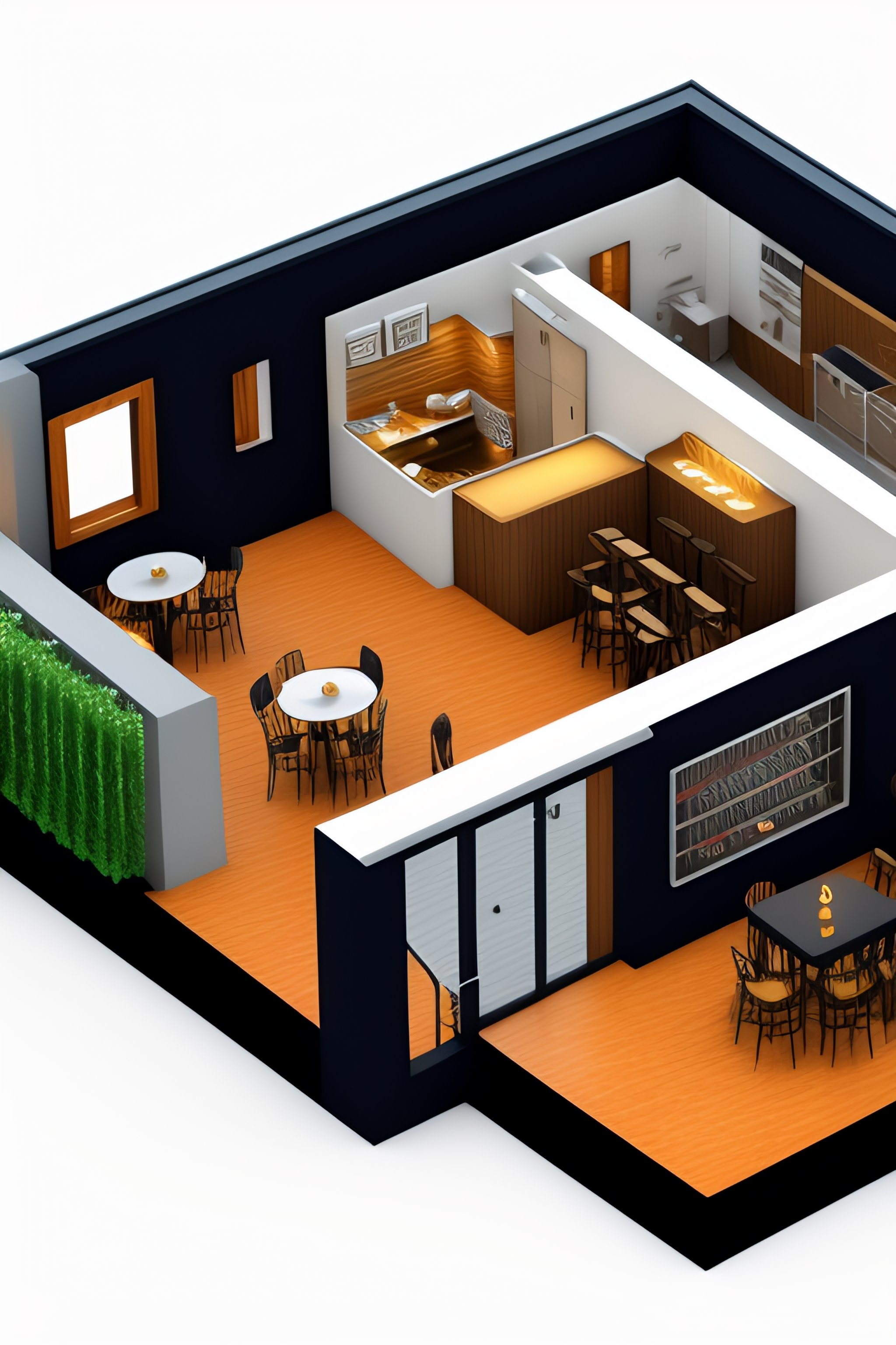 Generate 2d drawings and shop drawings for a cafe, including floor plans, elevations, and sections as needed. dimensions are 17m x 8 m