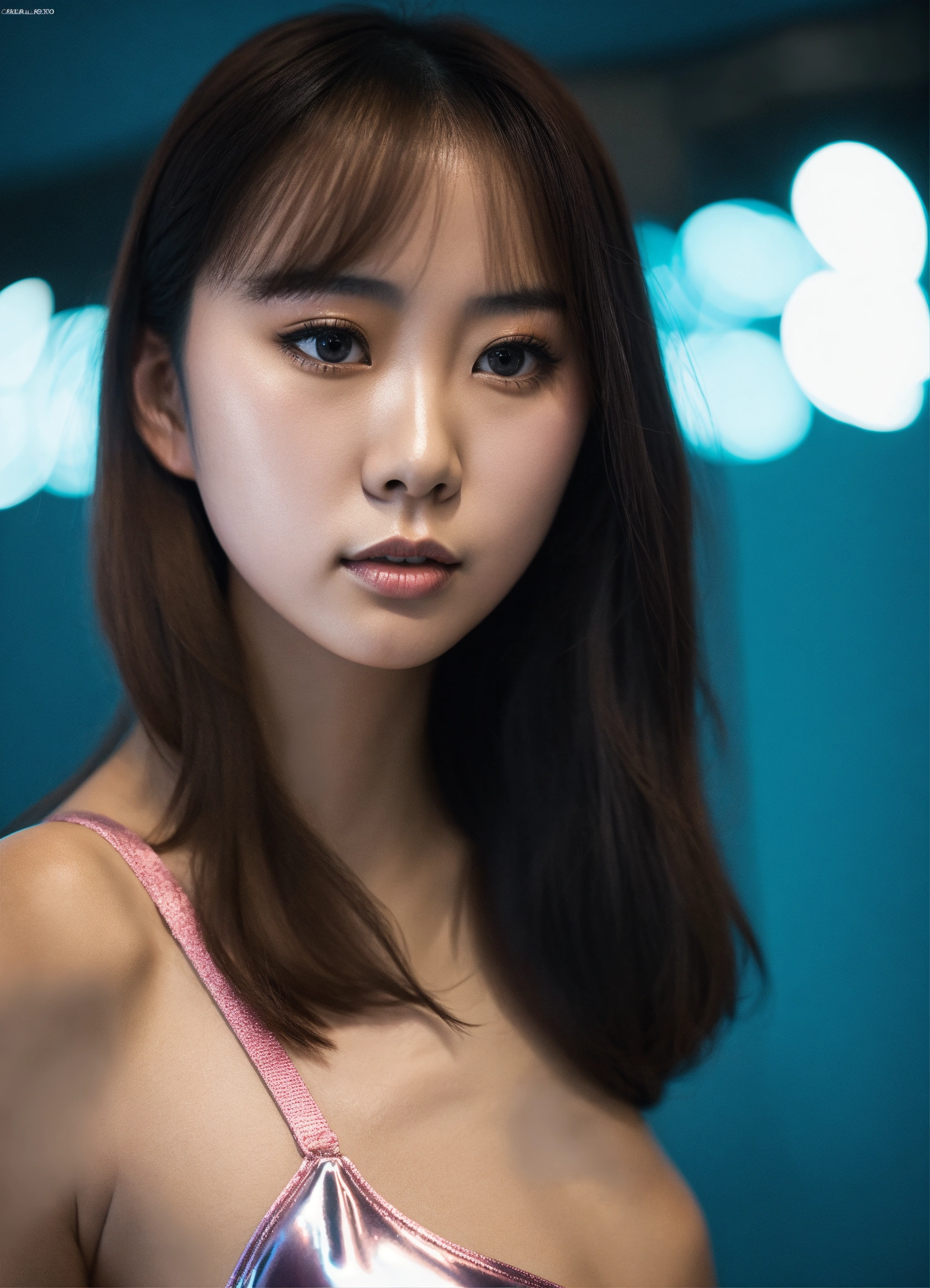 Slim japanese woman in glossy leotard