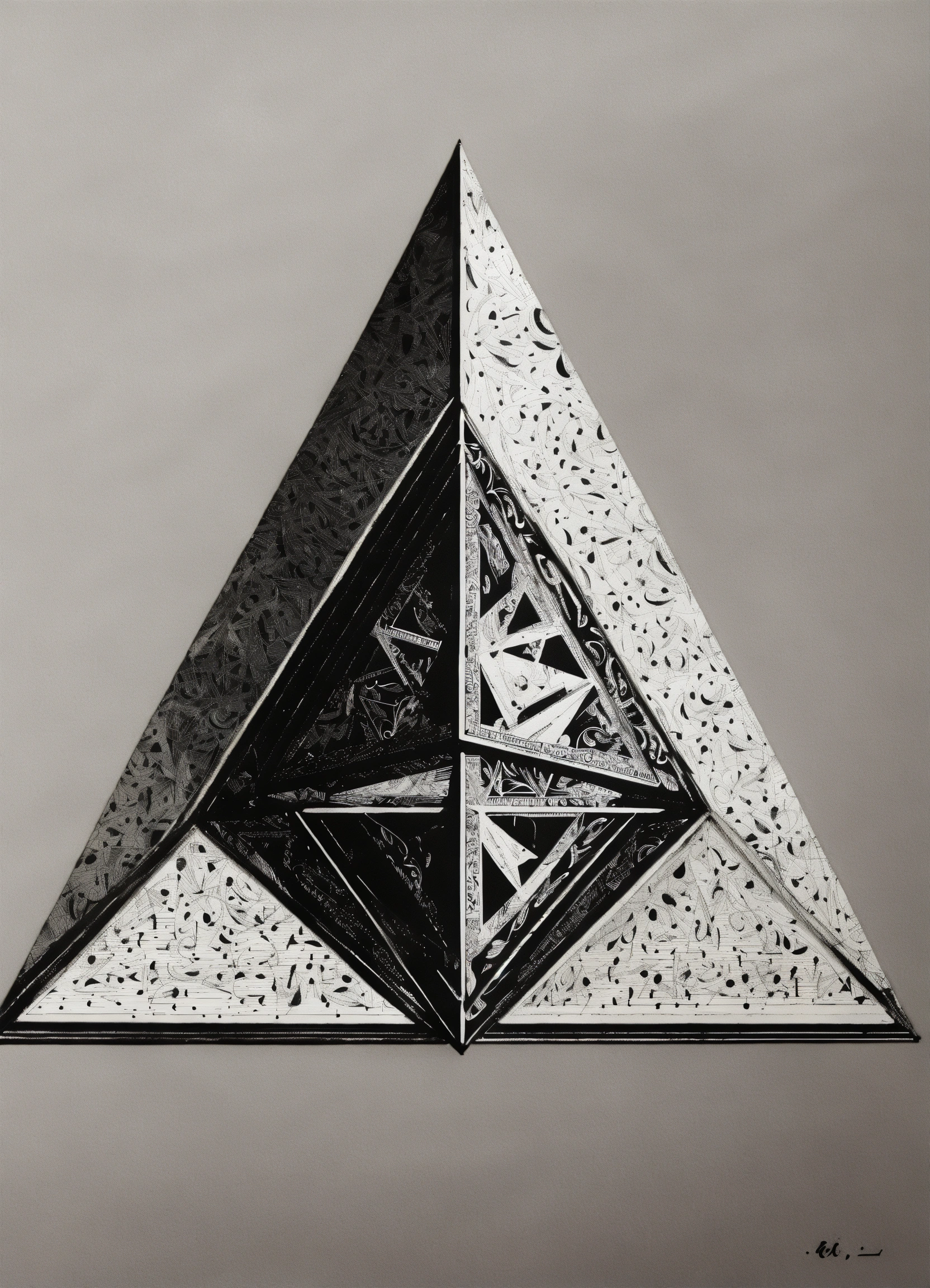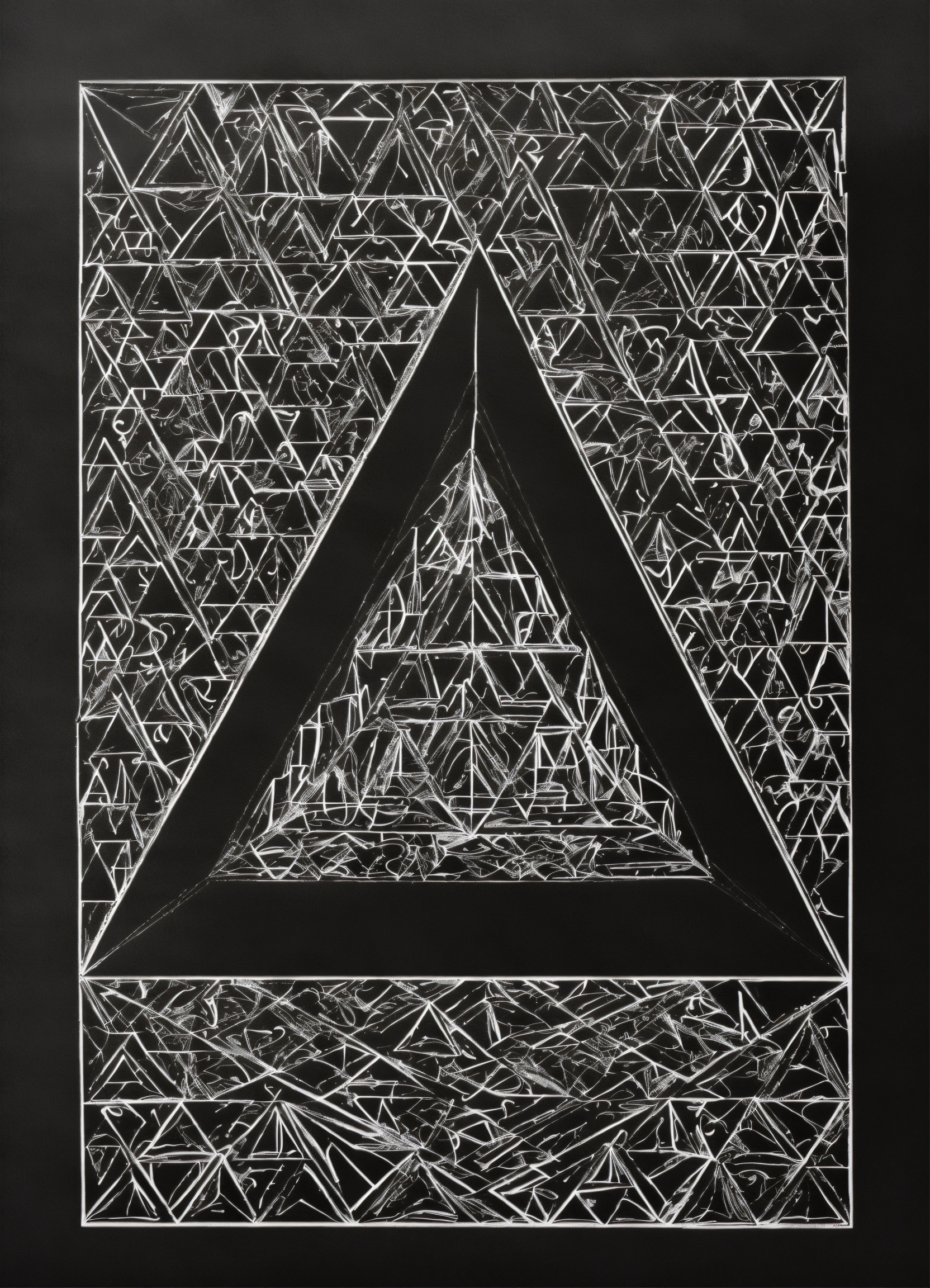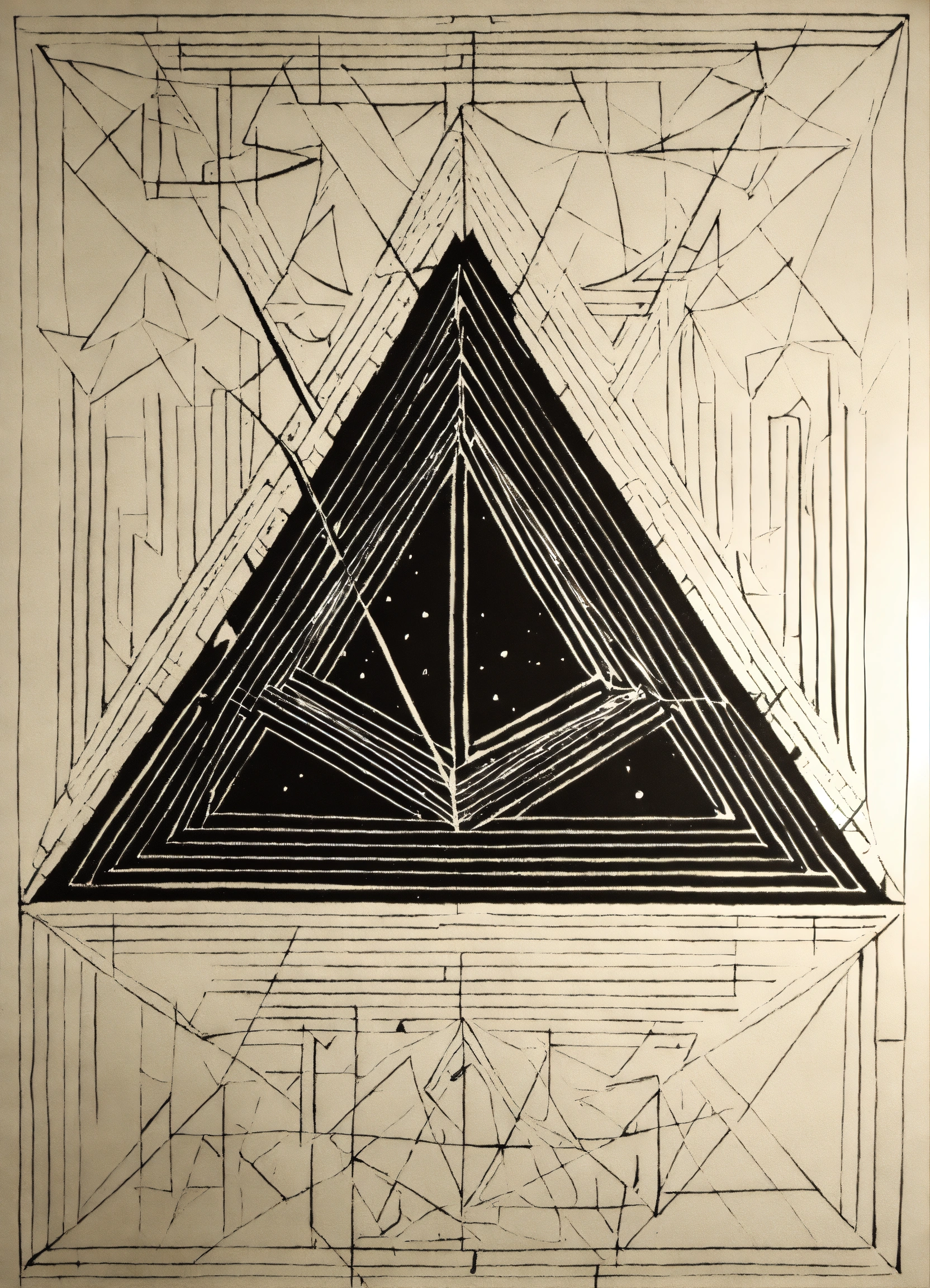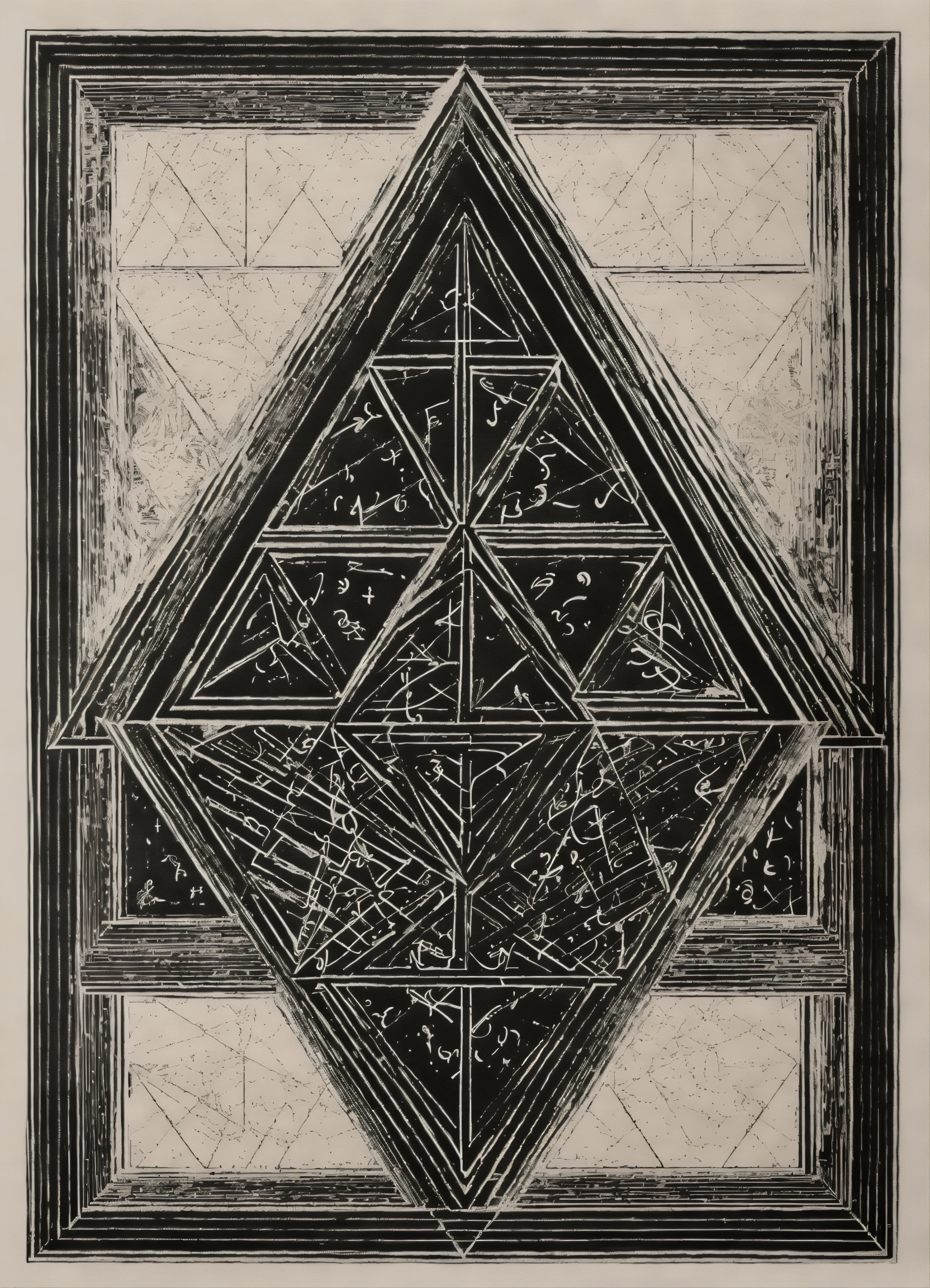 (((monochrome minimalistic calligraphy print))) boundless dimensions within a tetrahedron