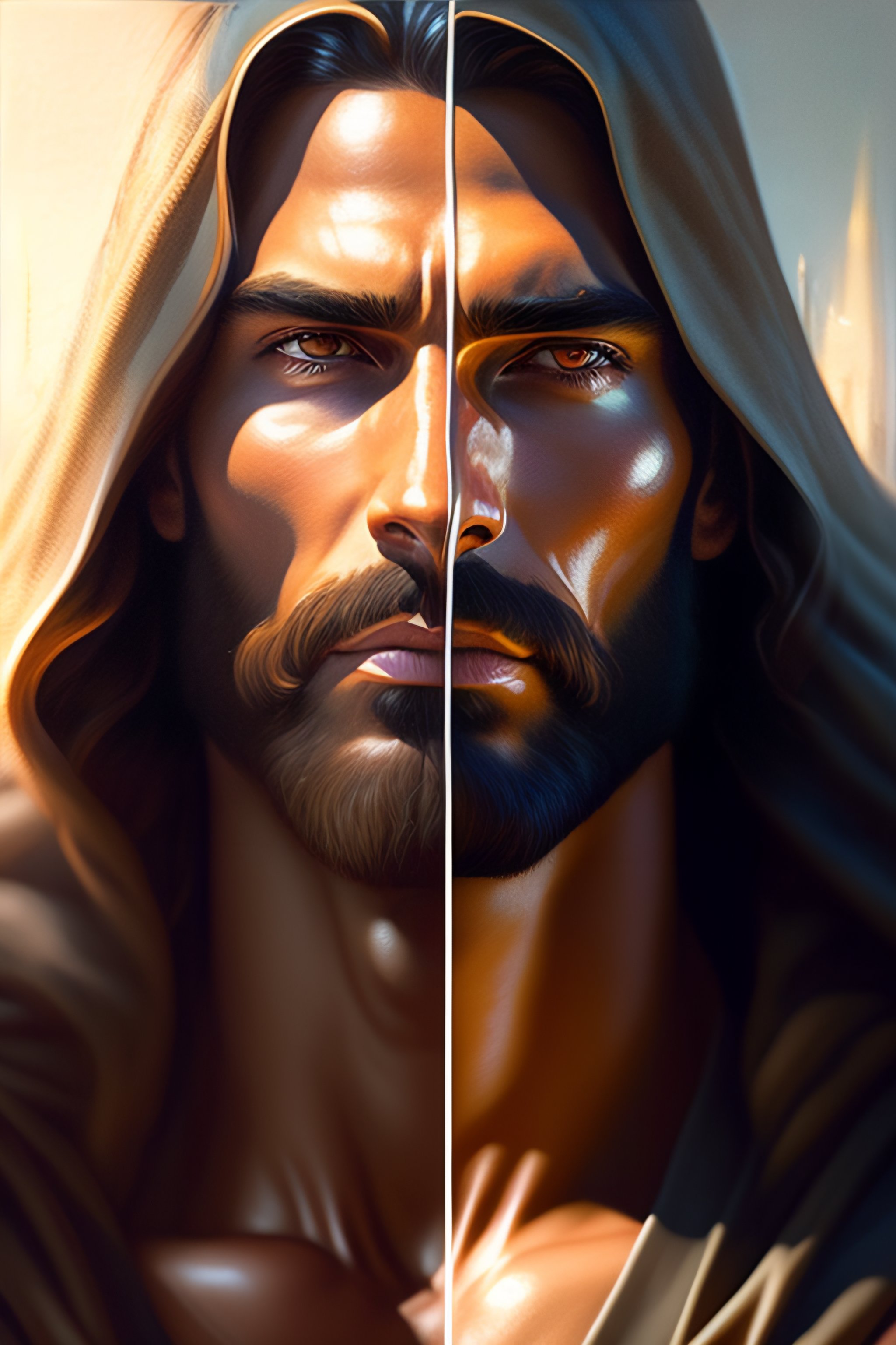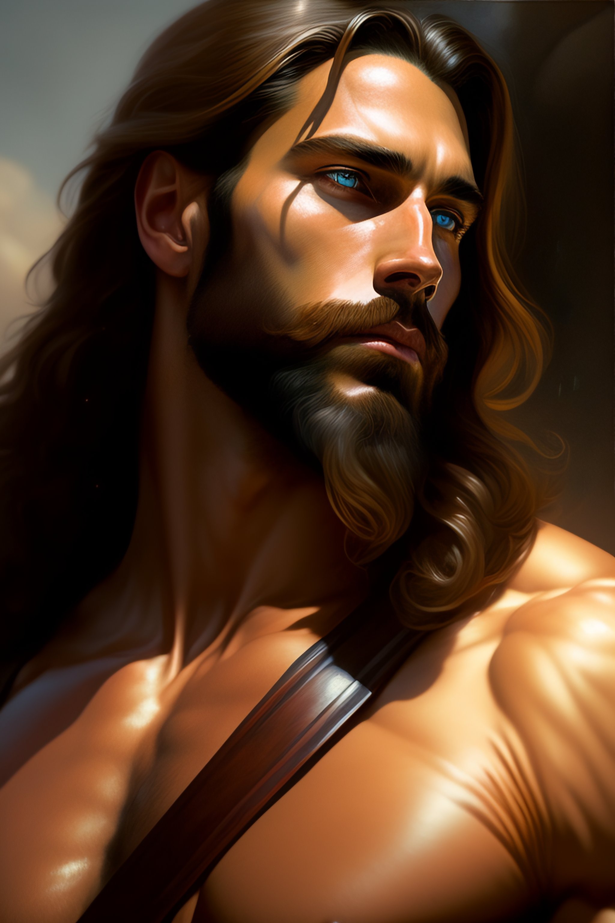 Jesus christ as an action hero, realistic portrait, symmetrical, highly detailed, digital painting, artstation, concept art, smooth, sharp focus, illustration, cinematic lighting, art by artgerm and greg rutkowski and alphonse mucha