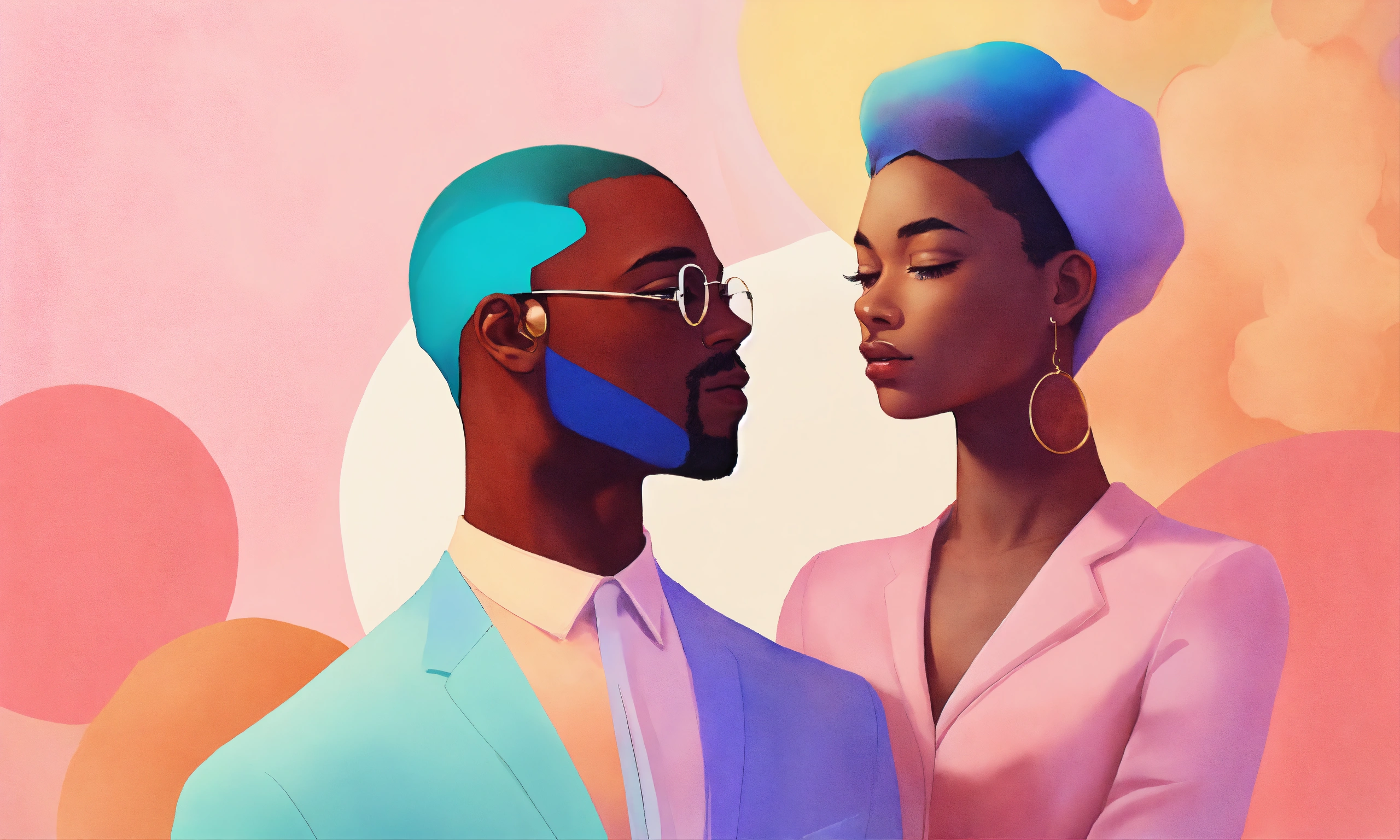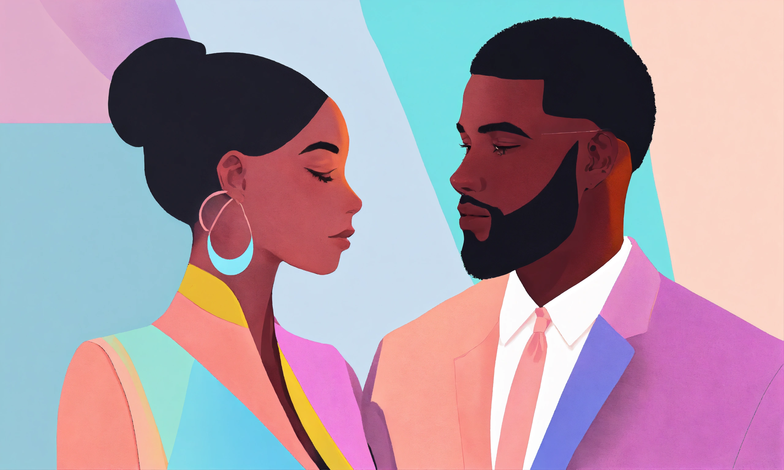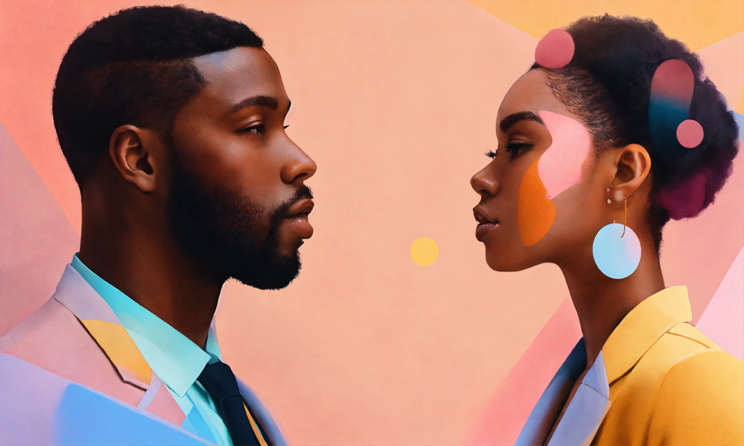 Abstract image of black man and woman in the style of a pastel art representing soft skills such as negotiation