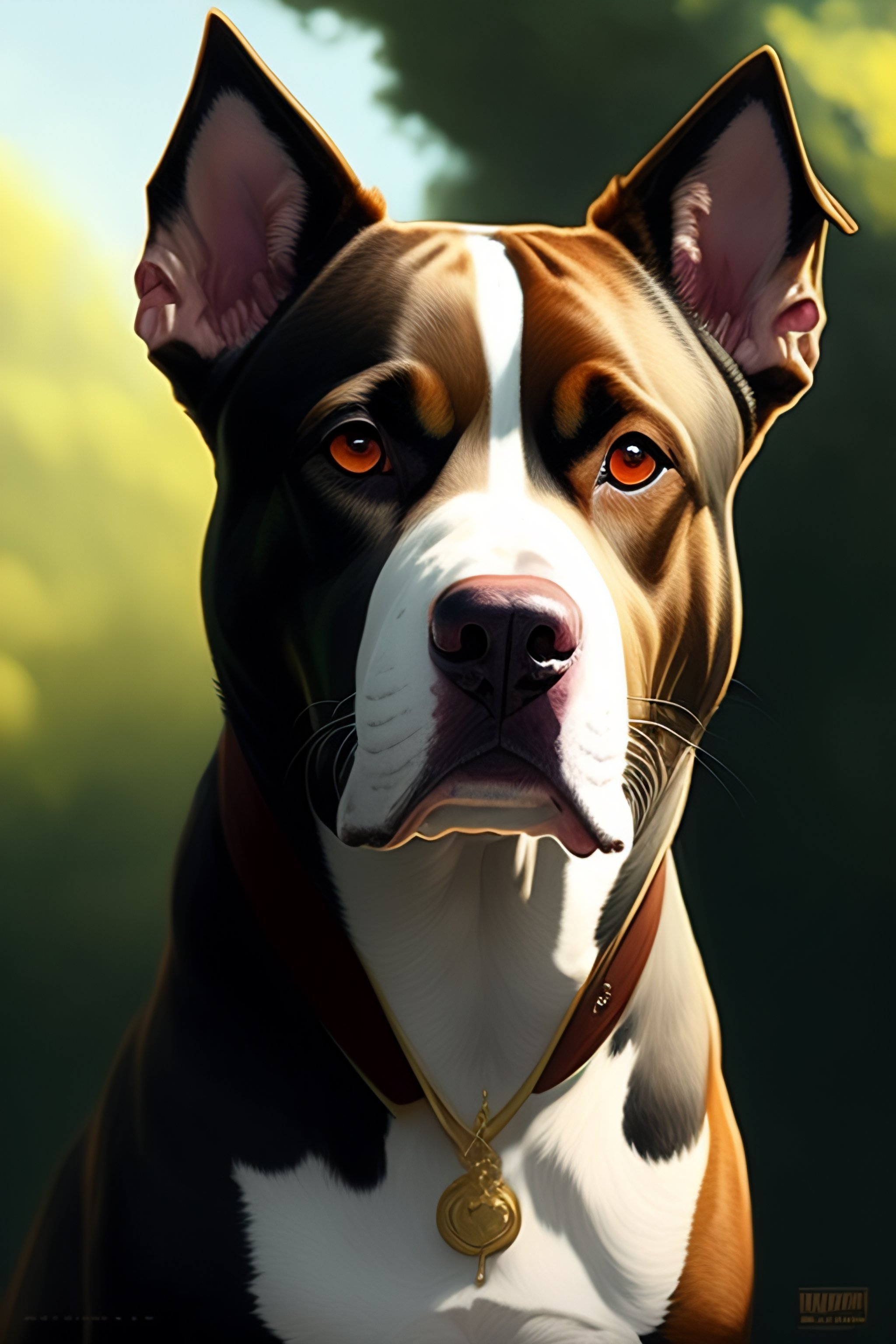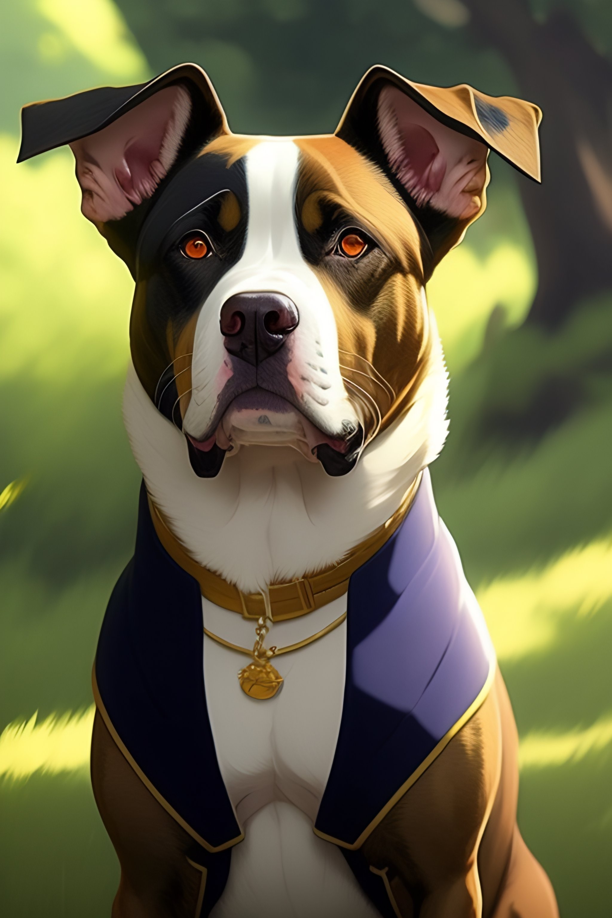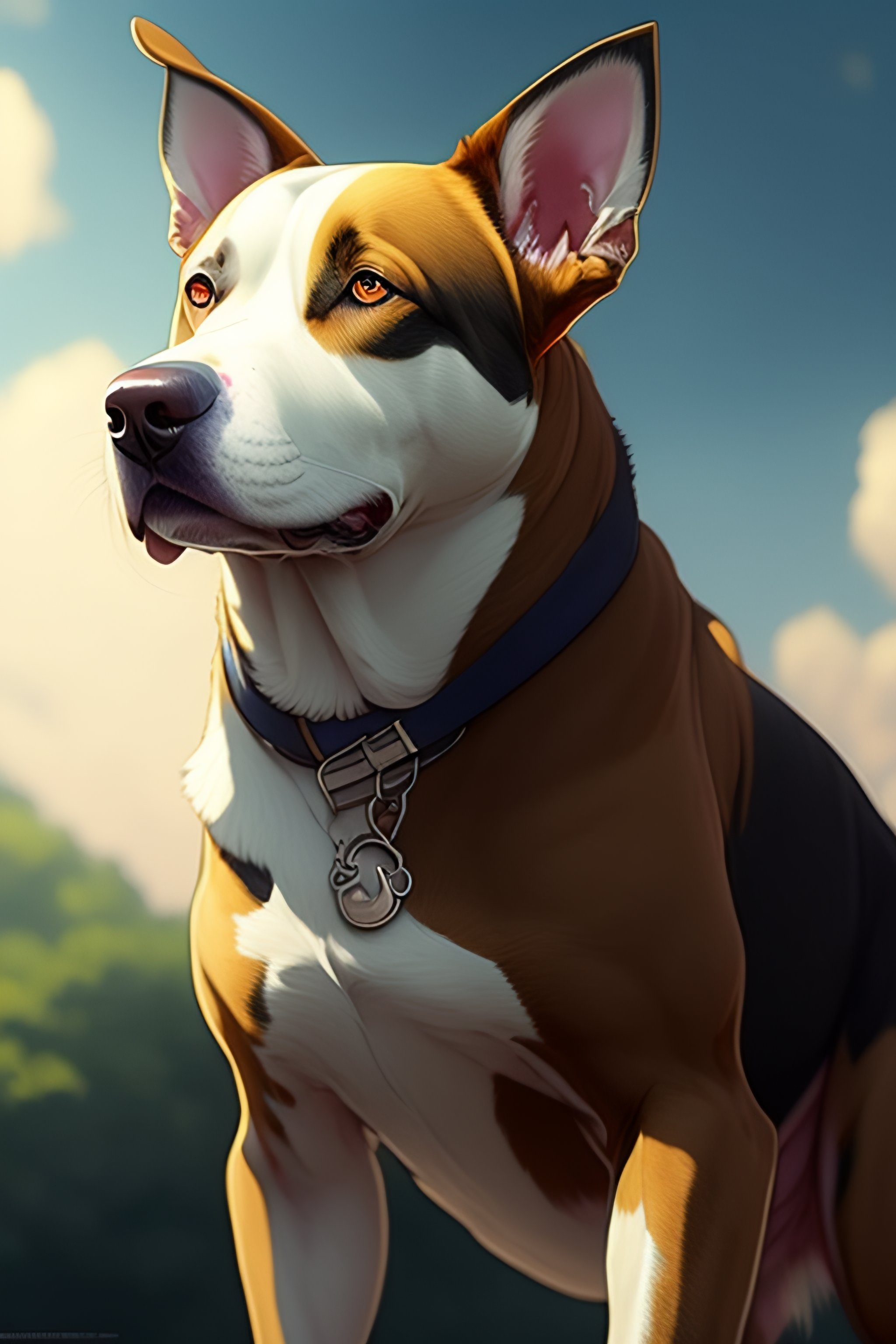 Anime character concept art of a pitbull dog, painted by greg rutkowski makoto shinkai studio ghibli wlop