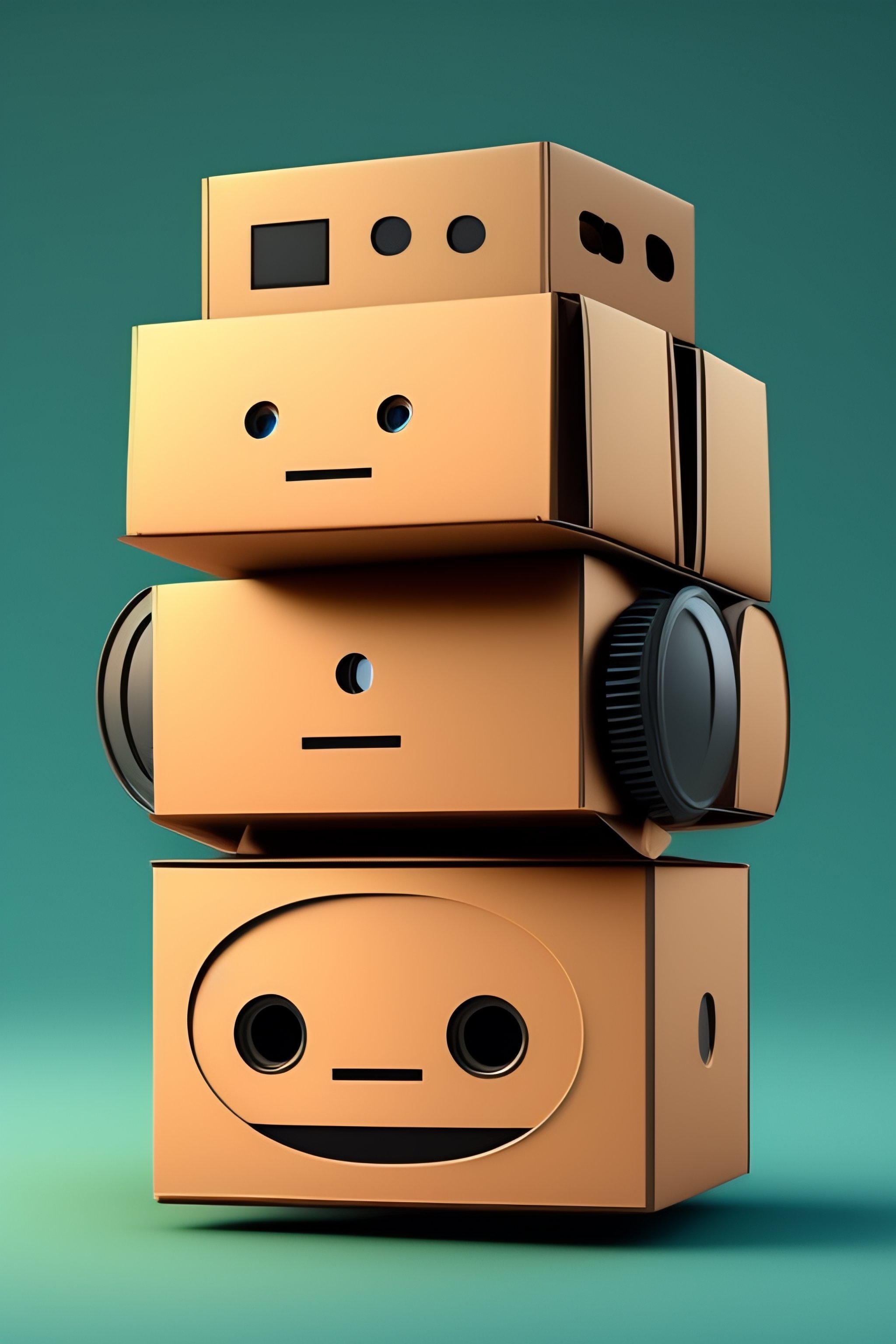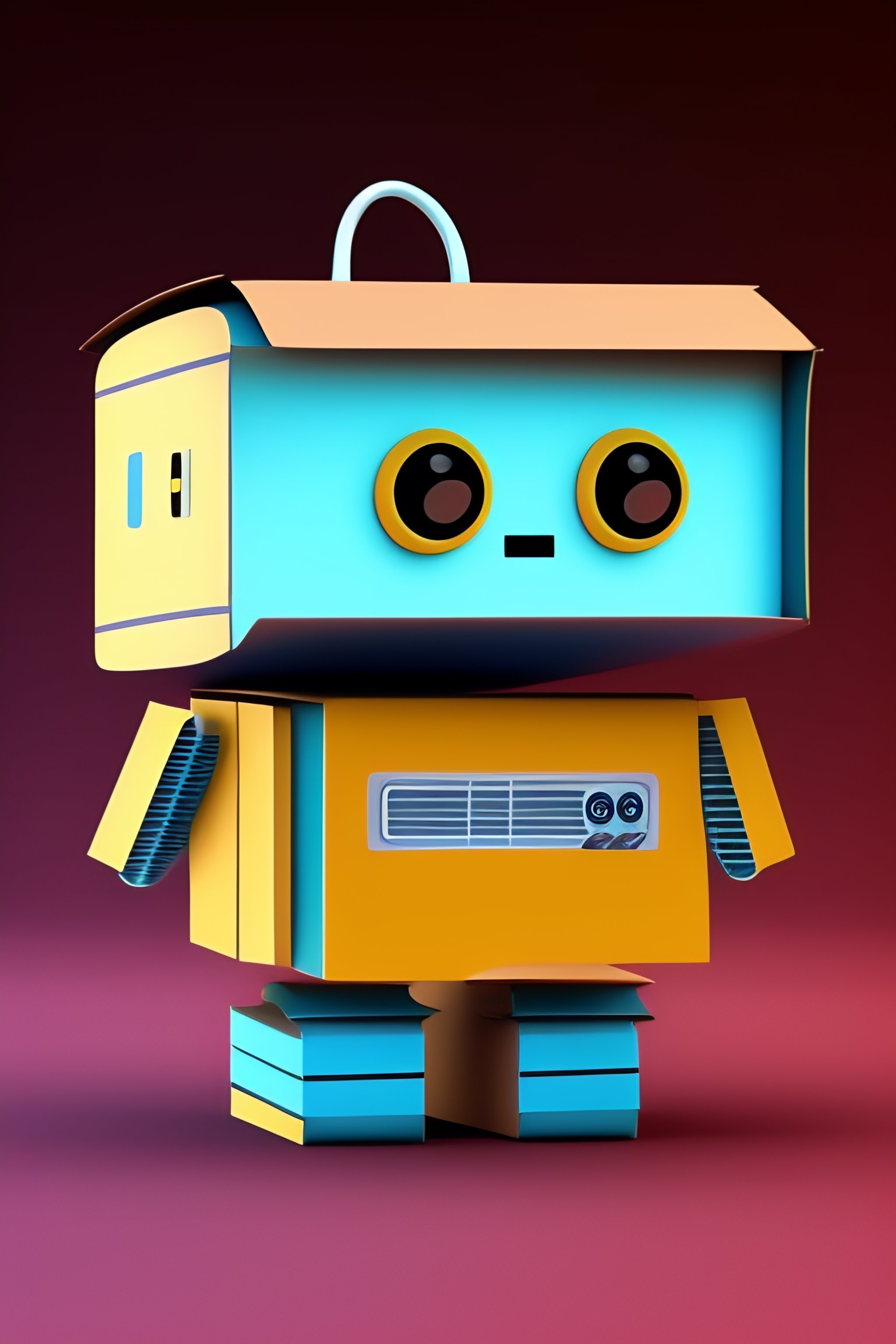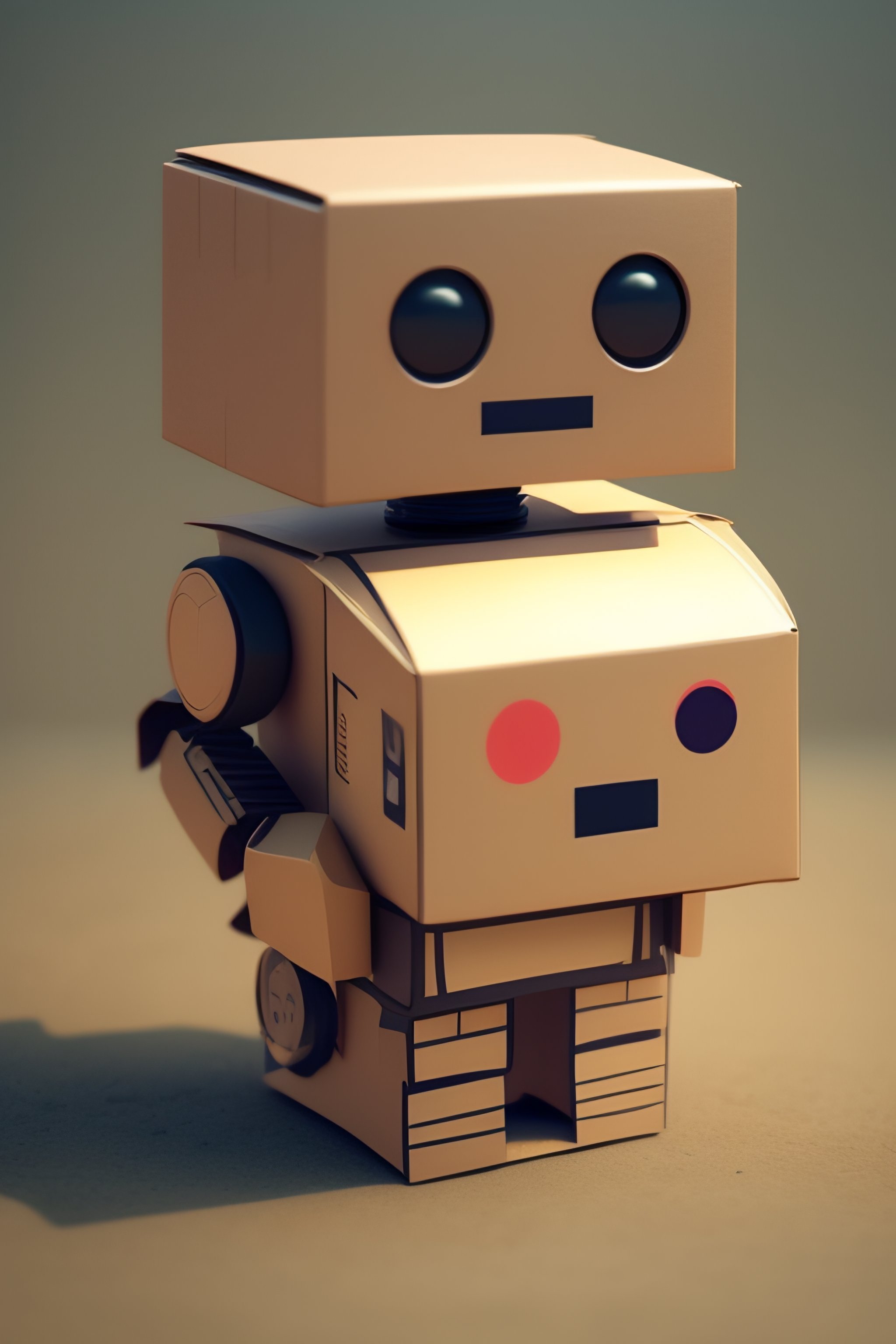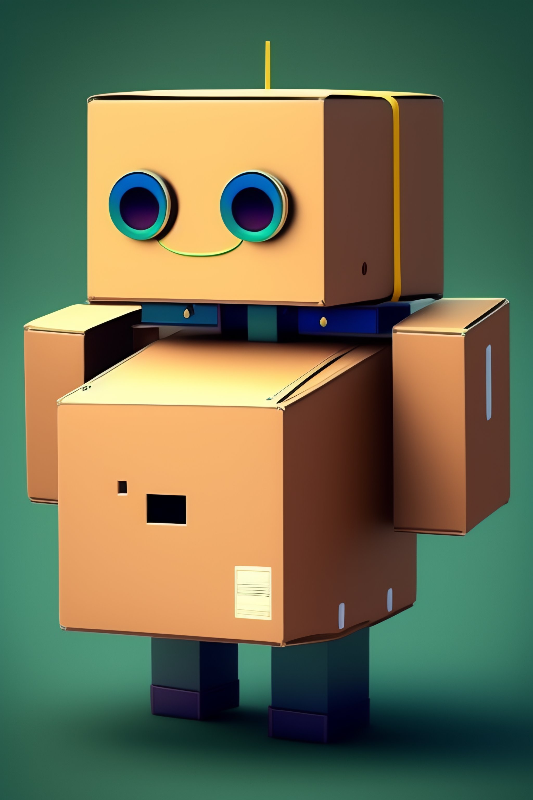 A cute robot made out of cardboard boxes cartoon style