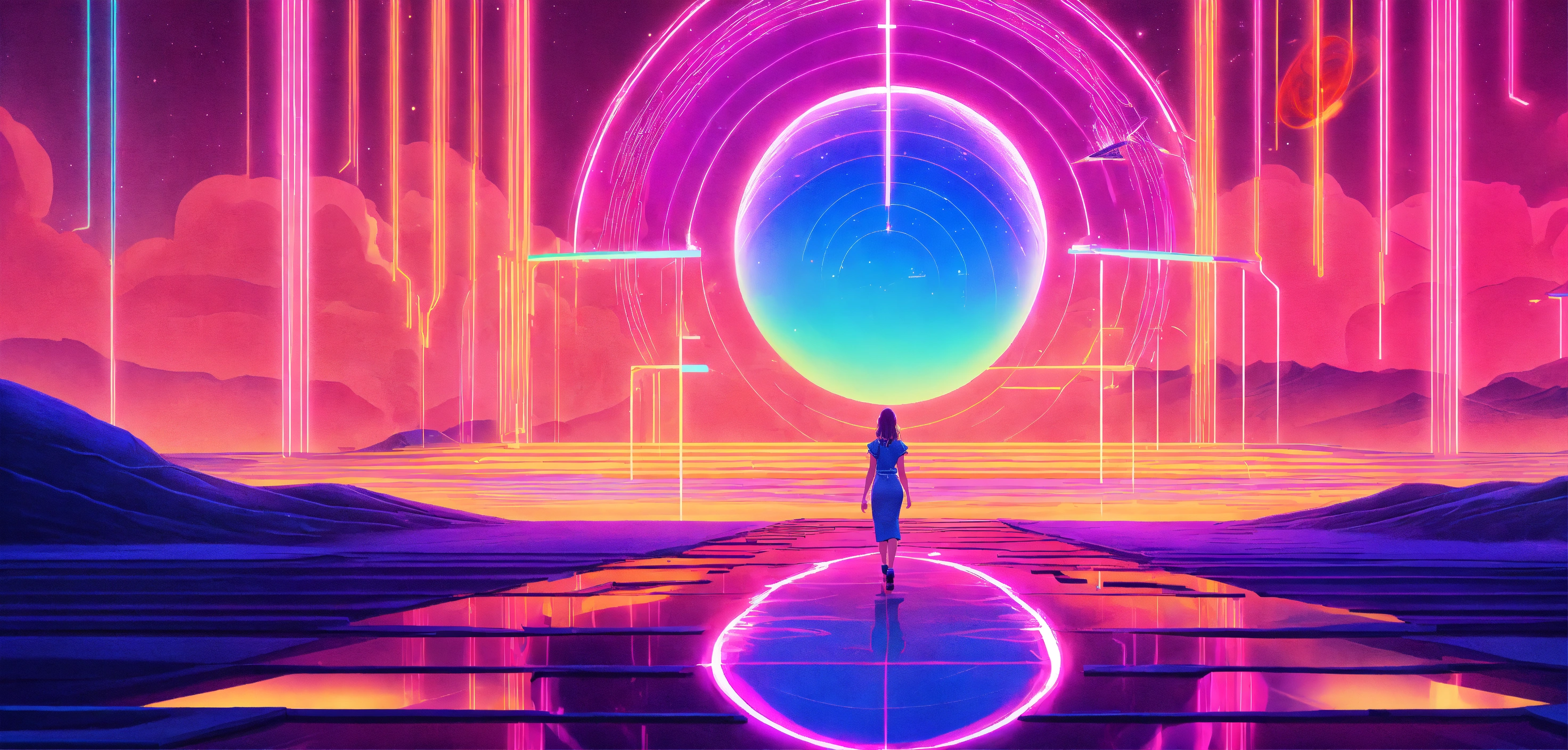 In psychic waves visuals, patterns serve as calming, even spiritual elements. pastels and neons abound. and fonts with thin lines, surreal curves, and neon-light shapes help communicate expanding awareness and bold journeys into mental, emotional, and spiritual realms. space
