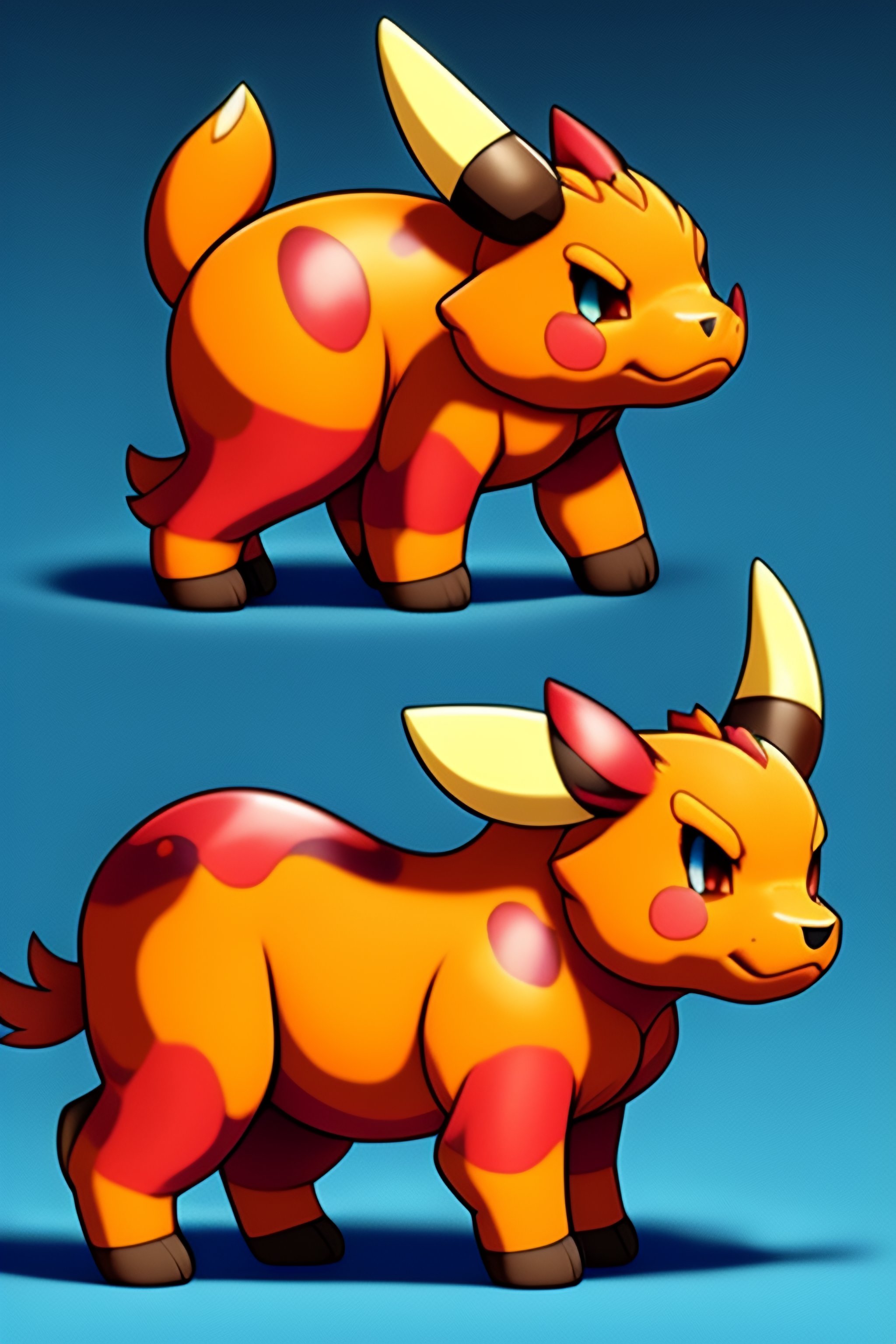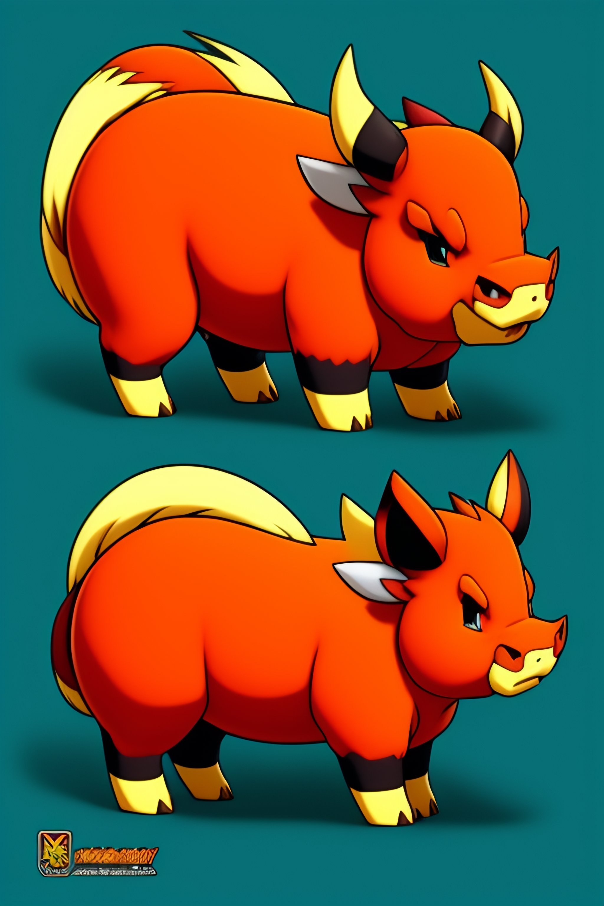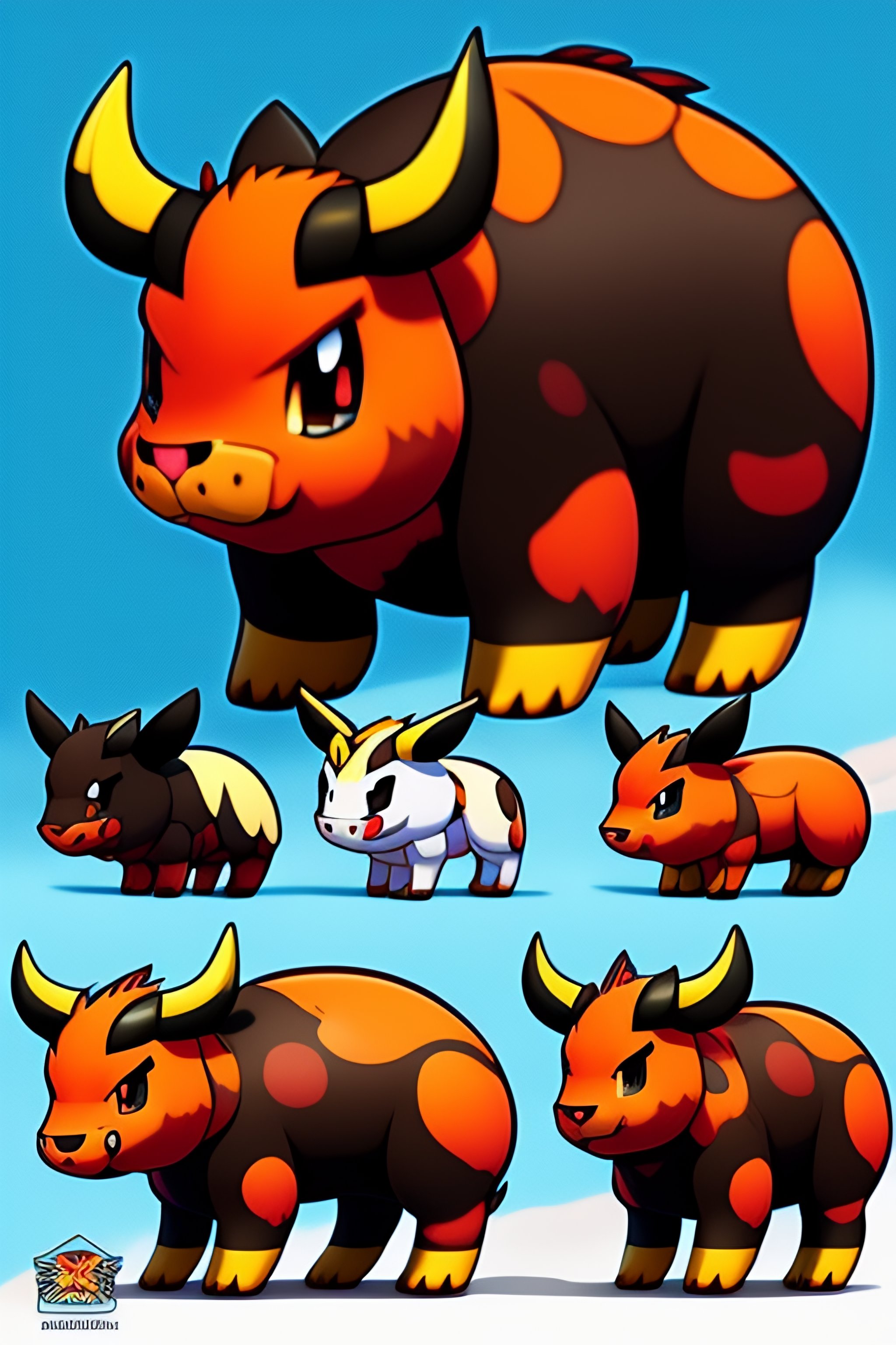Fire type fakemon based on an ox, first stage starter pokemon, cute, drawn by ken sugimori in the style of pokemon, official art, concept art, pokemon fanart