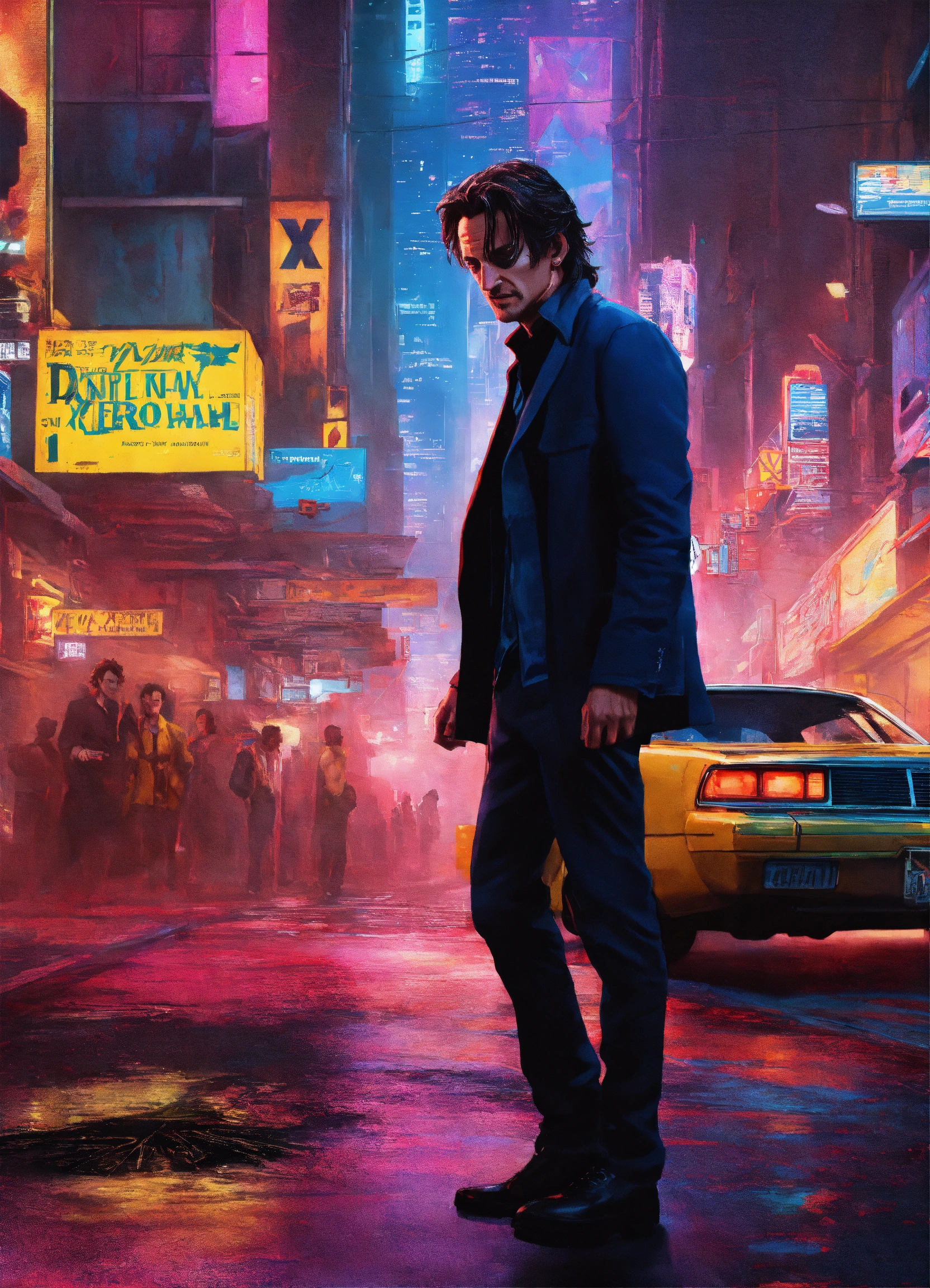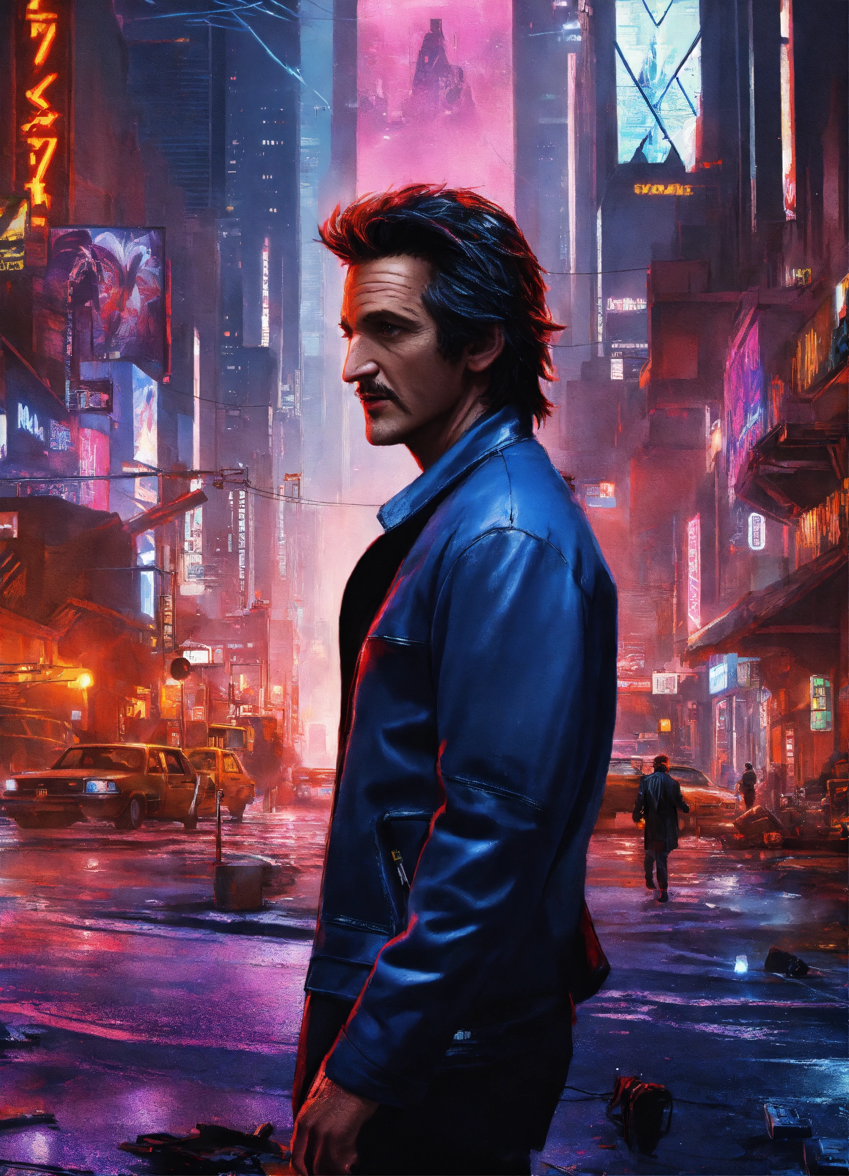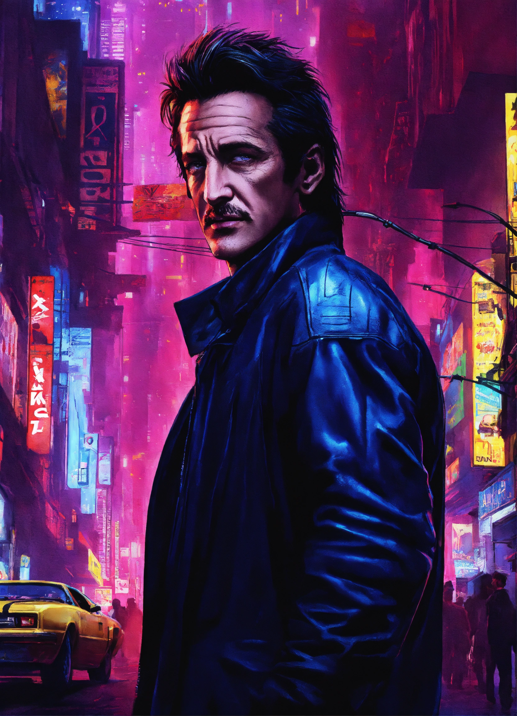 Sean penn is nightcrawler of x-men in a cyberpunk metropolis, 8k resolution, hyper detailed, intricately detailed