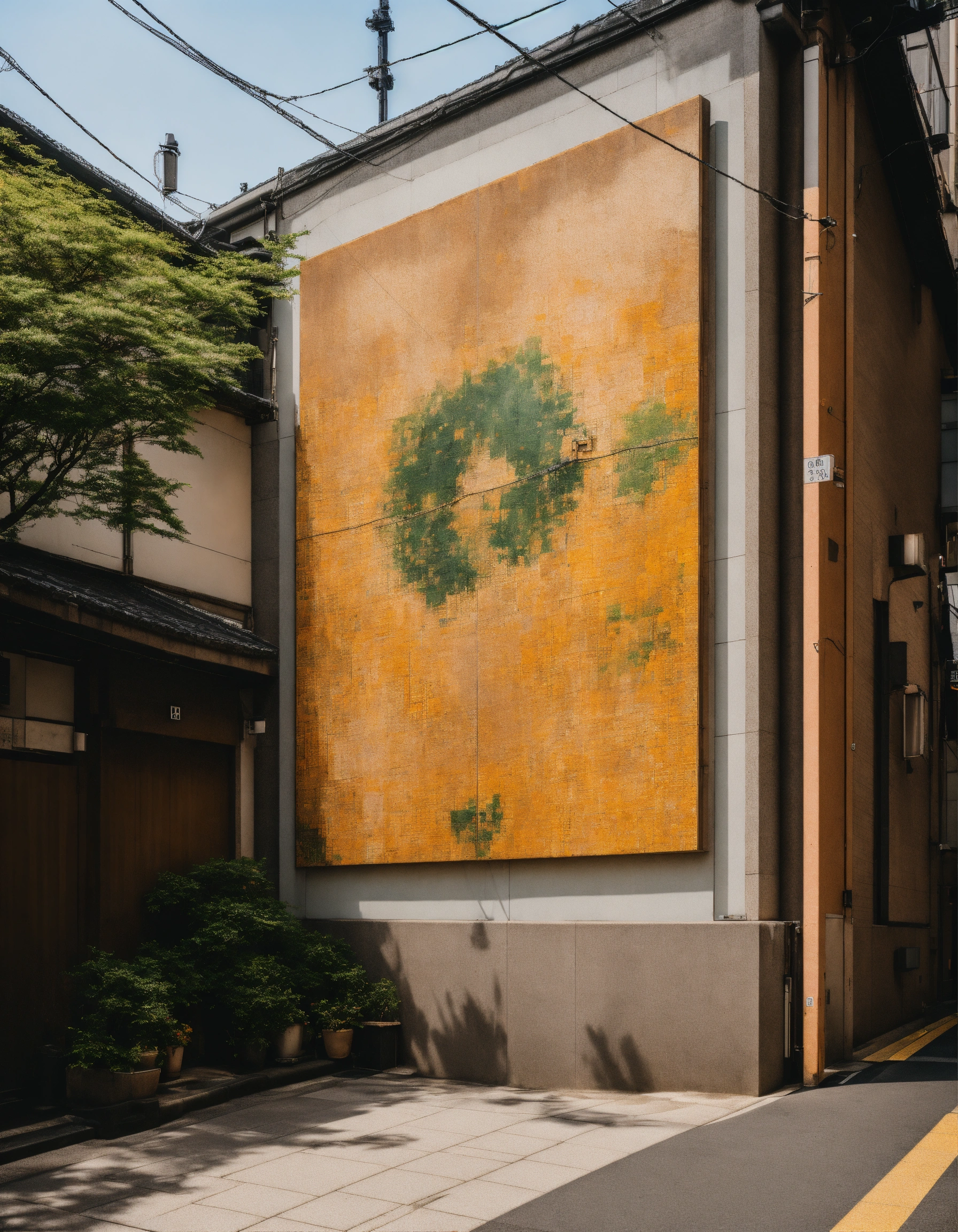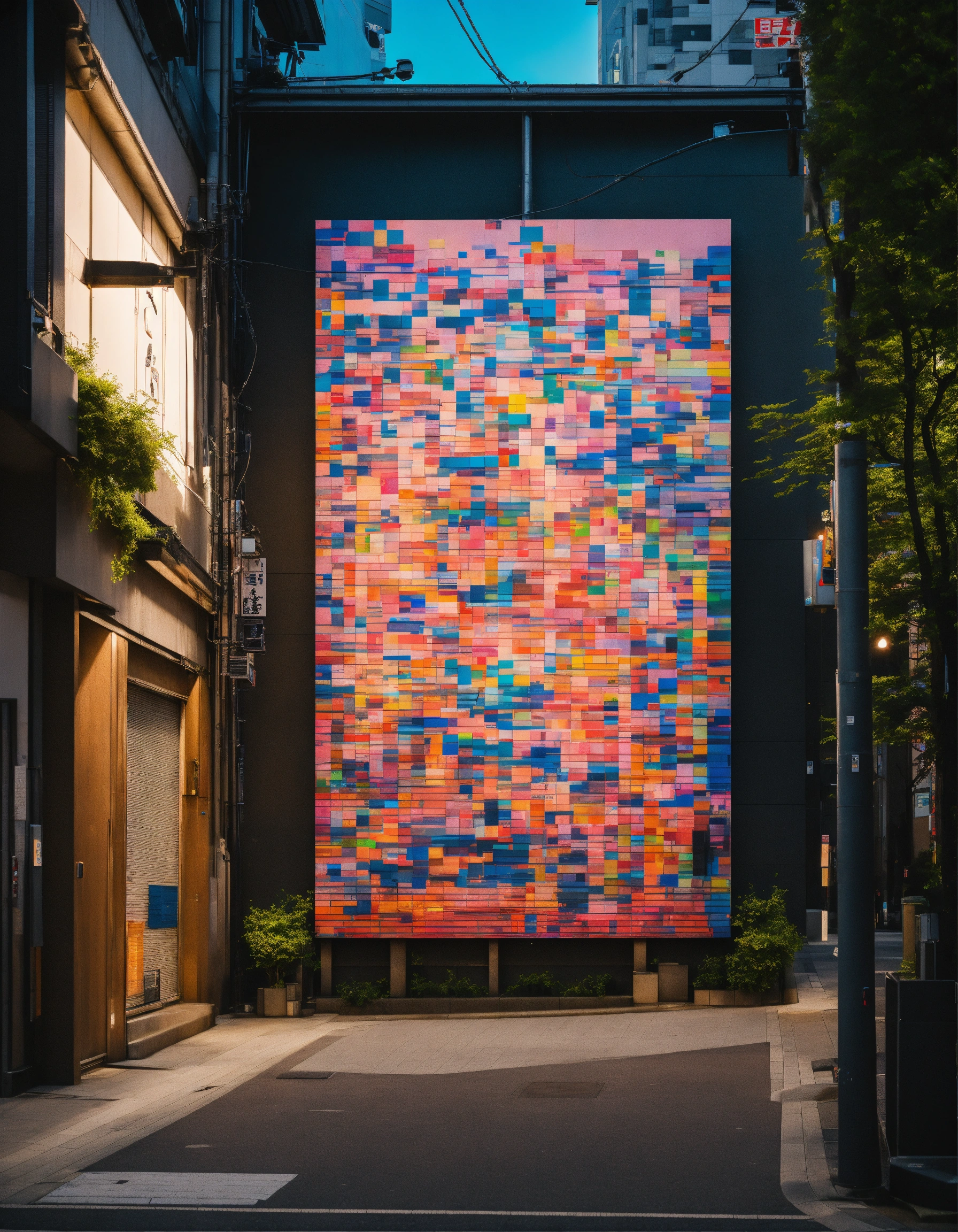 Wall art mockup photograph in downtown tokyo, shot on a sony a7 iii, illuminated by natural sunlight.