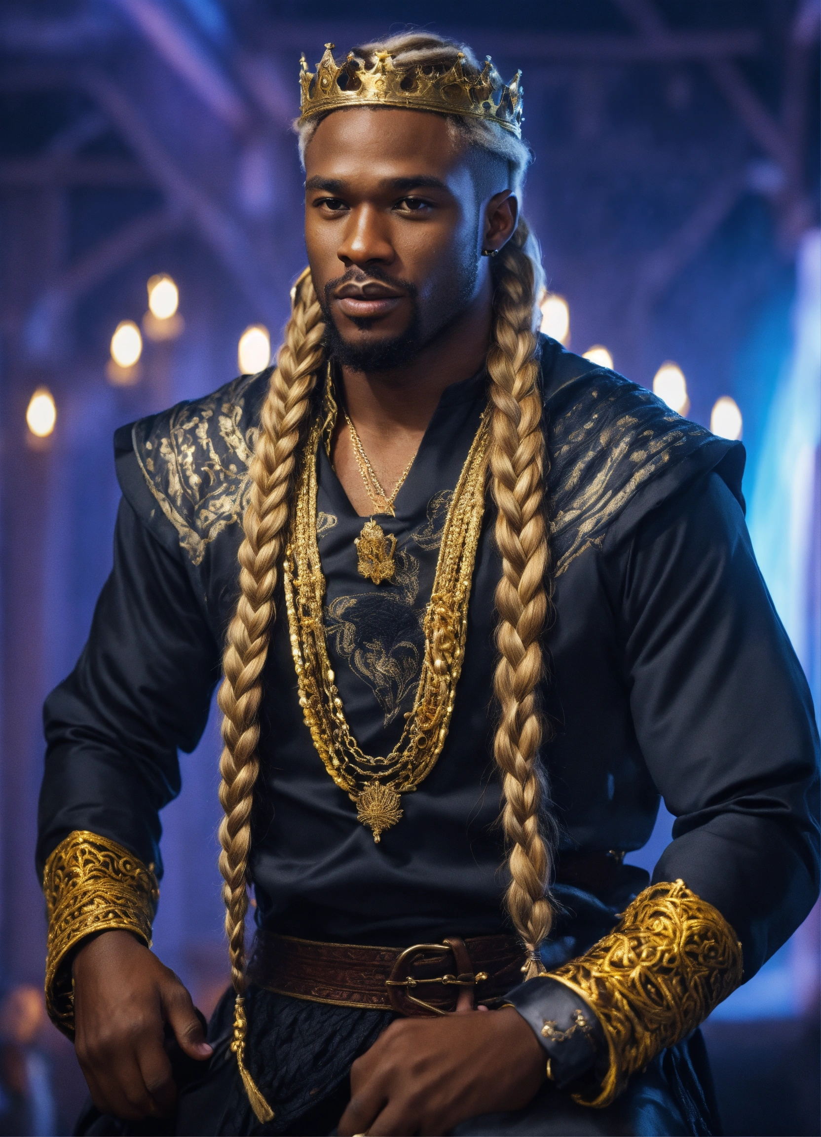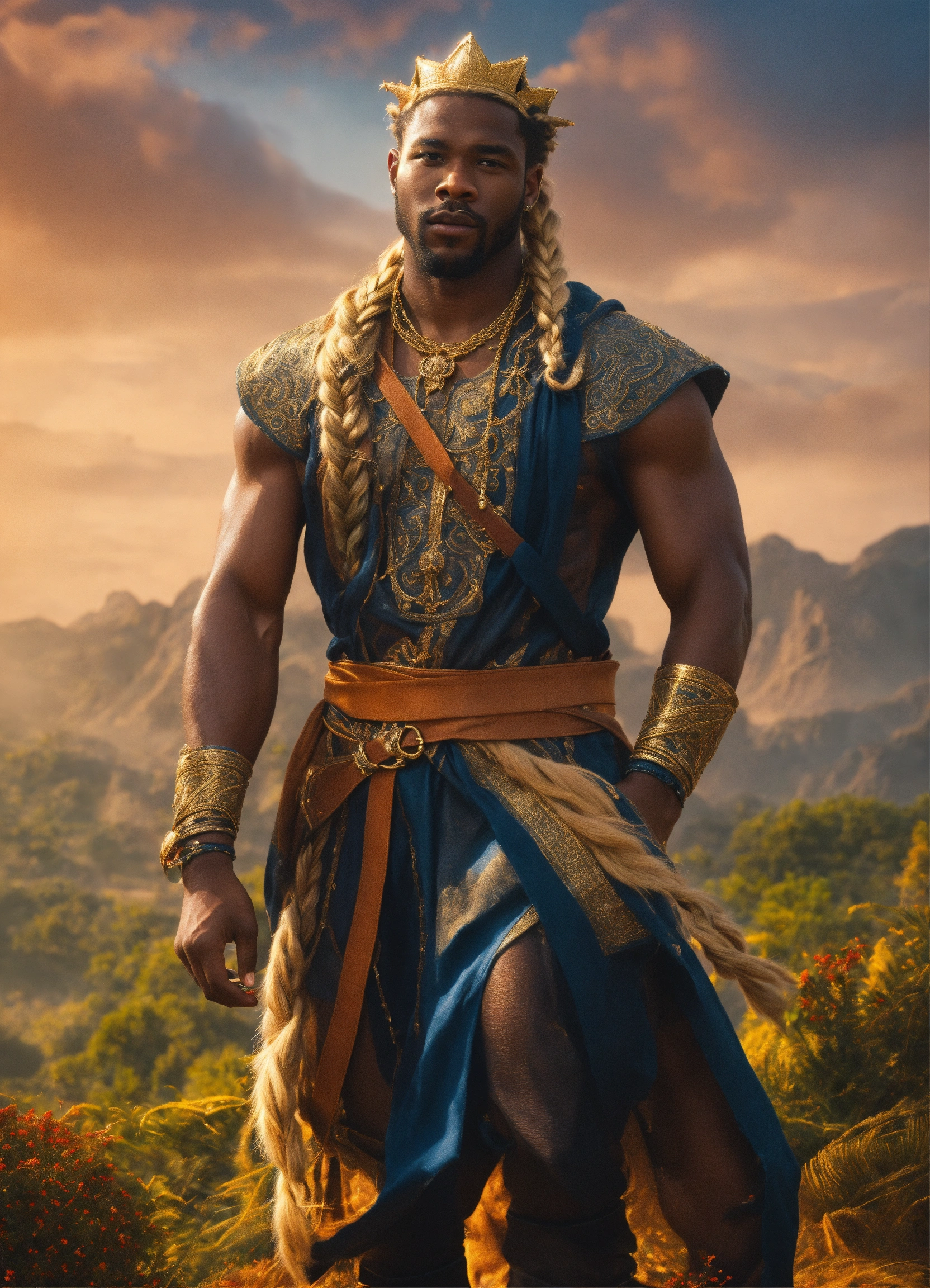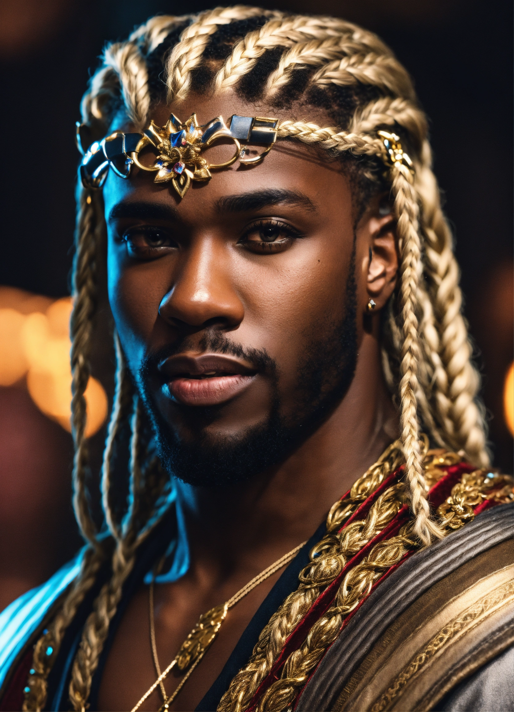 Black man blonde braided hair 4k fantasy king