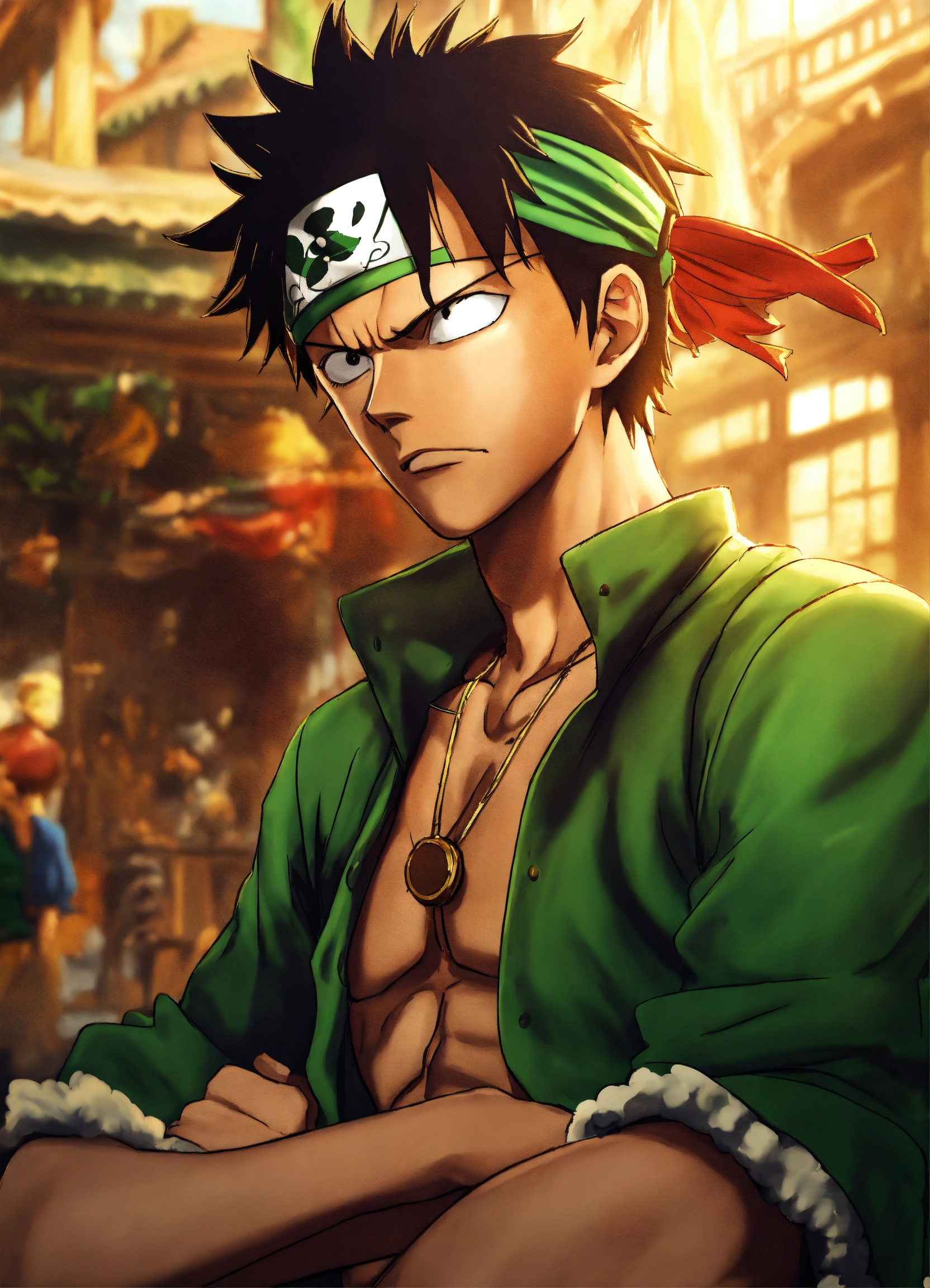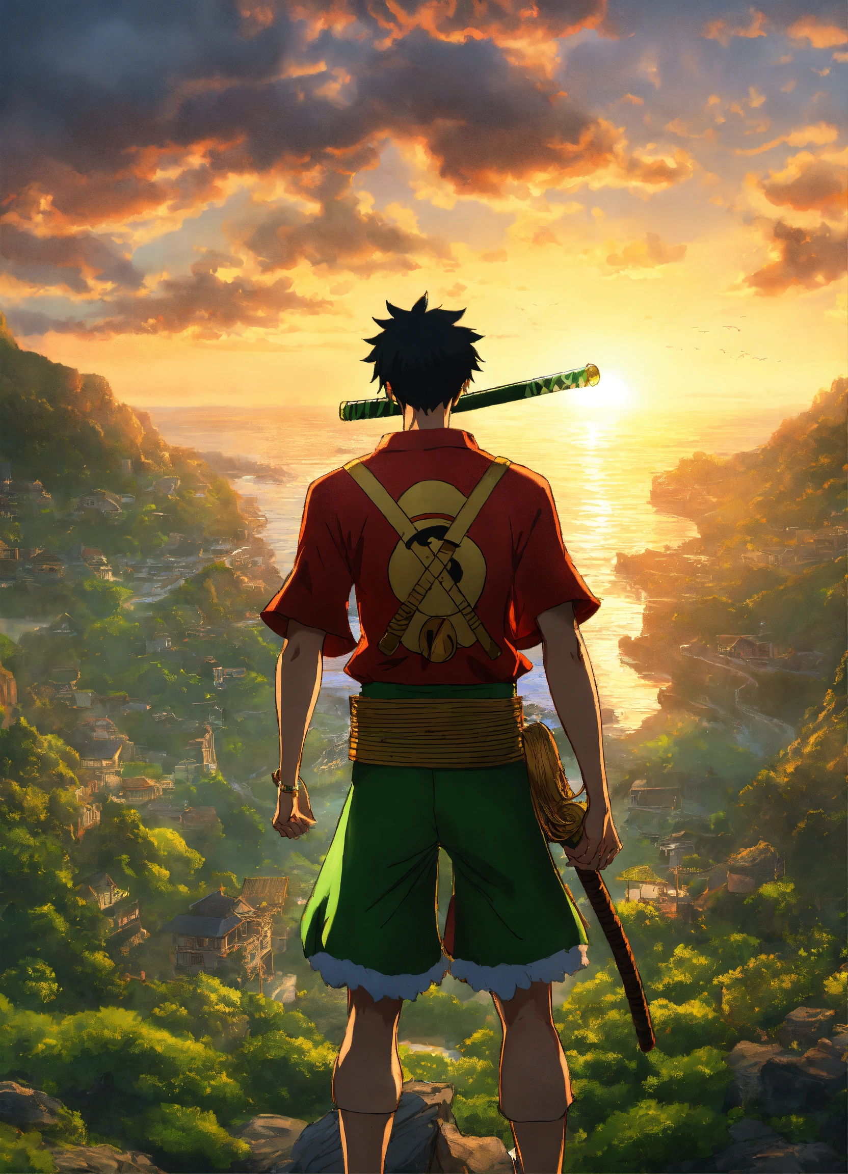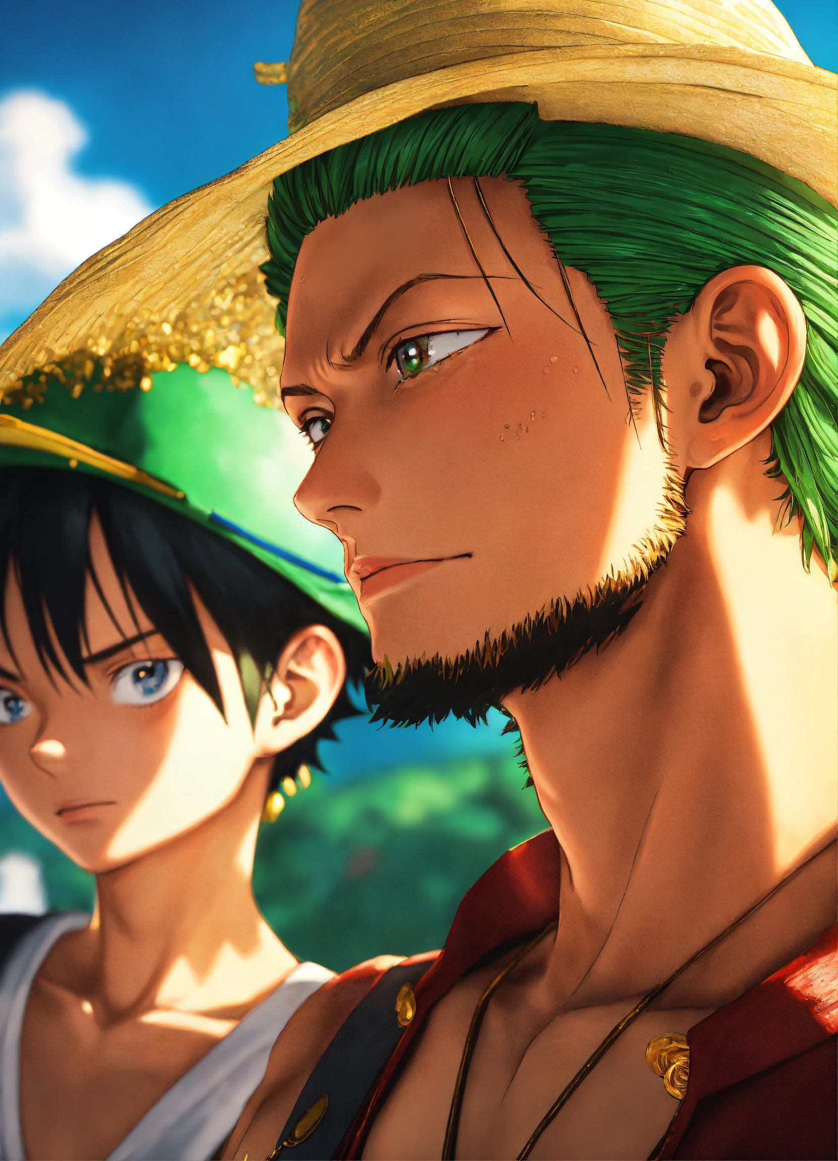 Portrait of luffy and zoro from one piece, detailed scene, stunning details, anime, detailed environment, ray tracing, 8k