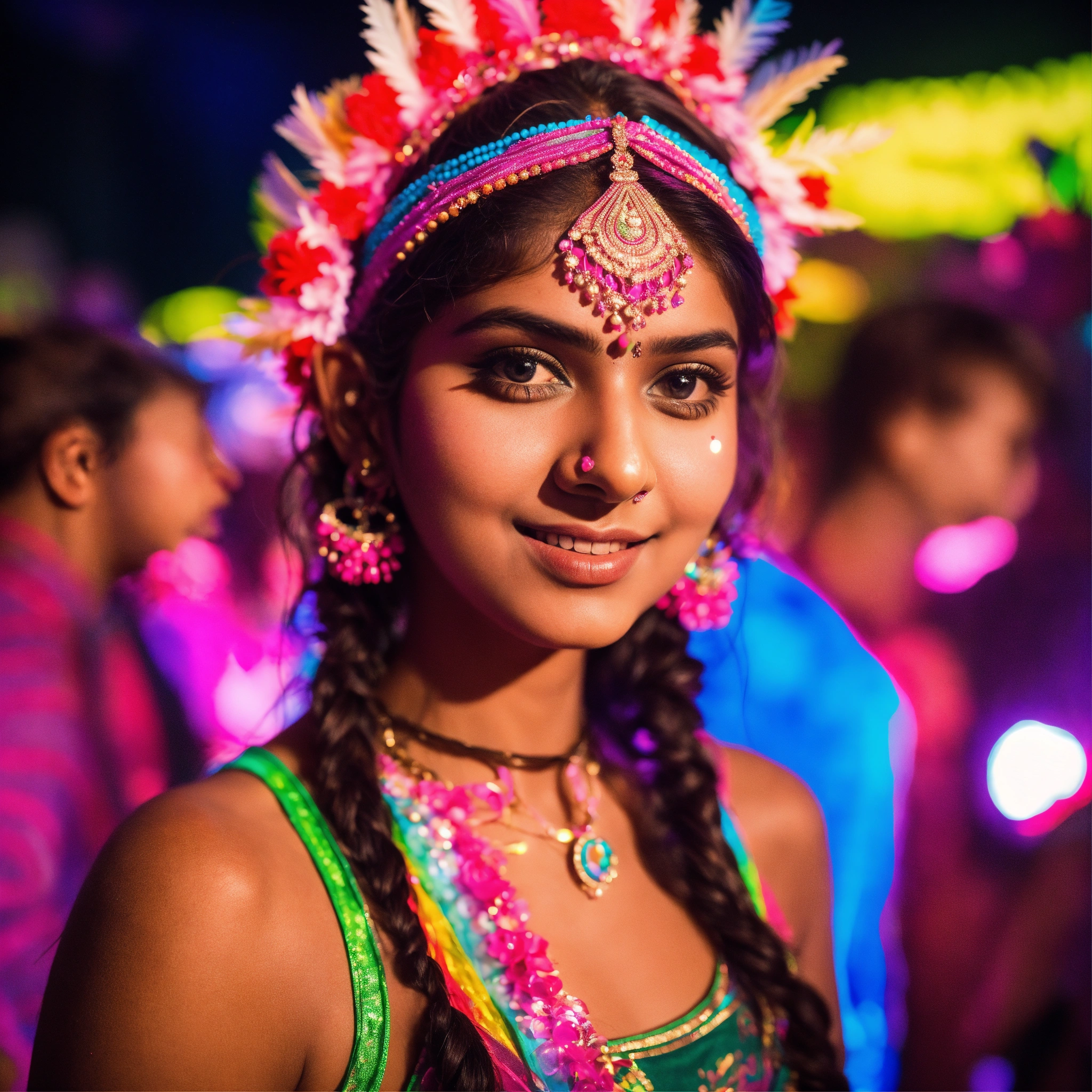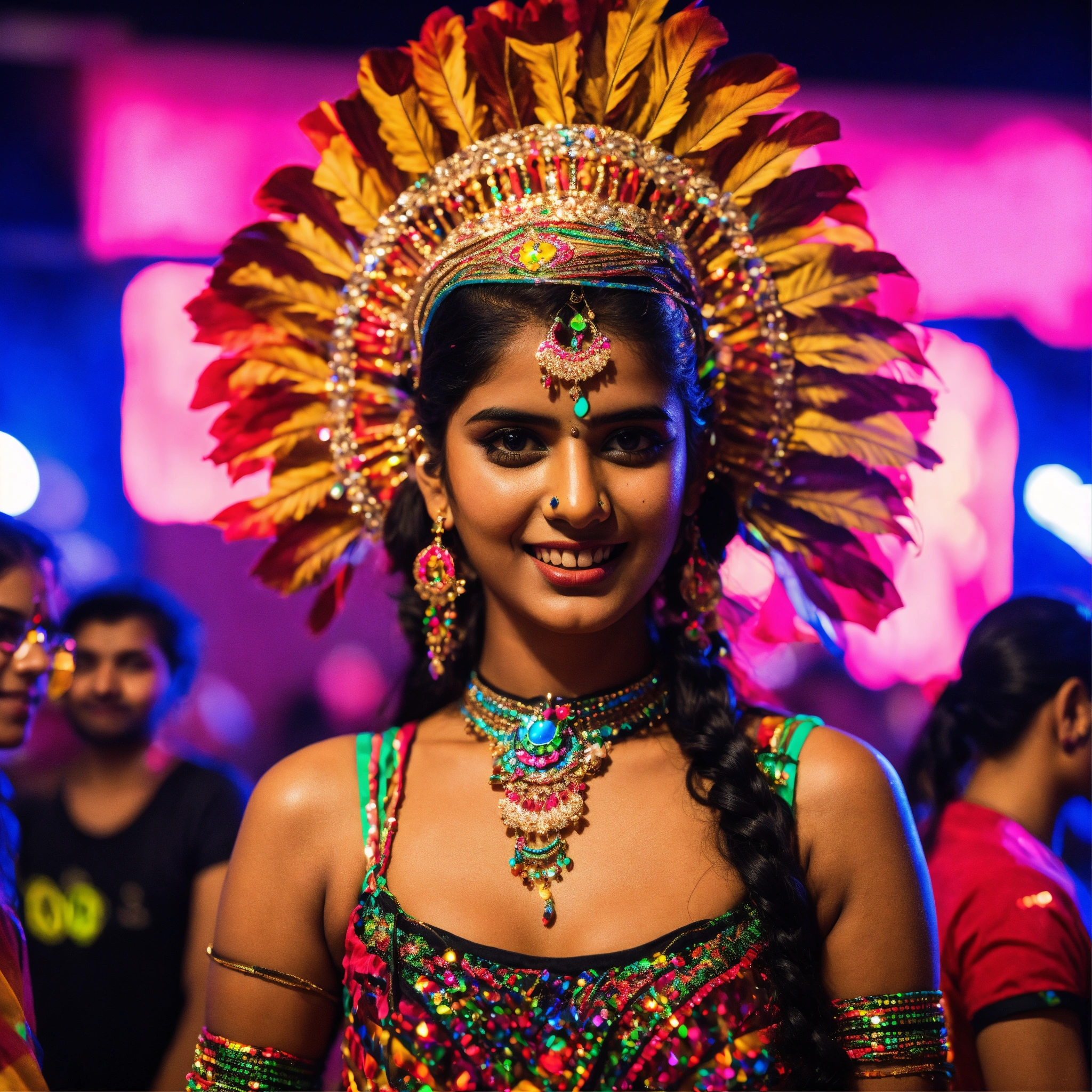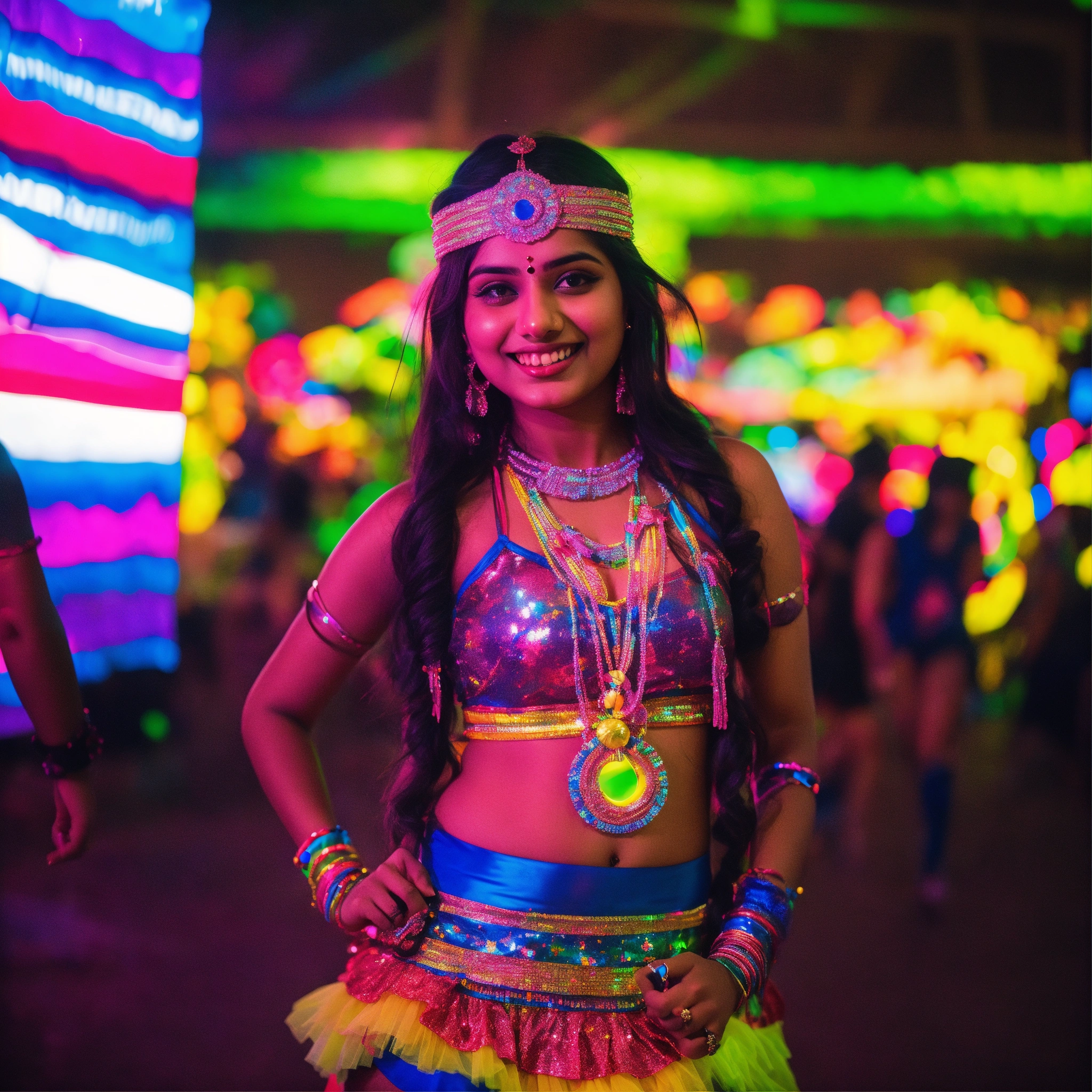 A cute indian girl in a rave outfit