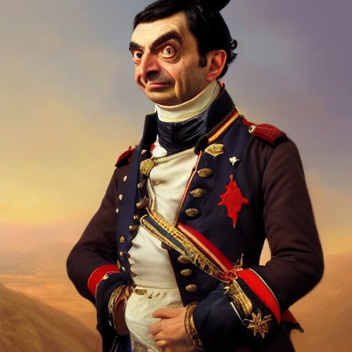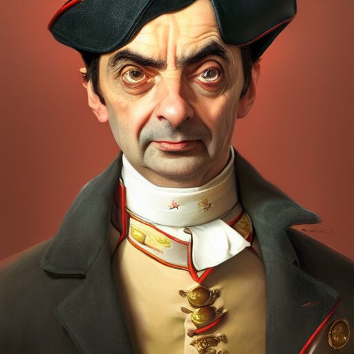 A portrait of mr bean as napoléon bonaparte, detailed, centered, digital painting, artstation, concept art, donato giancola, wlop, boris vallejo, breathtaking, 8k resolution, extremely detailed, beautiful, establishing shot, artistic, hyperrealistic, octane render