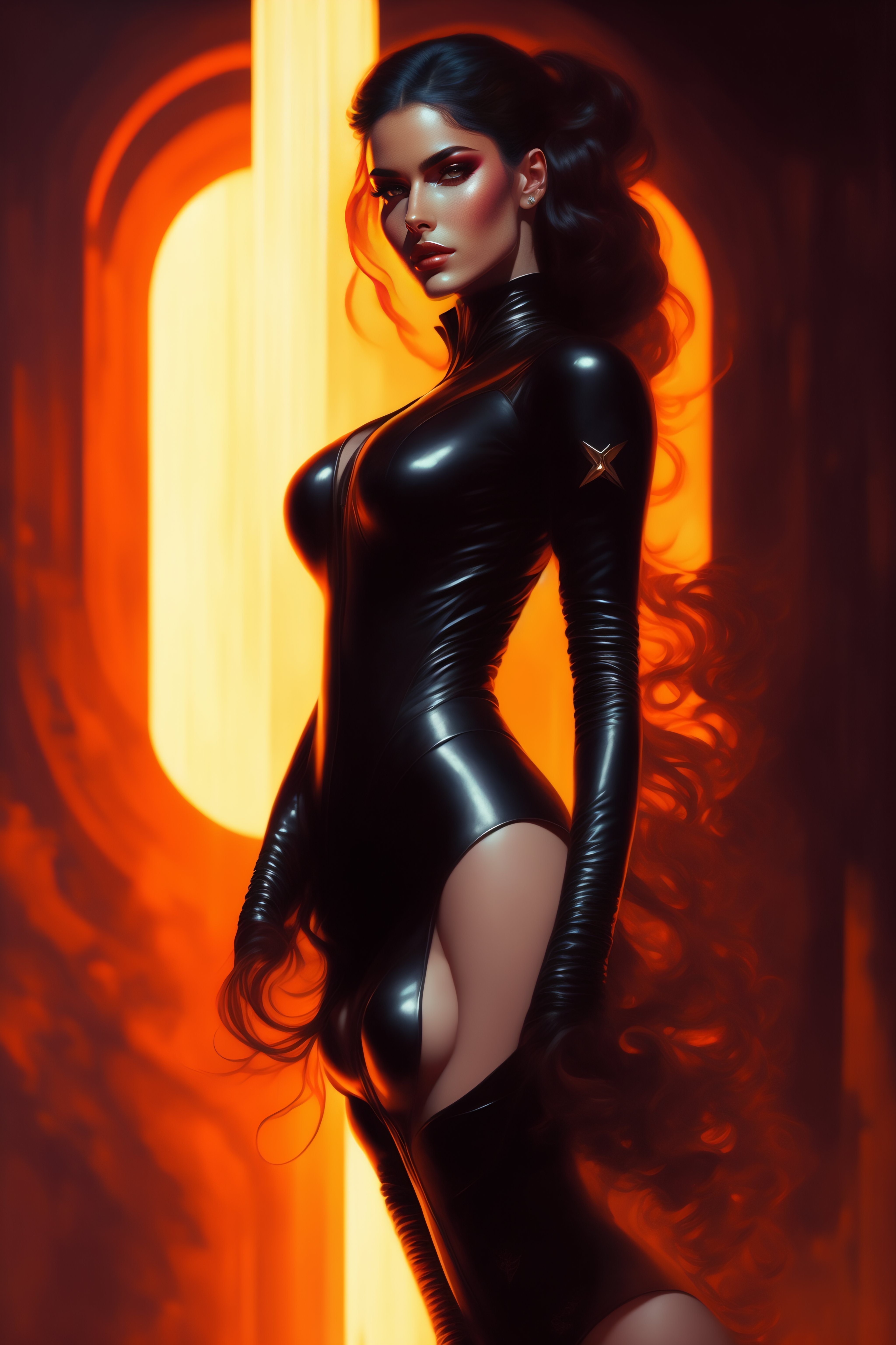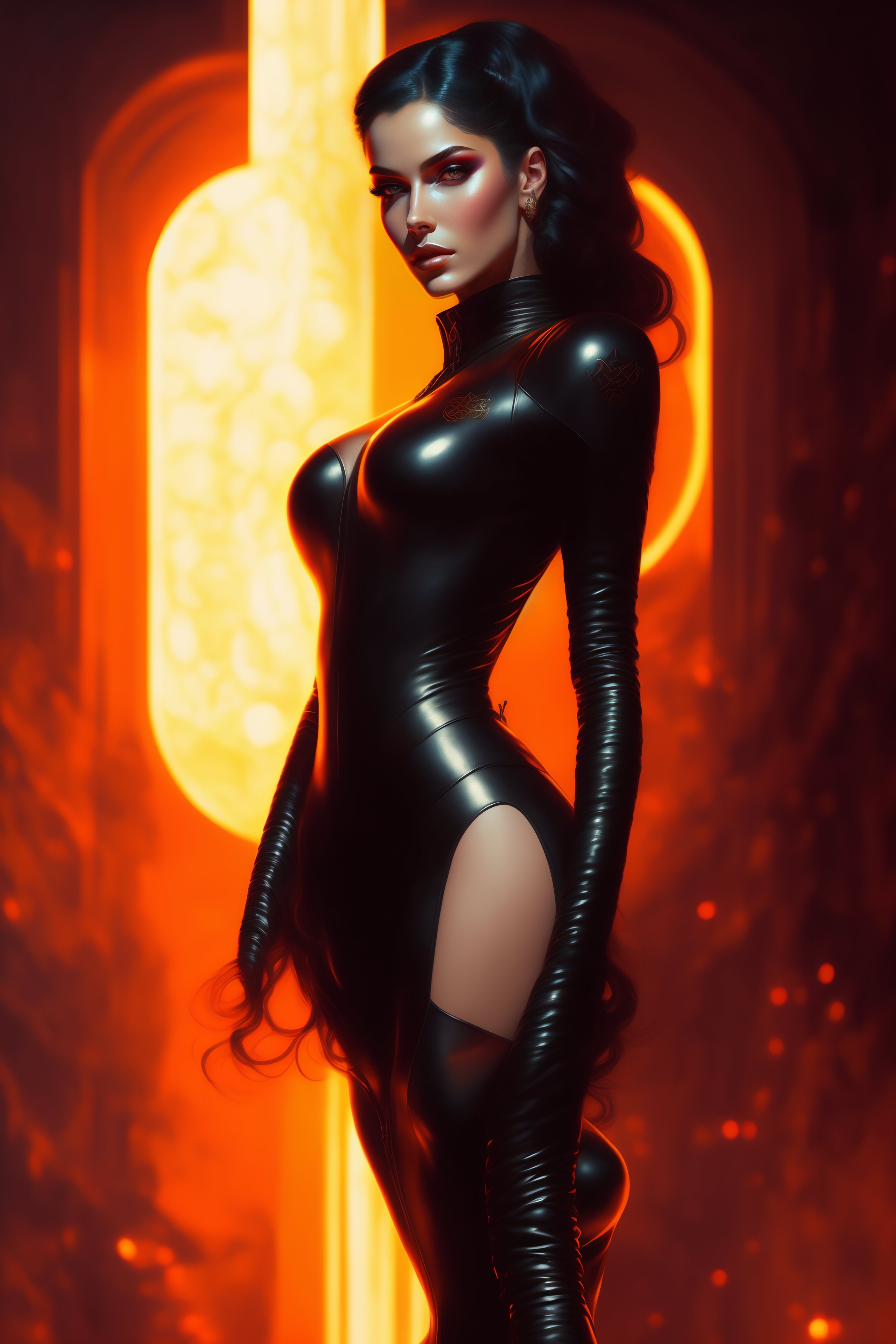 Beautiful hot matrix girl in leathers