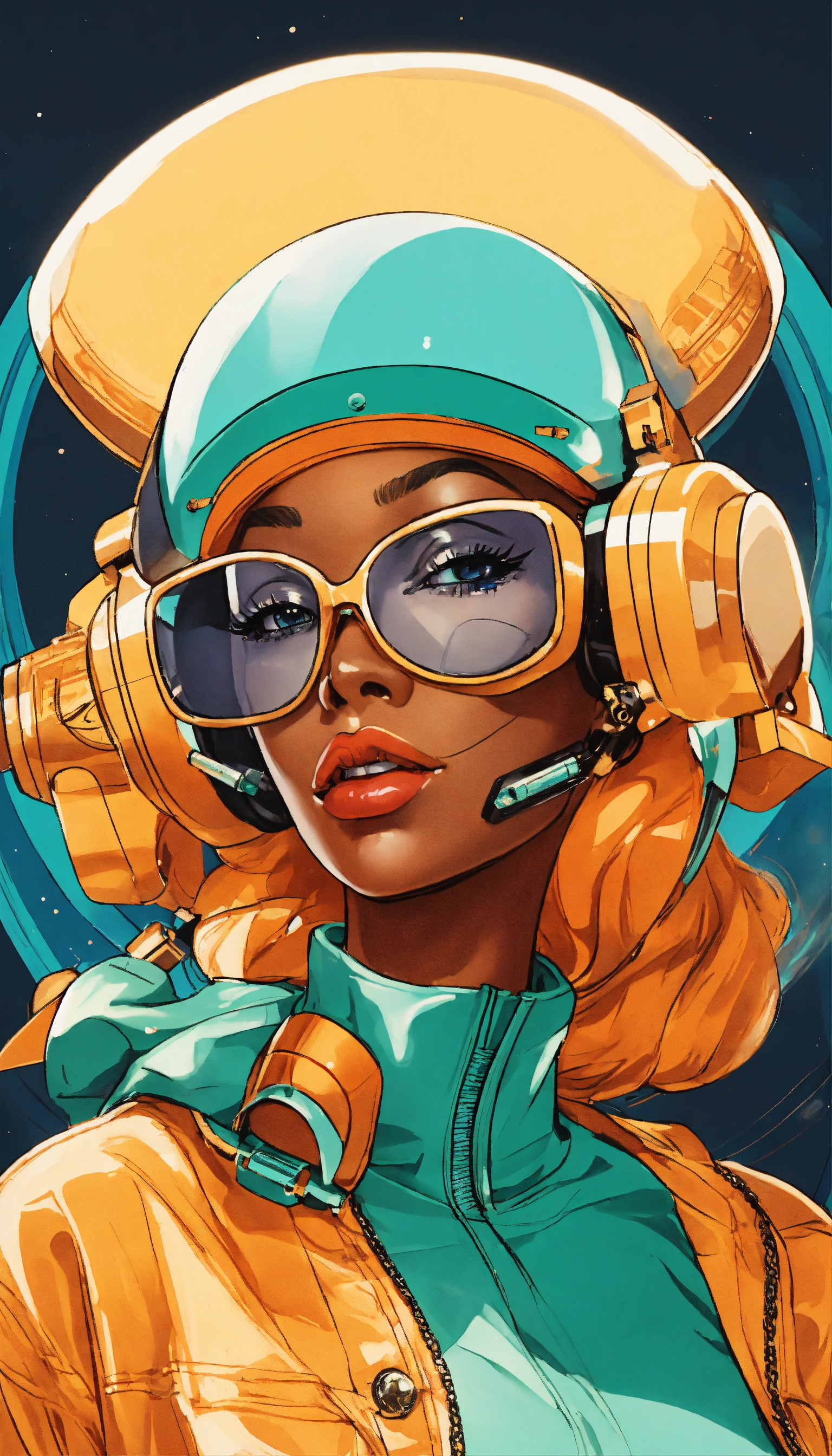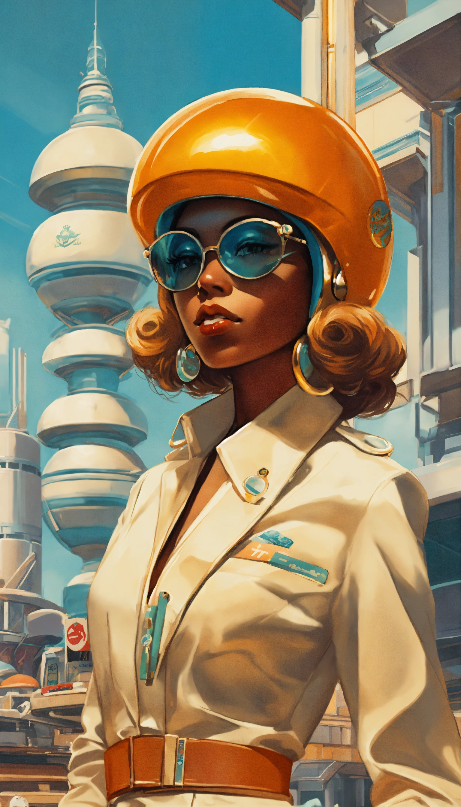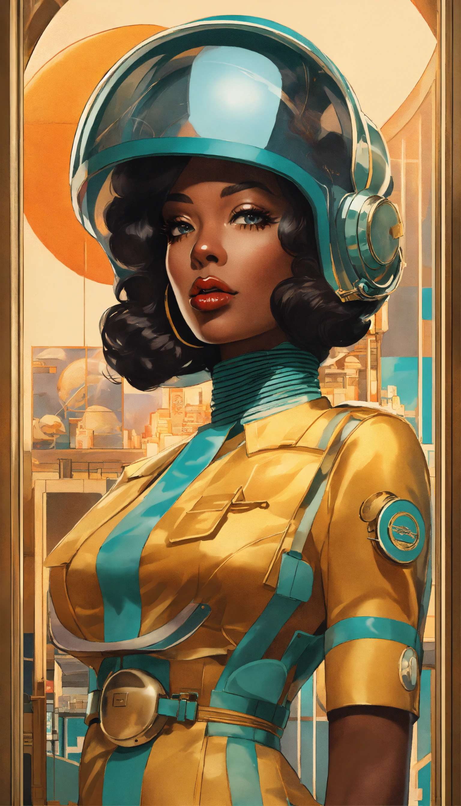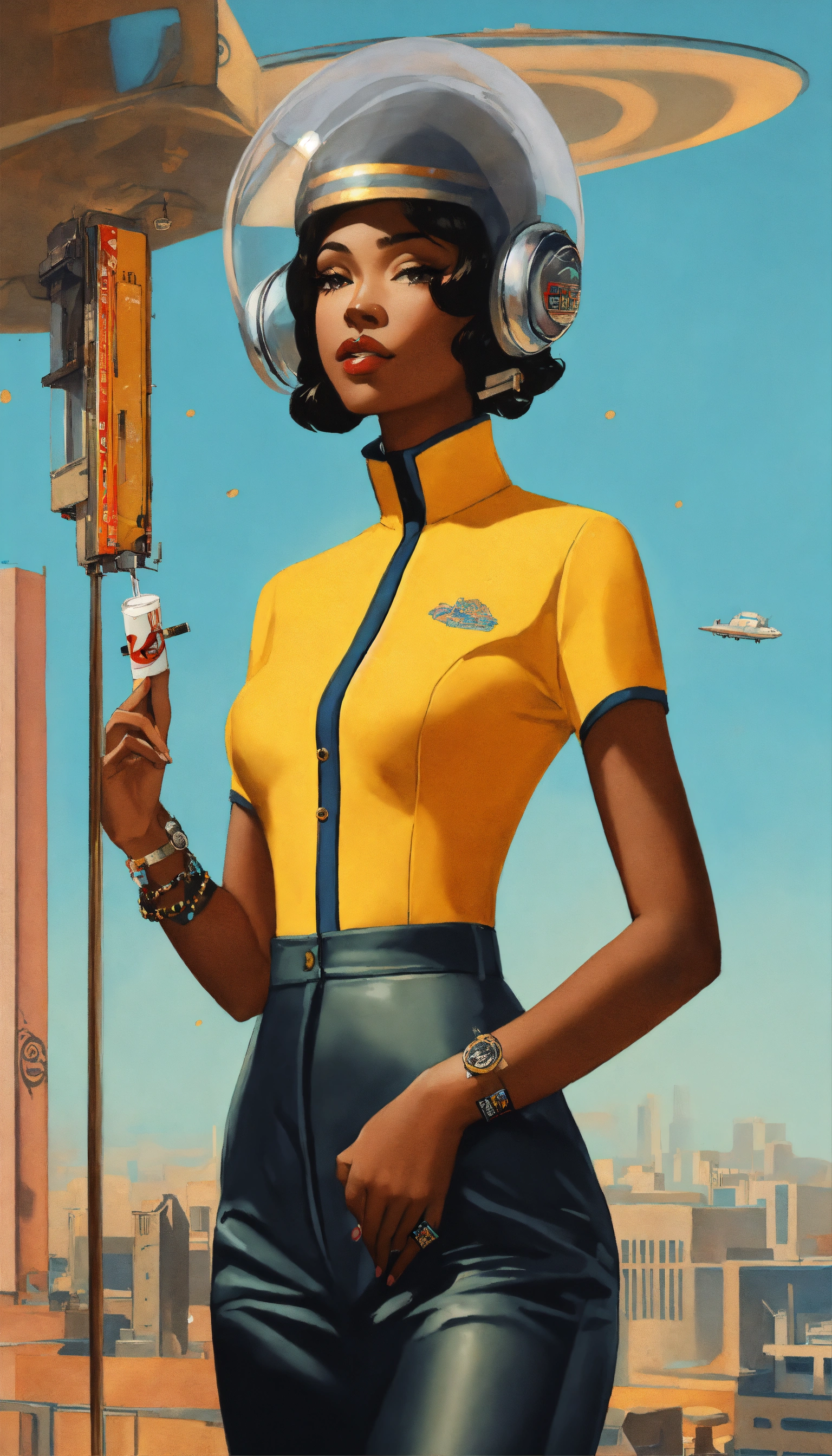 Multiple anime, black jetsons, cartoon smoke, joint company anthropomorphic female branding, "traybien", modern ethiopian 👩🏾25 years_old, vintage aesthetic, icons, business cards, pinup, bauhaus, kwakiutl, blue and mint, golden ratio, formfitting stewardess flightsuit, [futuristic transparent helmet], creative layflat, "traybien" hand lettering, cigarette packaging, art deco architekture|graffiti, perfect composition, face metallic-jewelry approaching perfection, balanced amalgamation, many retro vintage black and japanese stickers, by edward hopper and norman rockwell and zaha hadid, playboy cover, long flowing modern hair